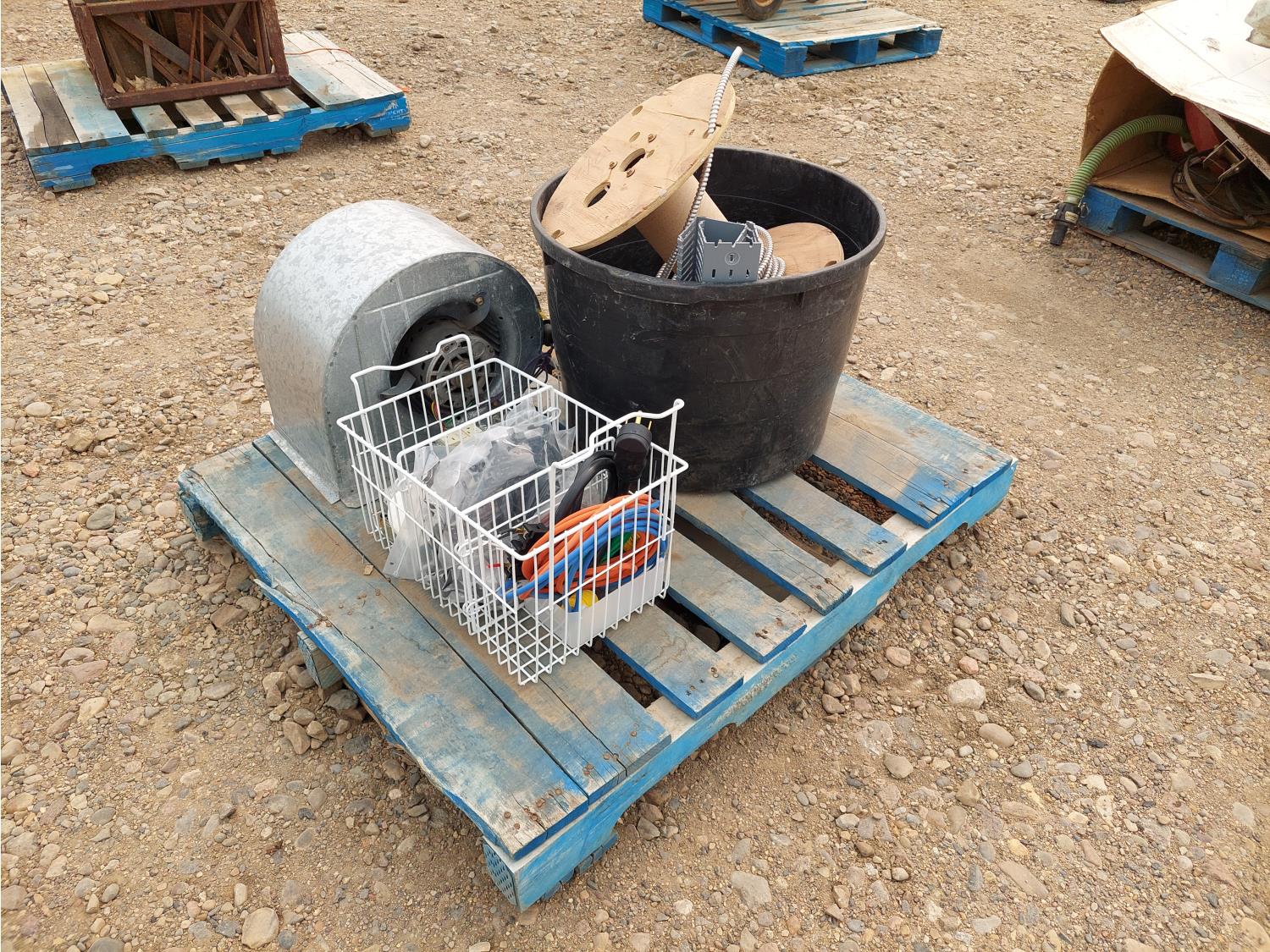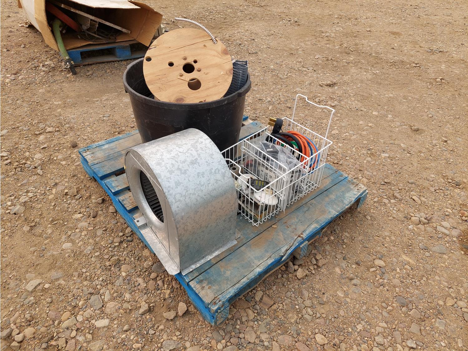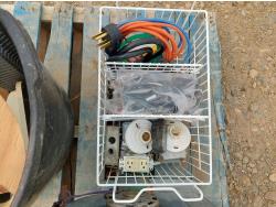 includes 115V, 1/3HP, single phase furnace blower fan, Motomaster Eliminator 600W digital power inverter, V Power car stereo amplifier, and miscellaneous electrical parts