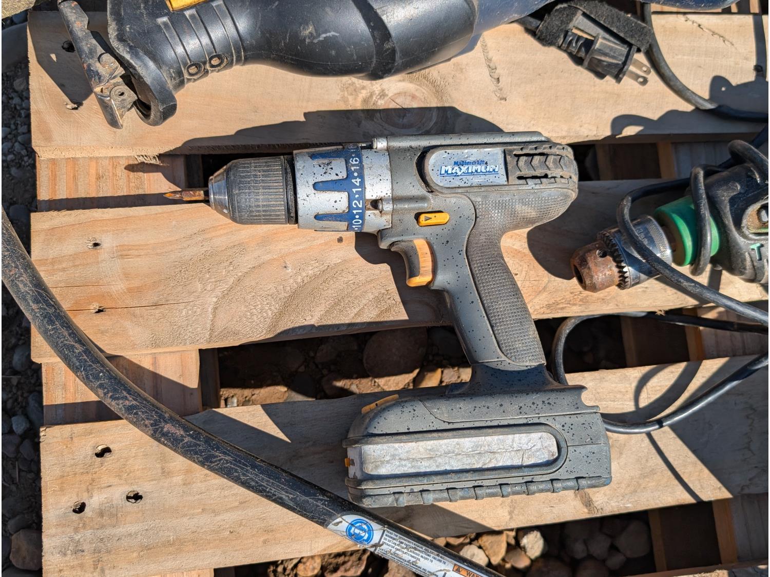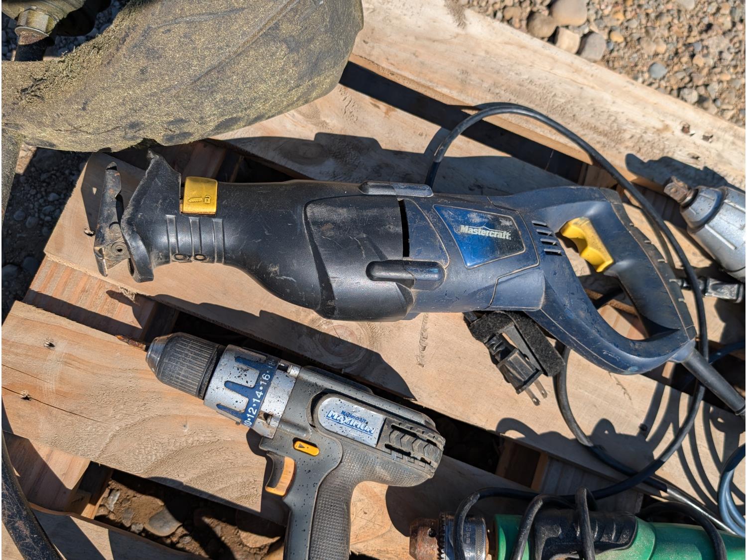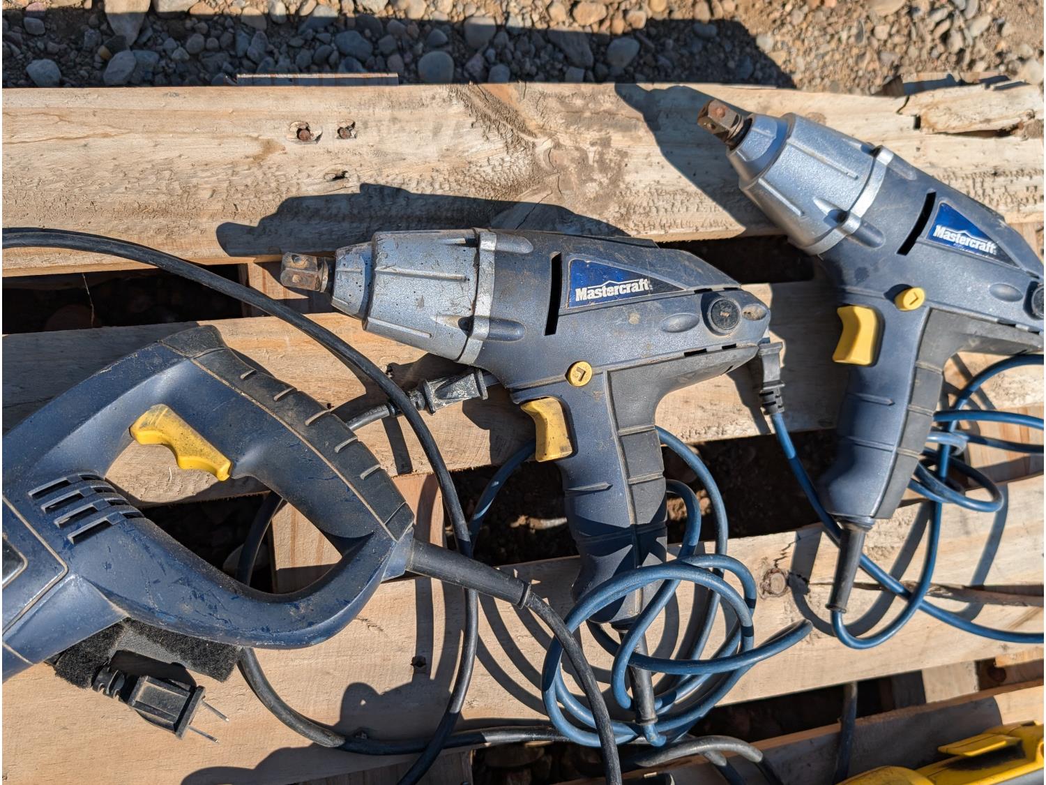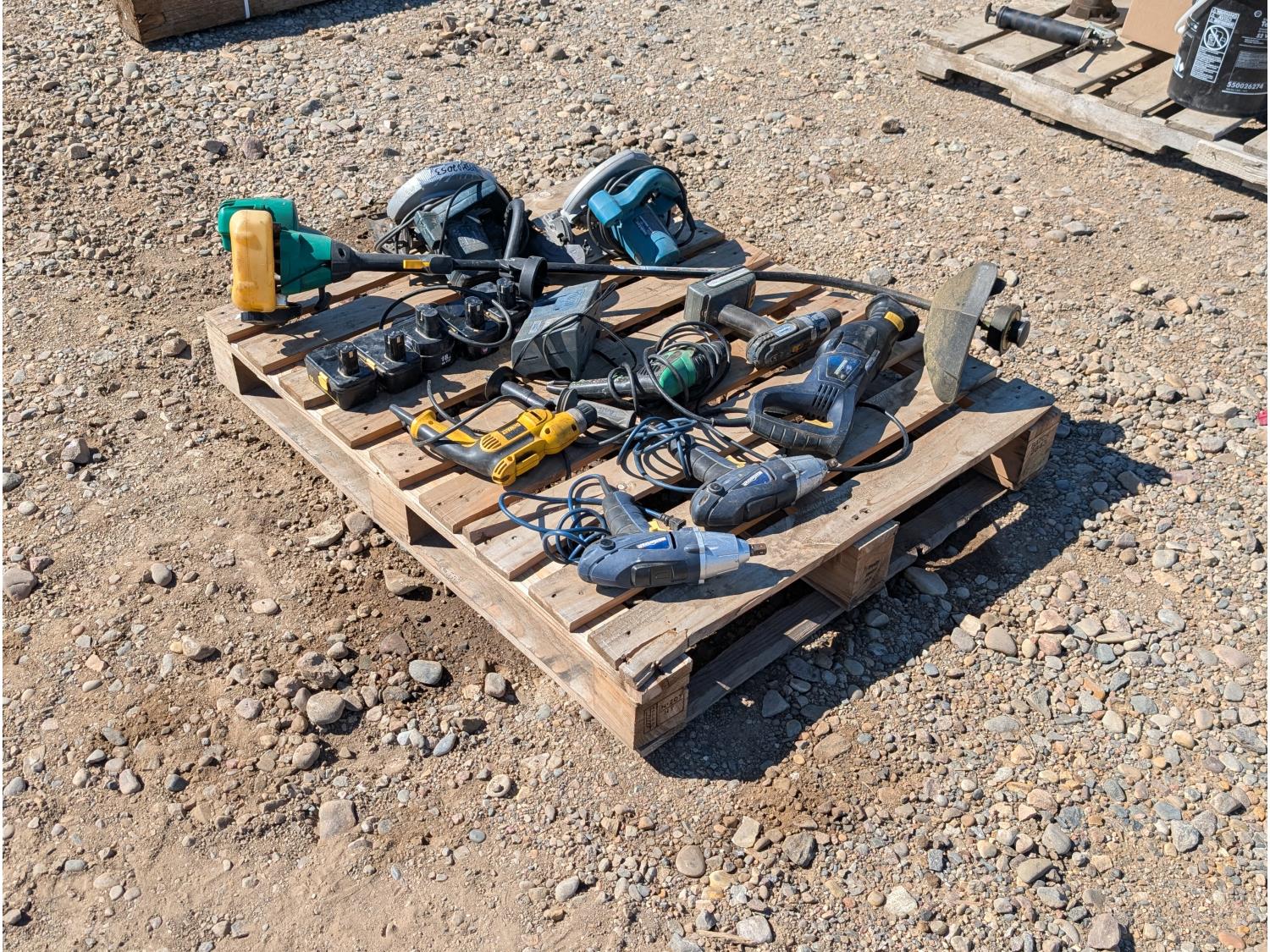 includes: (2) circular saws, (2) impact guns, (2) corded drills, (1) Cordless drill, (1) reciprocating saw, (1) gas string trimmer, (5) Craftsman 18v batteries w/ charger