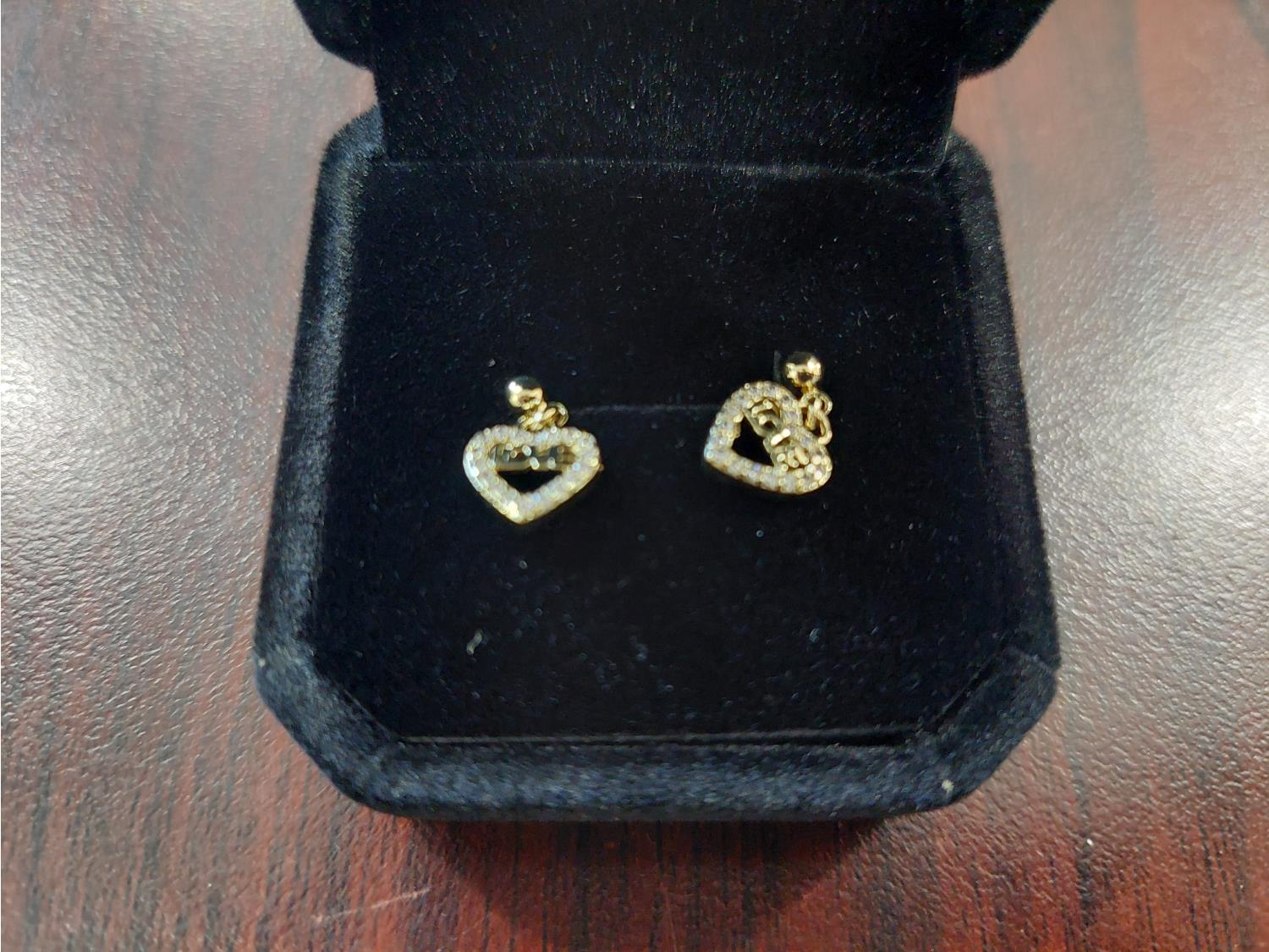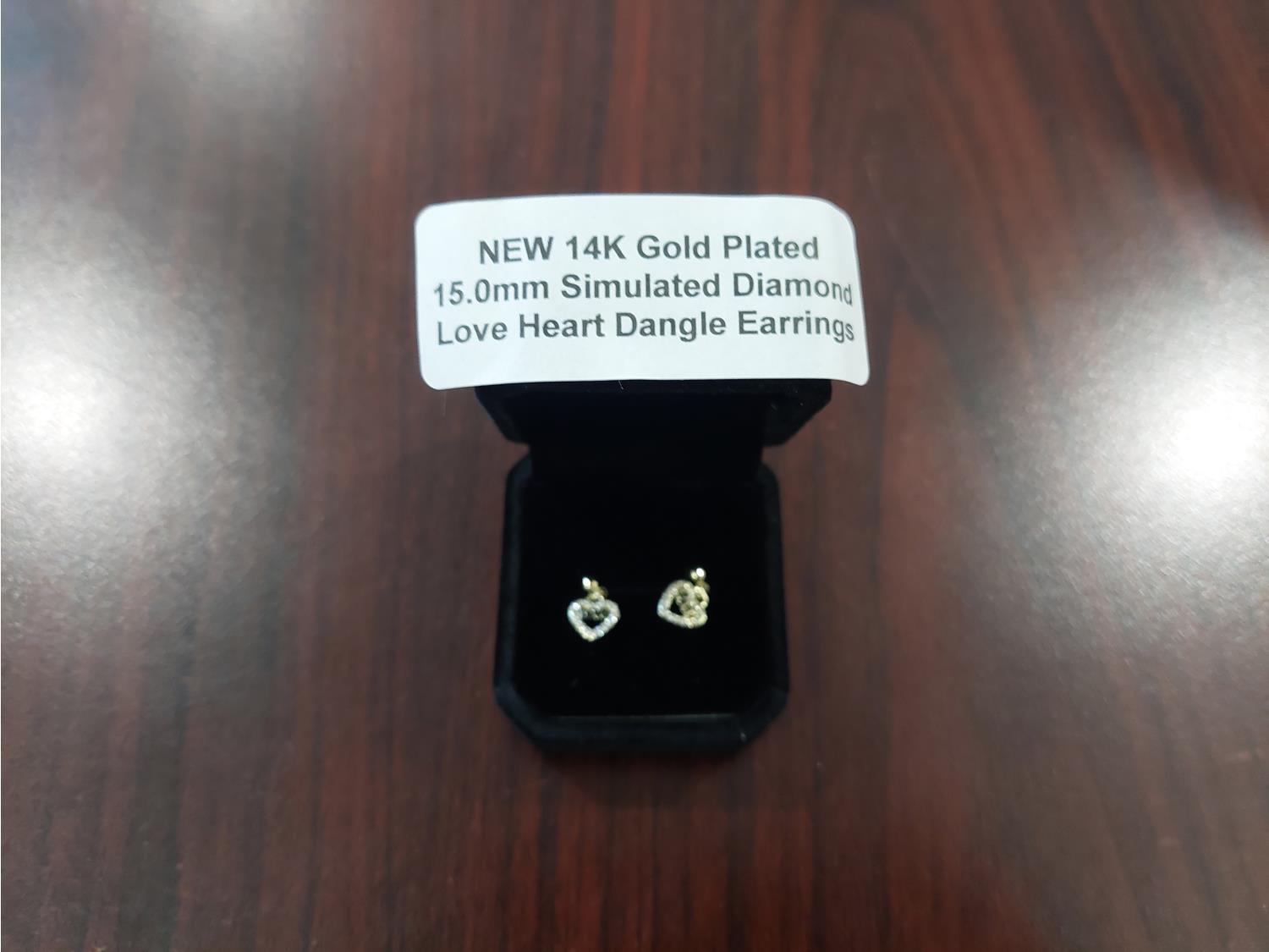1032 Smartlife 14K Gold Plated 15.0mm Simulated Diamond Love Heart Dangle Earrings (Unused)