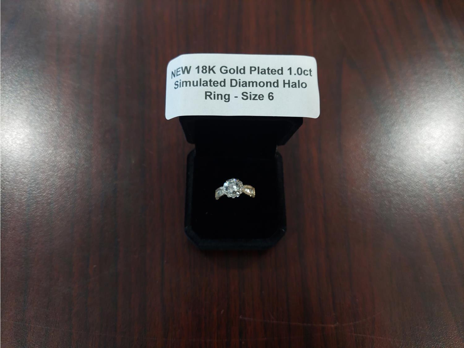 1029 Smartlife 18K Gold Plated 1.0ct Simulated Diamond Halo Ring (Unused)