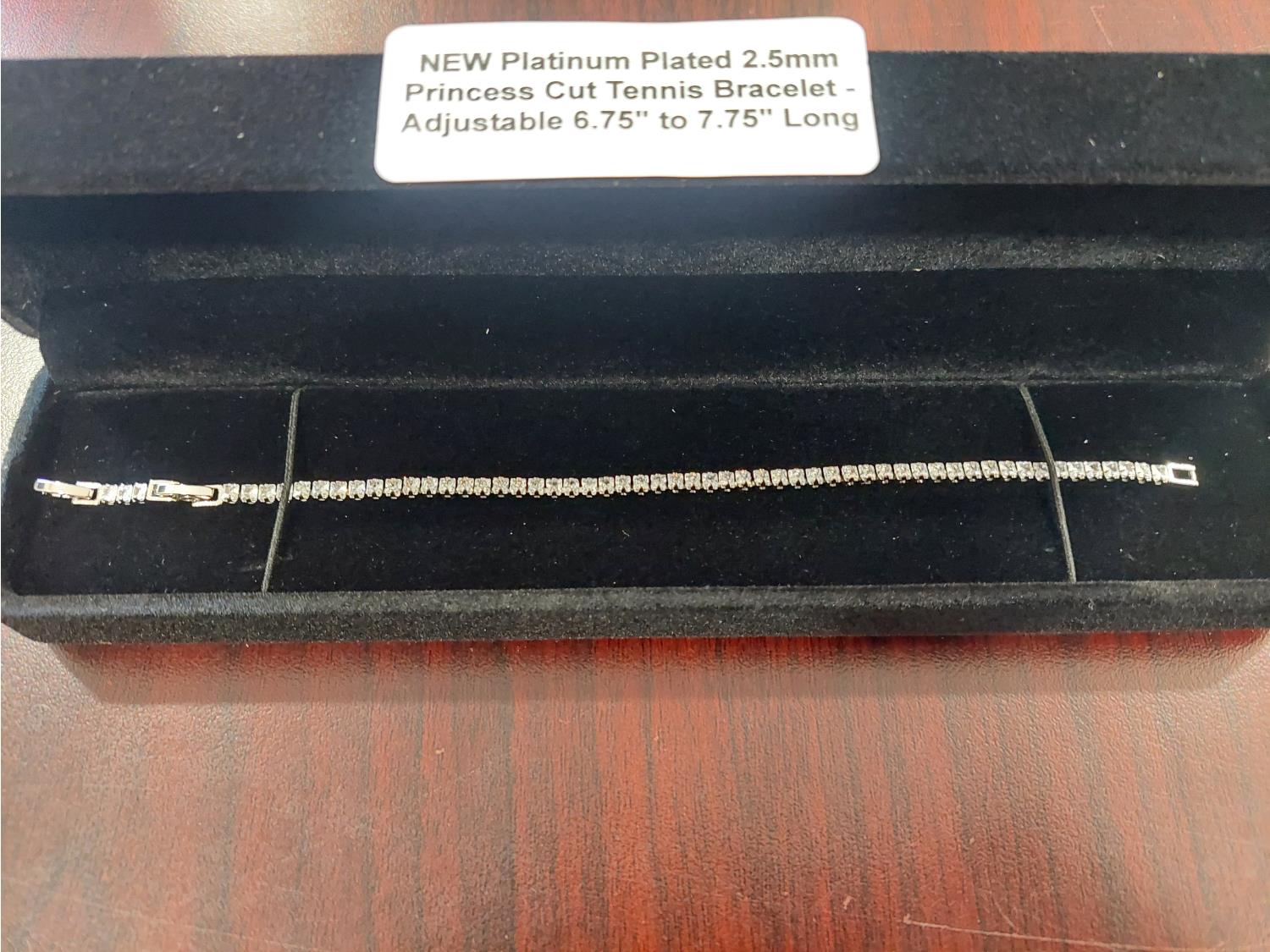 1041 Smartlife Platinum Plated 2.5mm Princess Cut Tennis Bracelet (Unused)