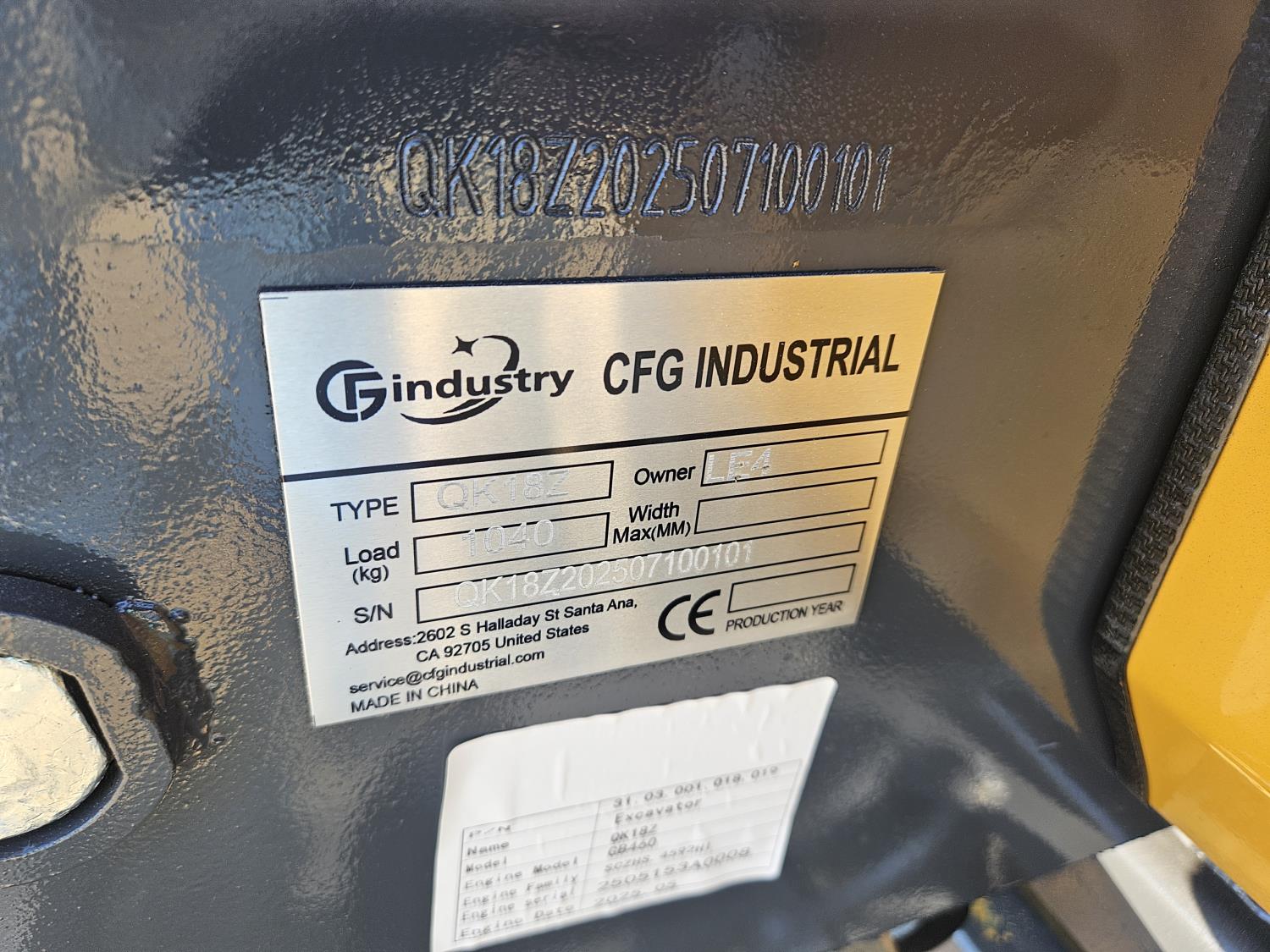 pilot controls, Zonsen 17 Hp gas engine, 16 inch dig bucket, hydraulic thumb, 1 auxiliary hydraulics, 2 Ft 8 inch stick, backfill blade, rubber tracks