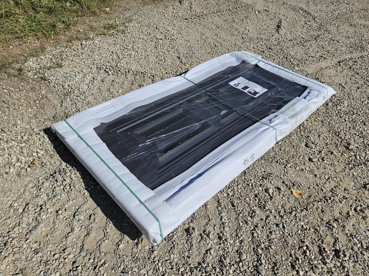 3081 Grey Steel Security Door with Frame and Hardware (Unused)
