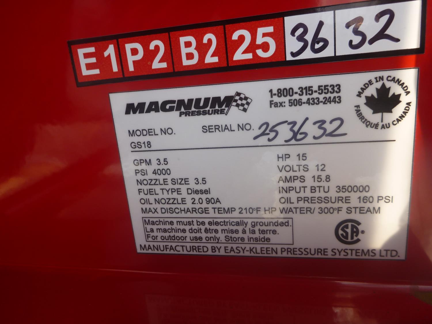 3.5 GPM at 4000 PSI, 15 HP, gasoline engine, electric start, 12 volt burner, oil/diesel fired burned/thermostat, schedule 80 coil with stainless steel housing, fully welded, powder coated frame, 10 gallon poly fuel tank, 30 ft hose and wand