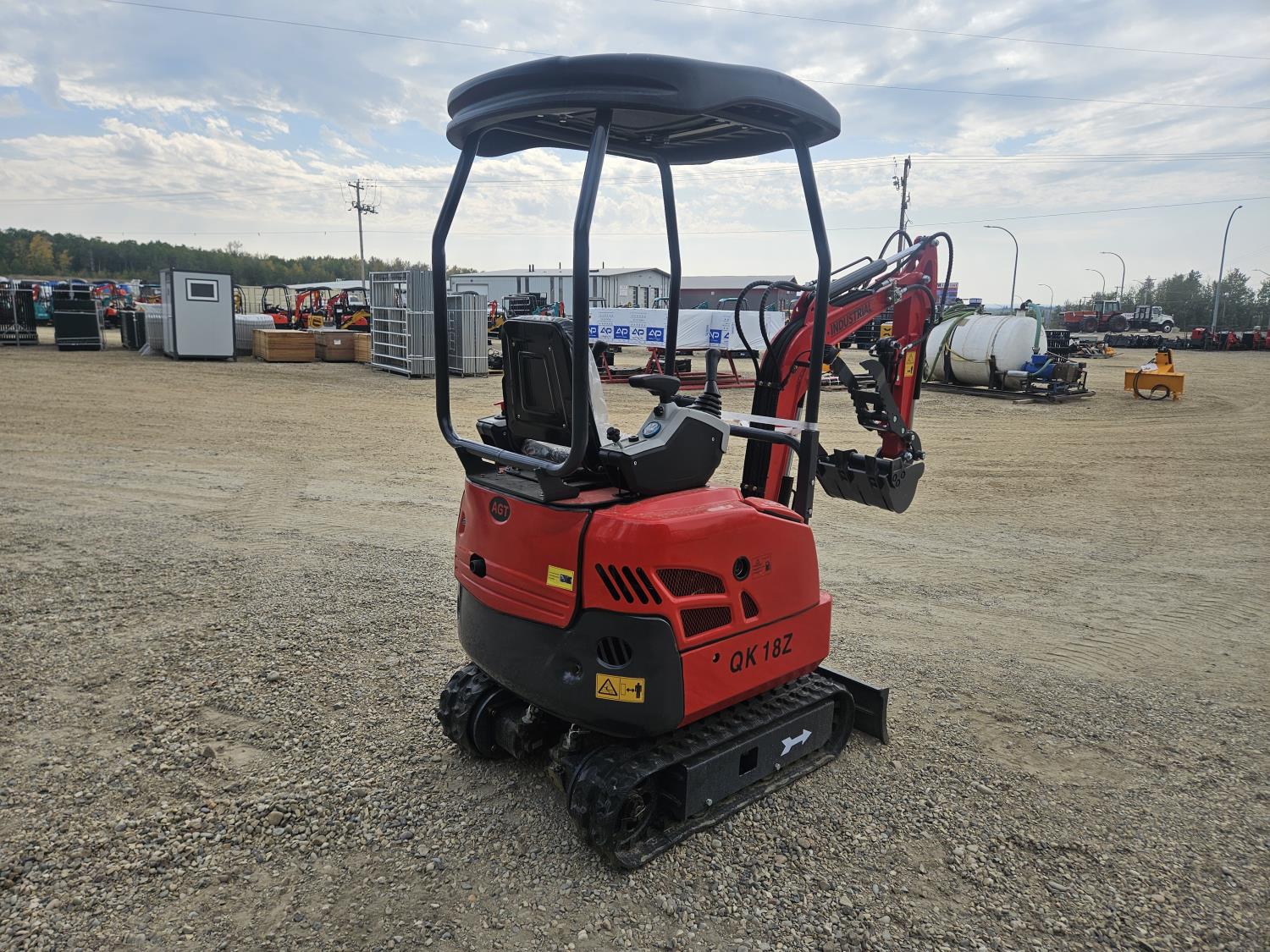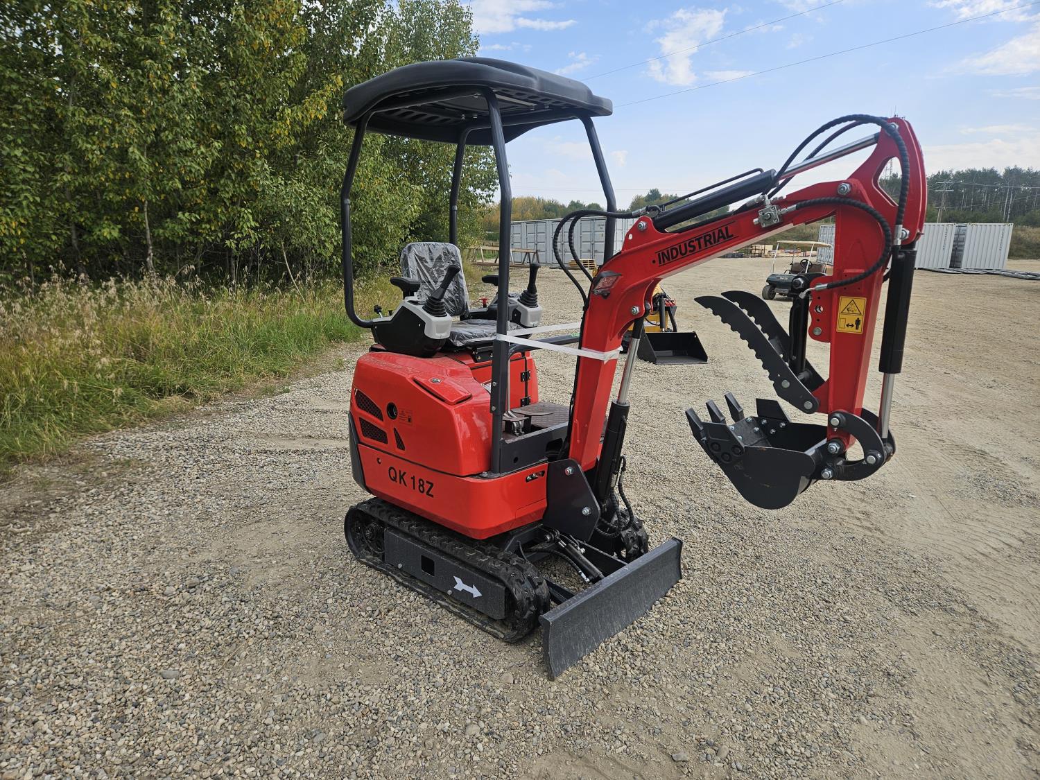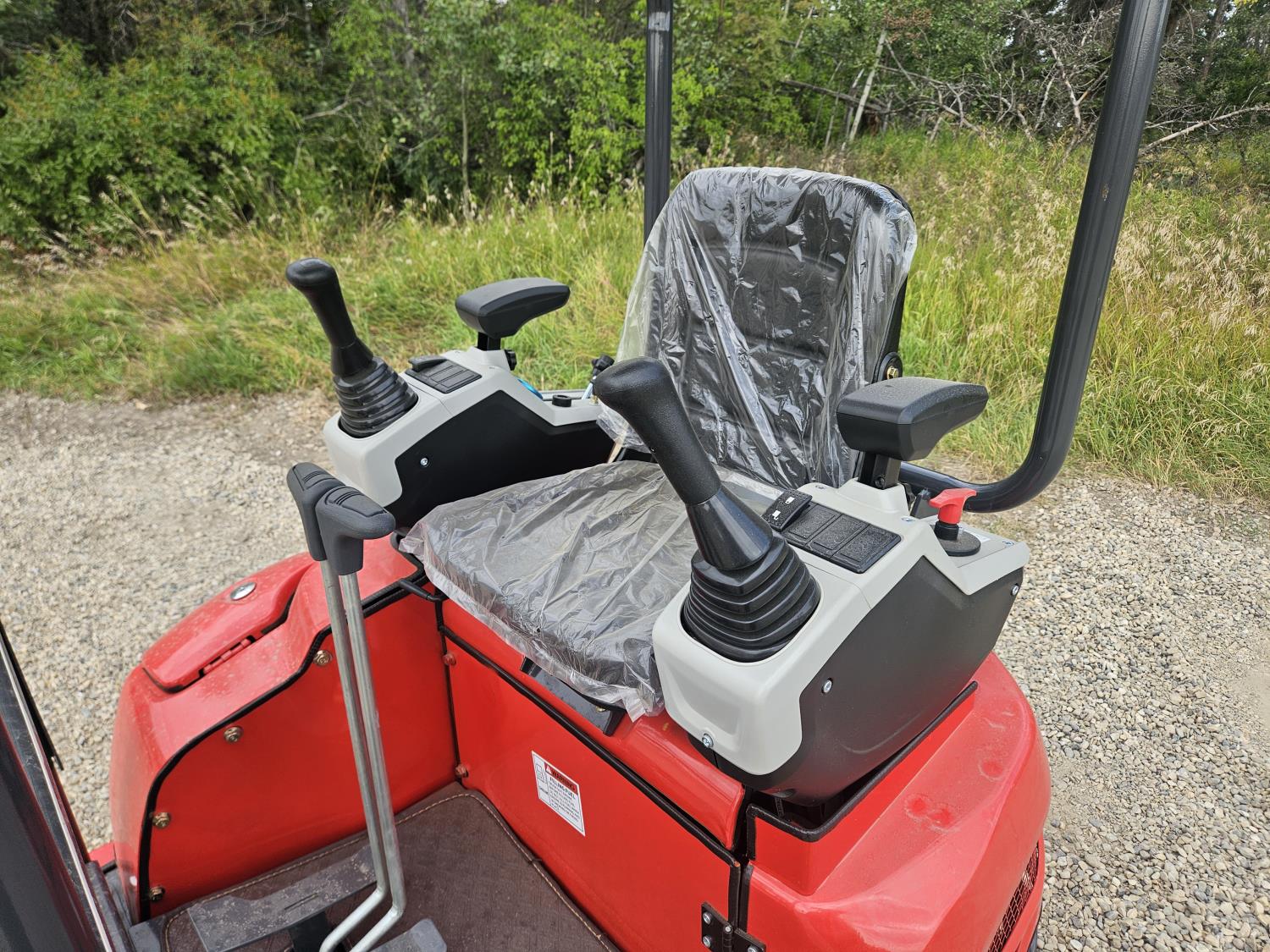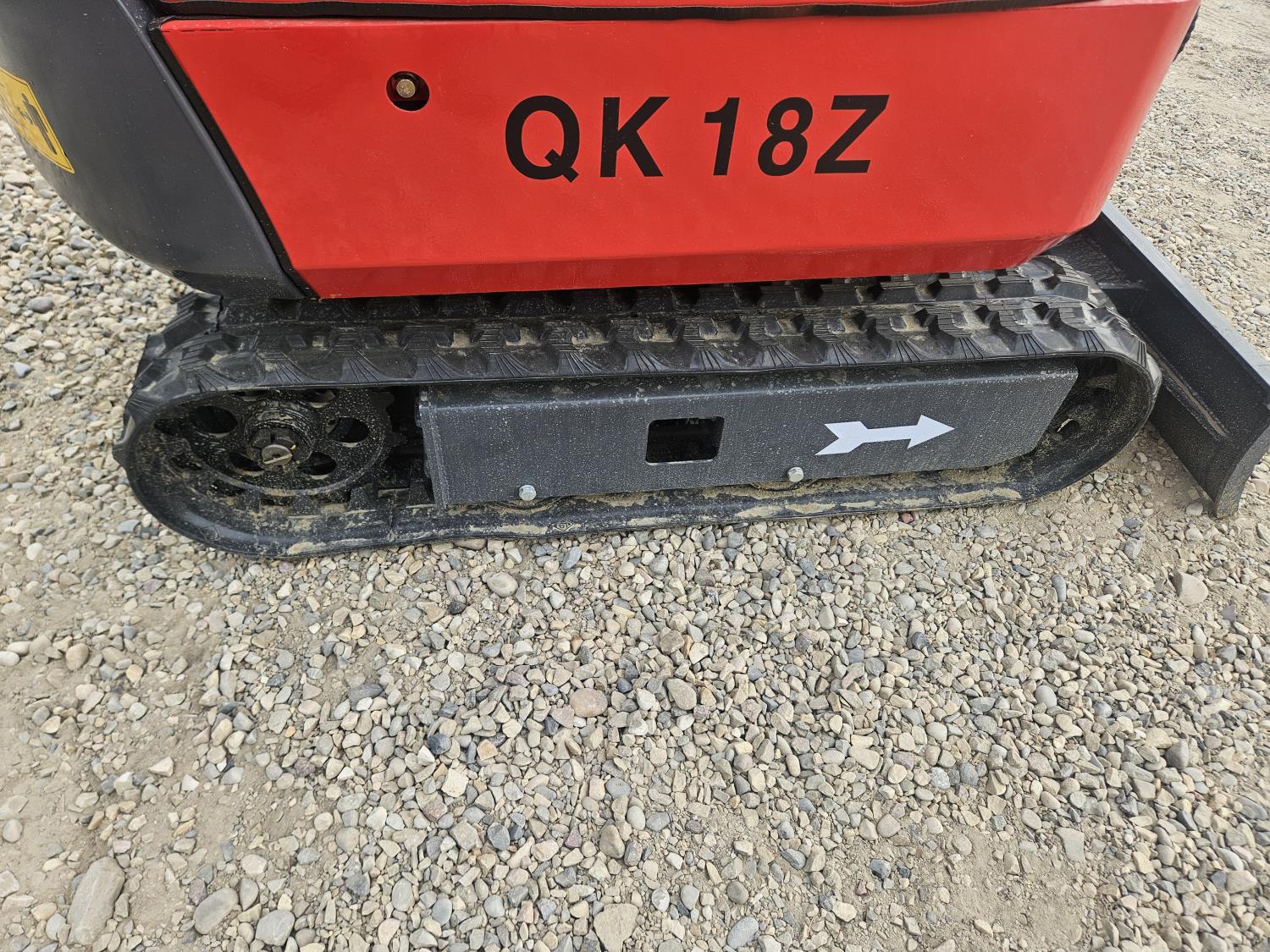 pilot controls, Zonsen 17 Hp gas engine, 16 inch dig bucket, hydraulic thumb, 1 auxiliary hydraulics, 2 Ft 8 inch stick, backfill blade, rubber tracks