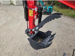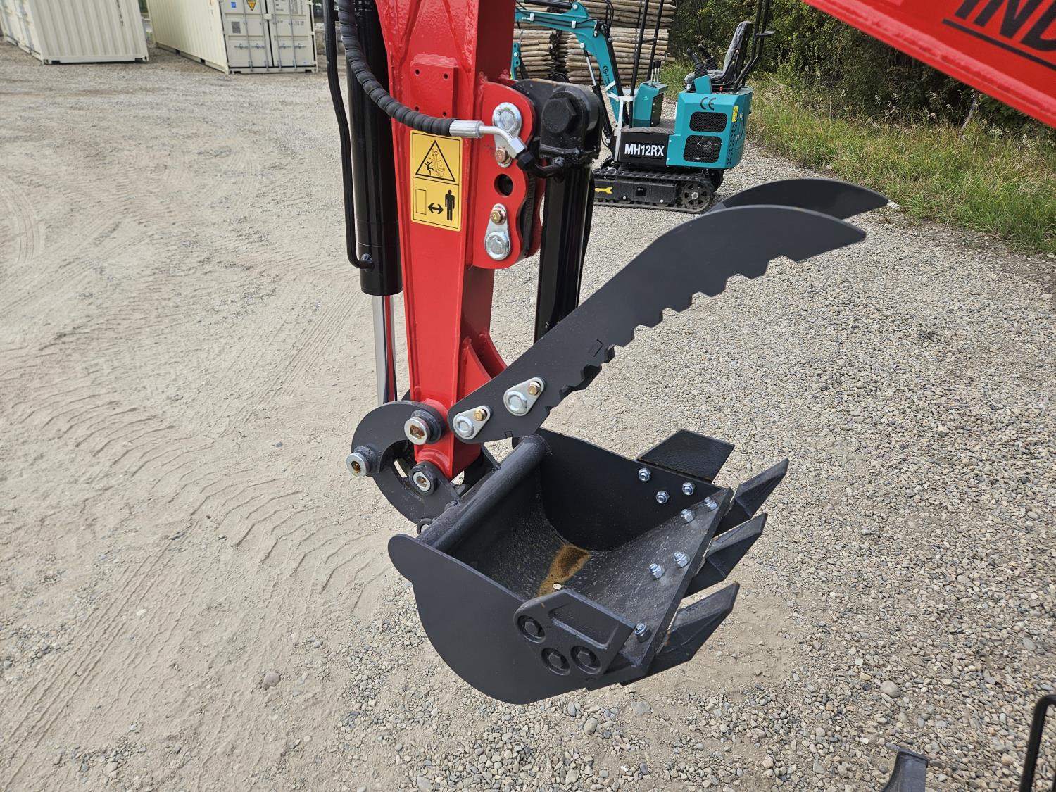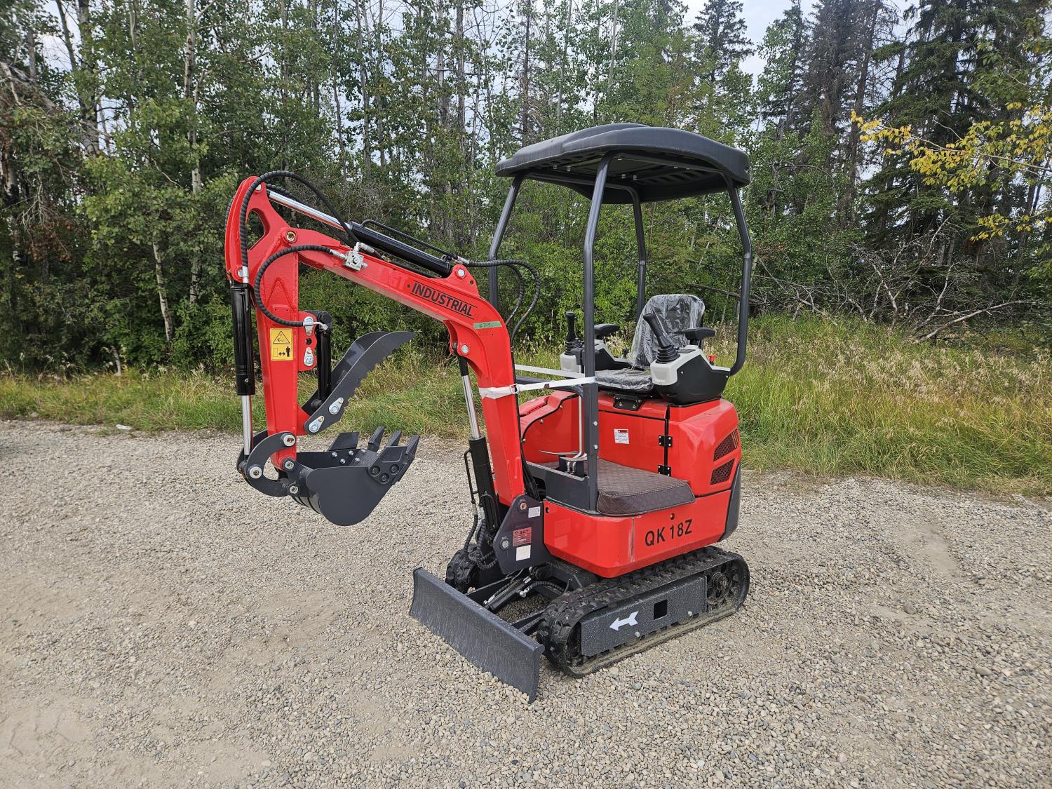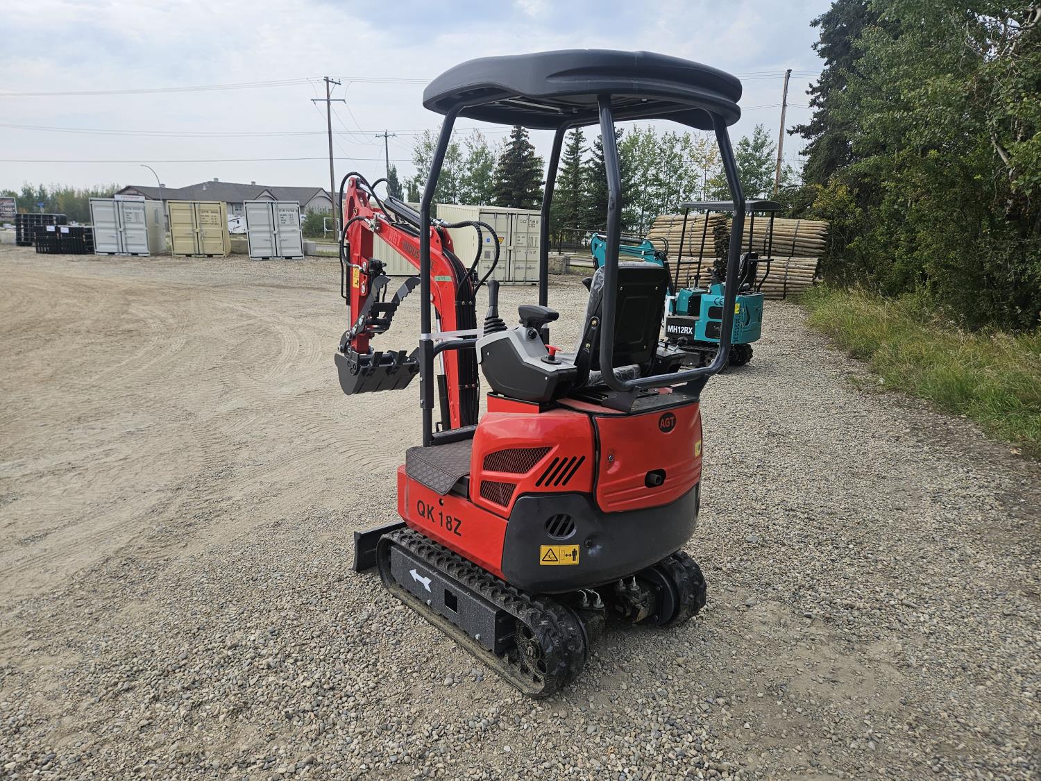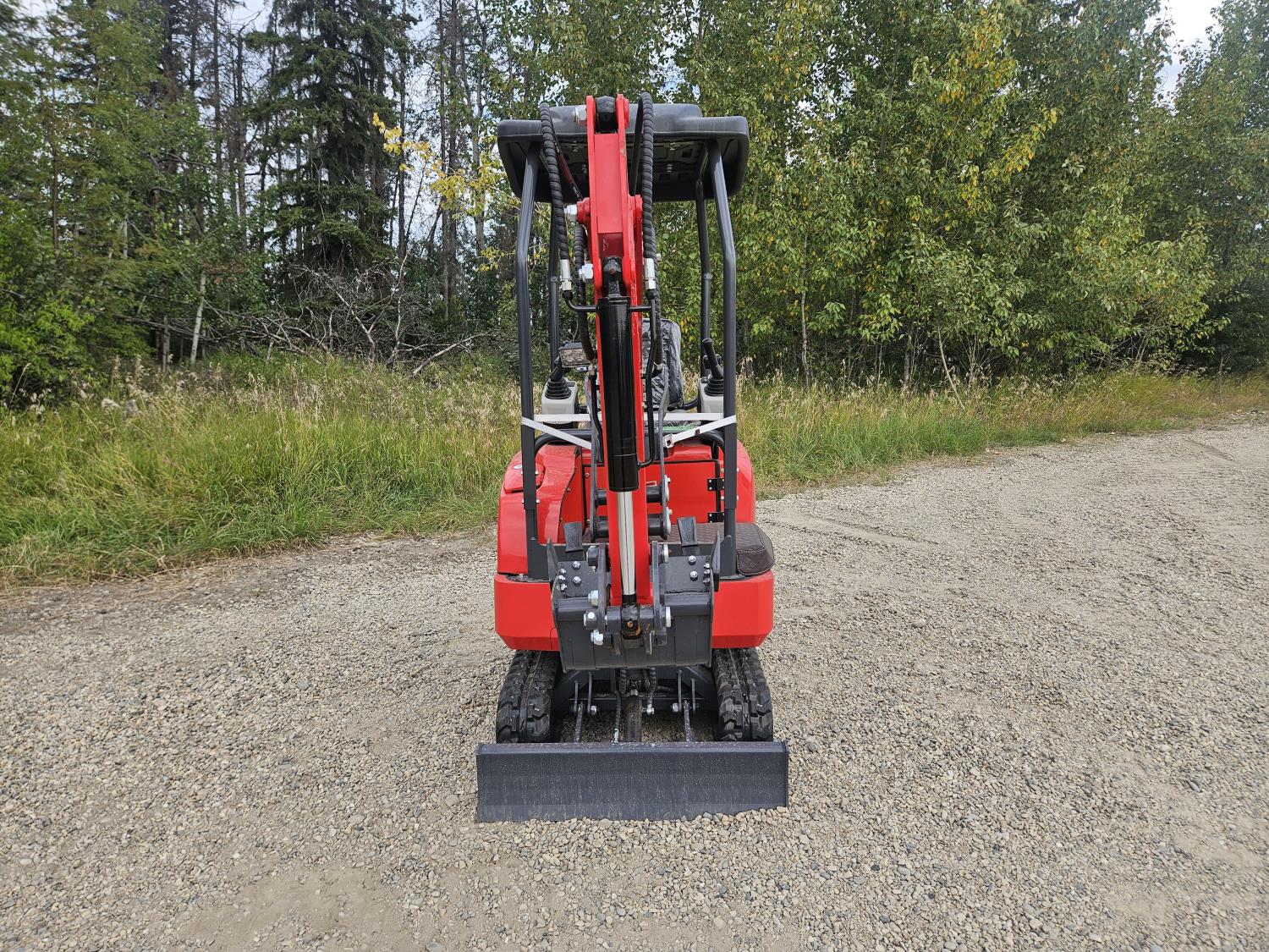 pilot controls, Zonsen 17 Hp gas engine, 16 inch dig bucket, hydraulic thumb, 1 auxiliary hydraulics, 2 Ft 8 inch stick, backfill blade, rubber tracks
