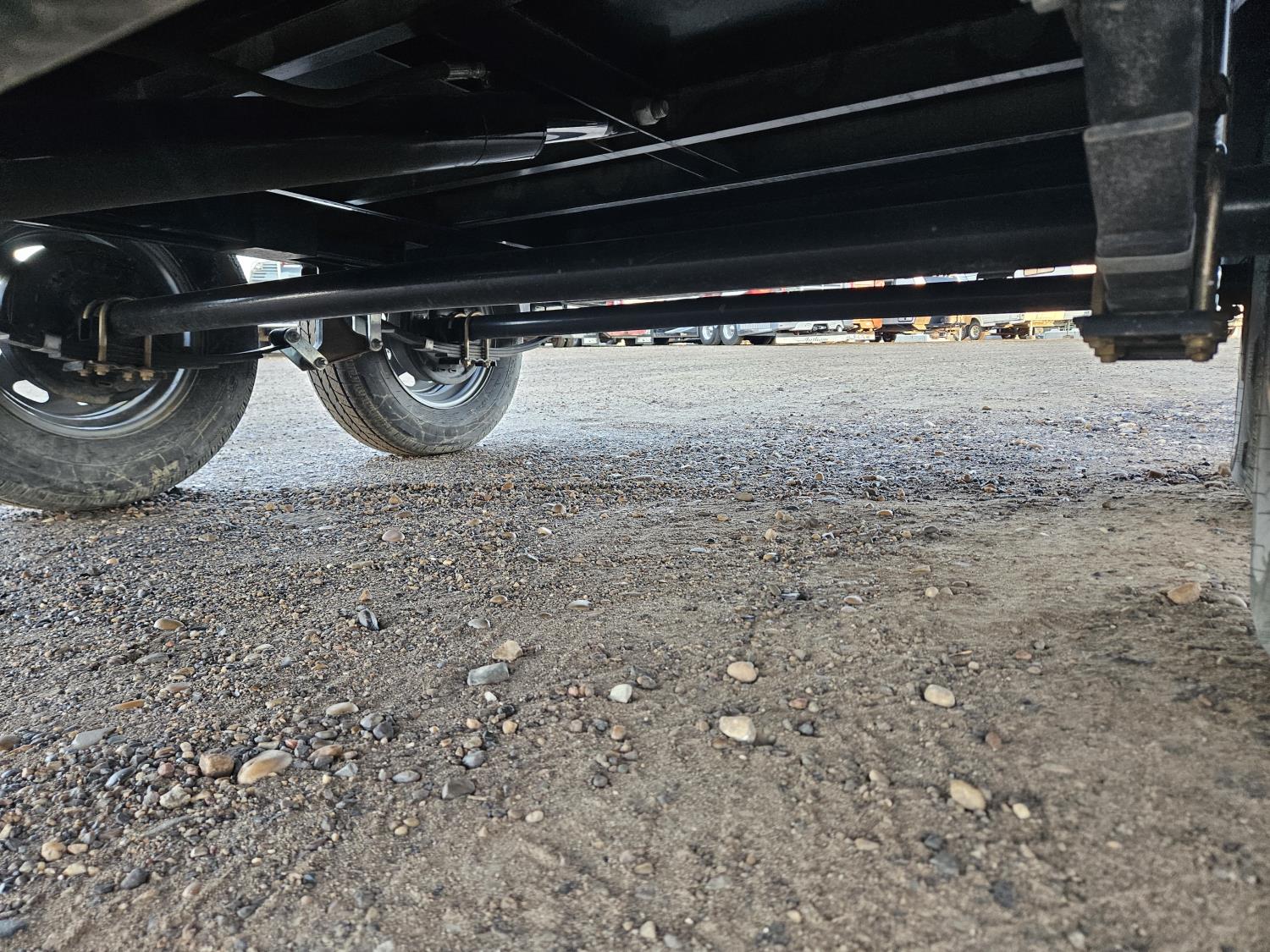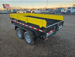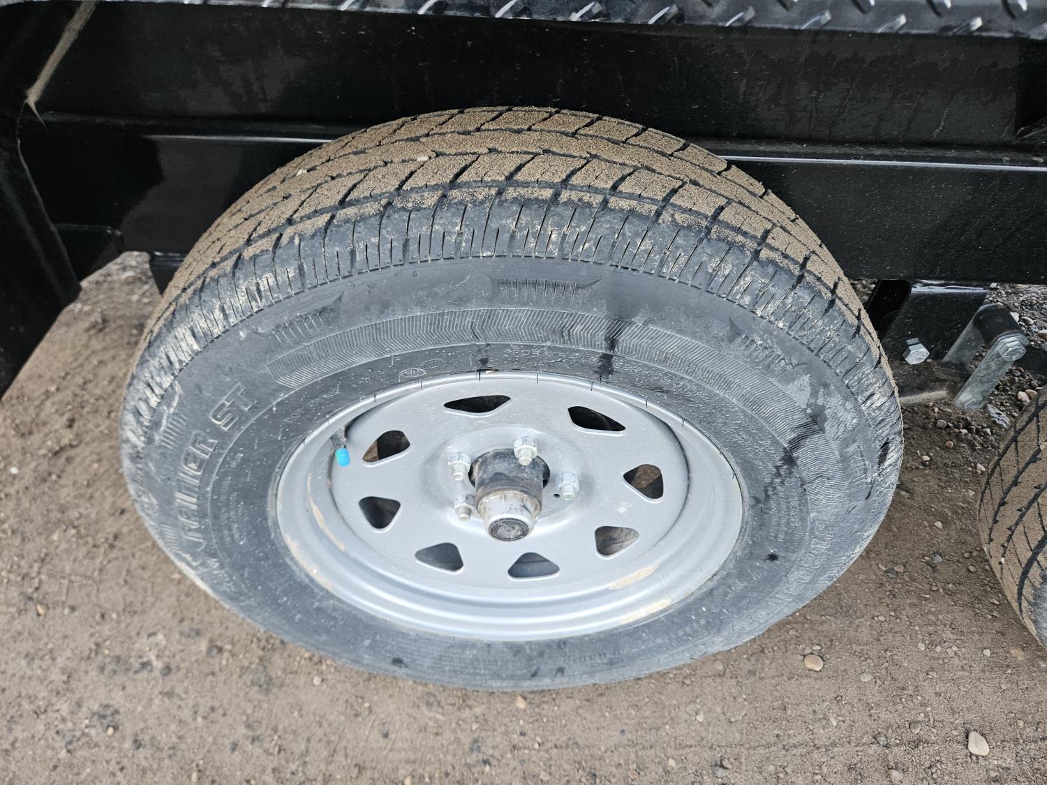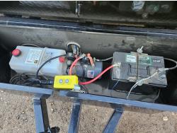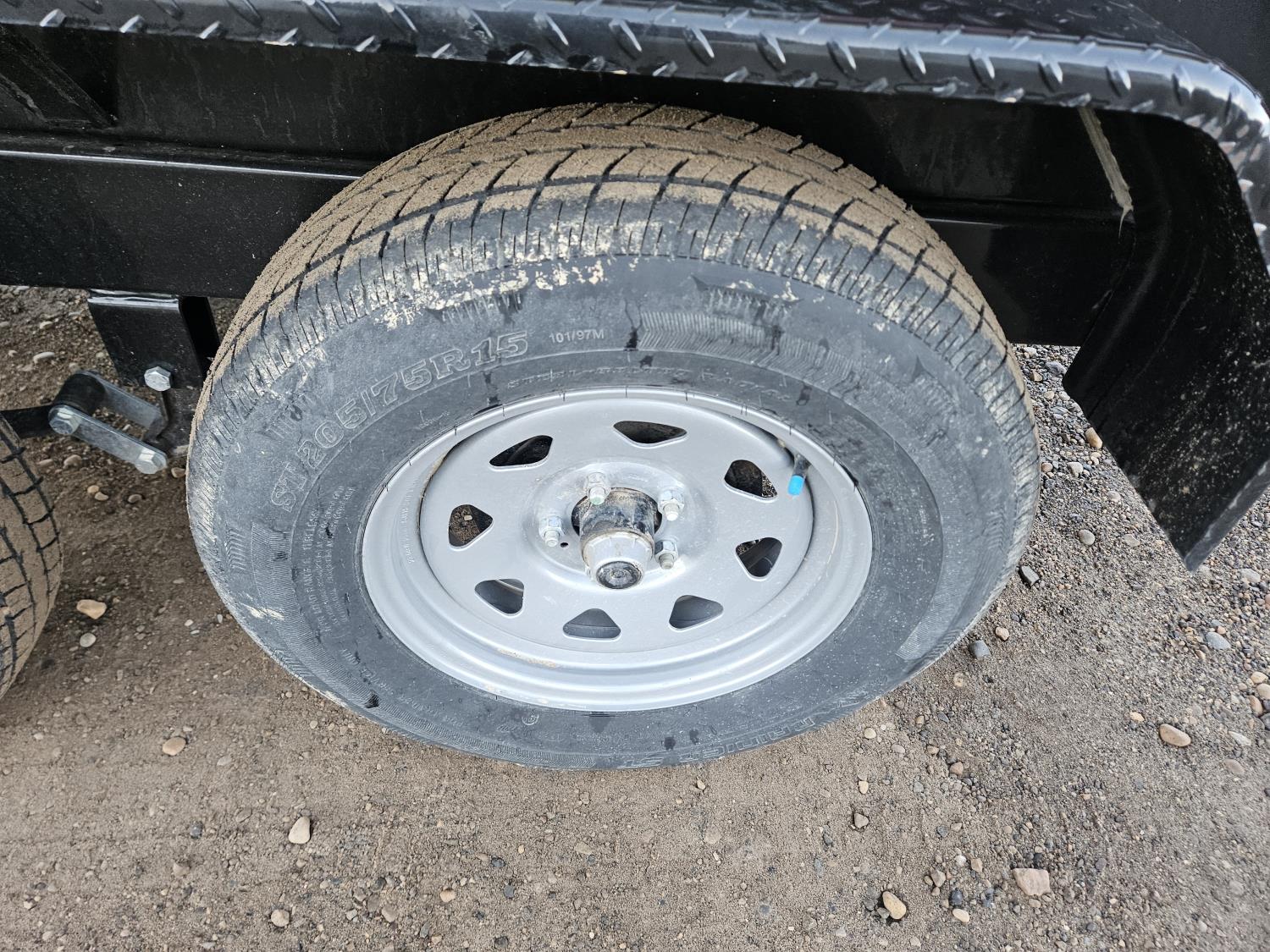 Ball hitch, 62 inch box width, 26 inch side wall height, roll tarp, corded lift remote, electric brakes, spring suspension, 3,500 lb axles, tie down d rings, 205/75R15 tires