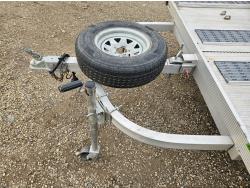 12 ft tilt deck, aluminum deck, slide in ramps, torsion suspension, ball hitch, deck extends from 87"-101", 3000 lb axles, 205/75R14 tires