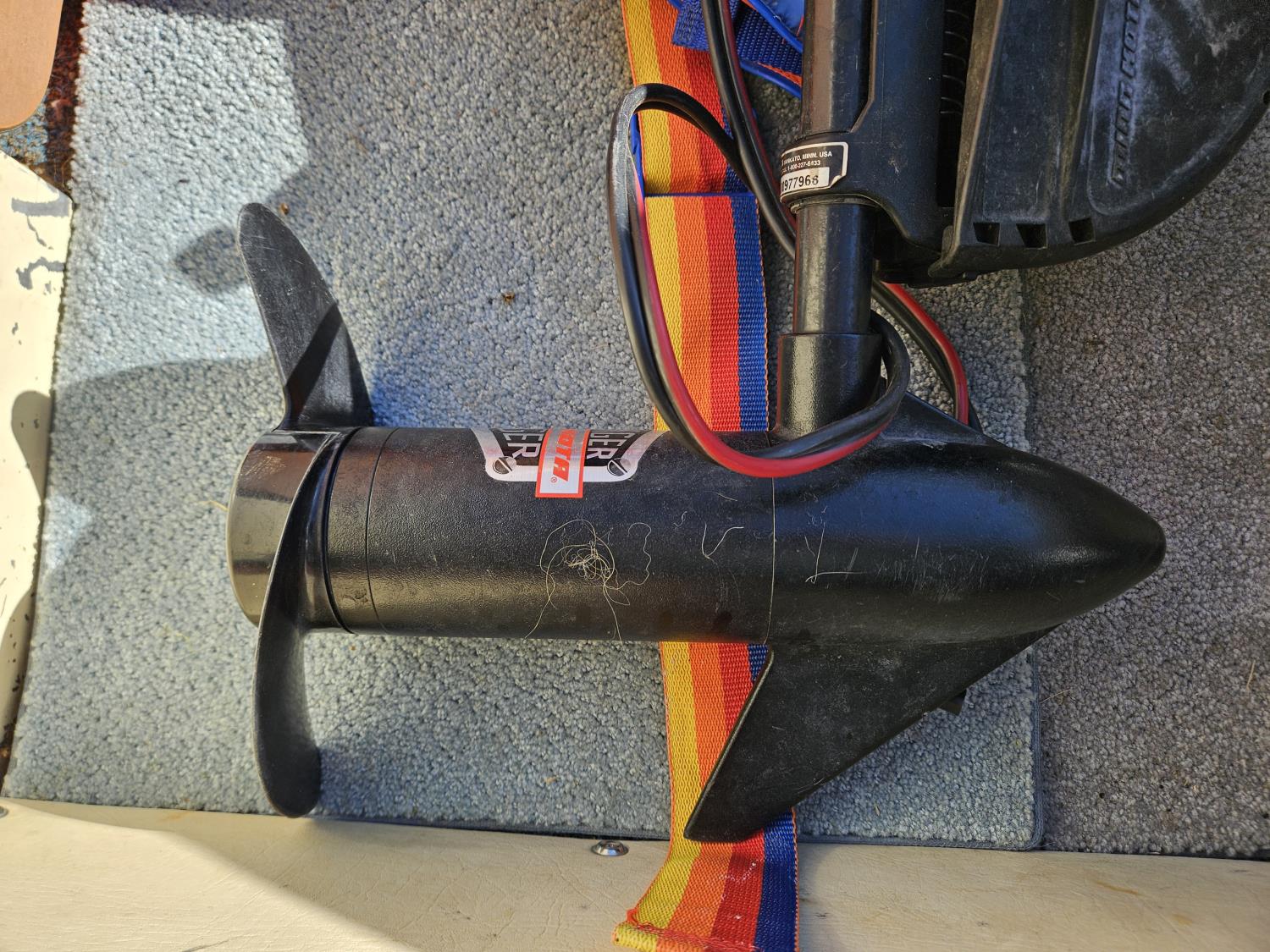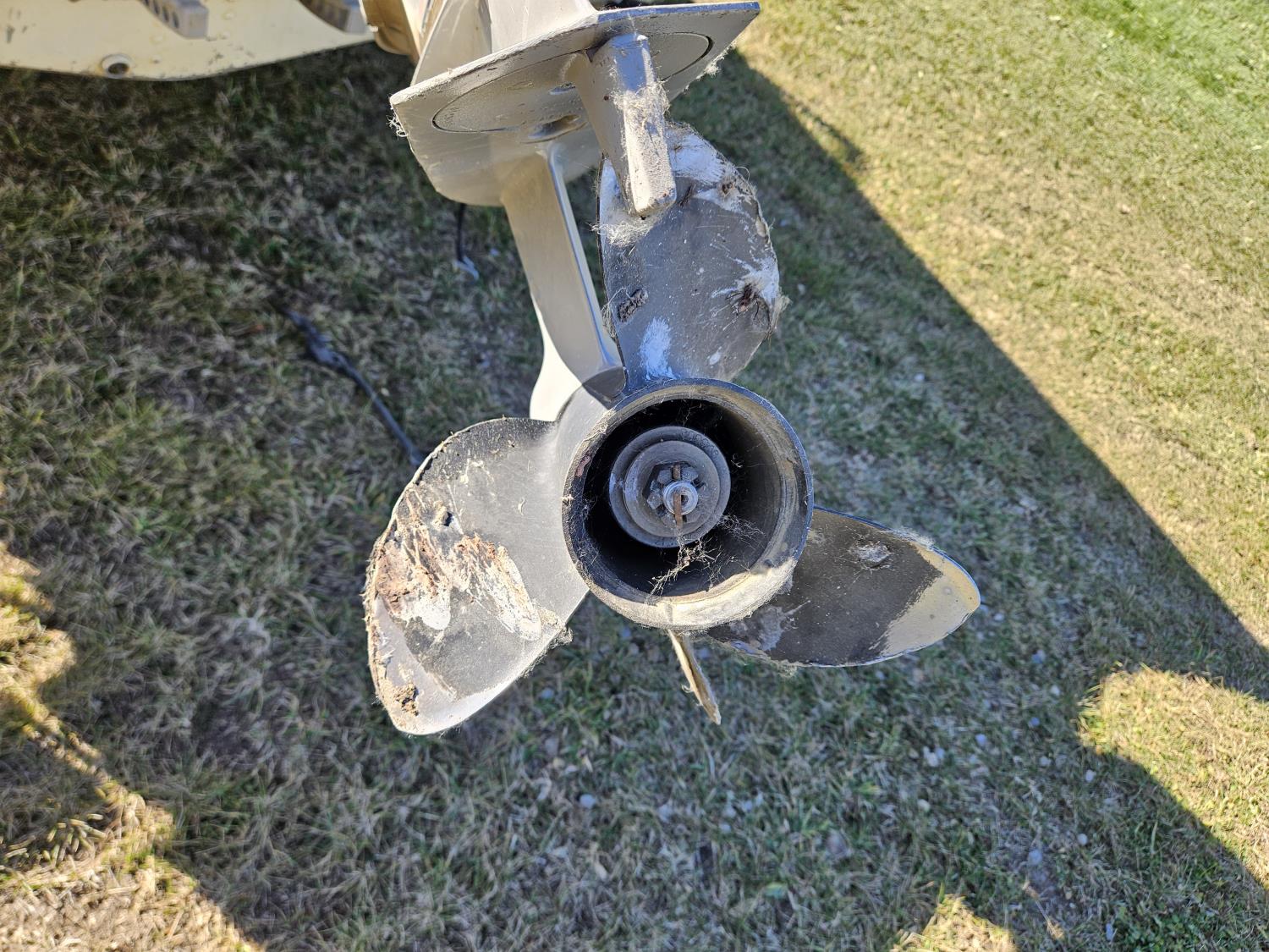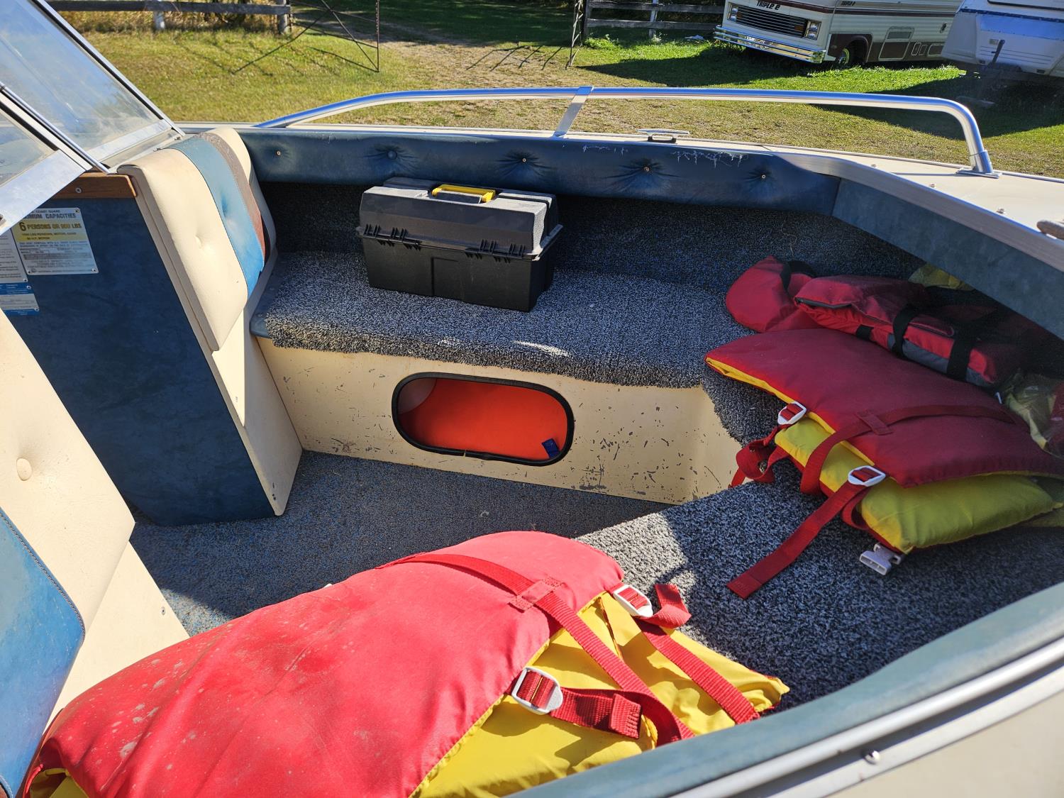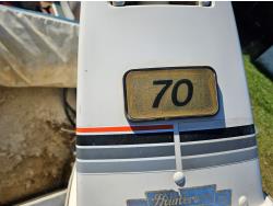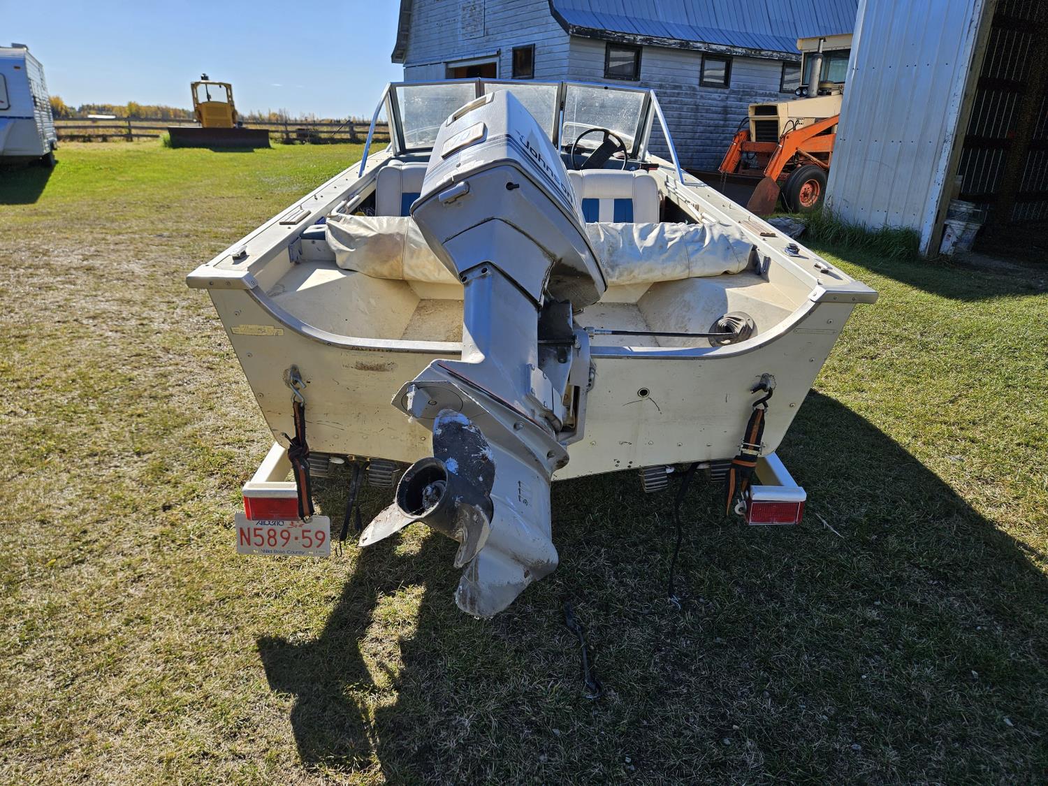 Johnson 70 HP outboard motor, seats 6, life jackets, 2 steel fuel tanks, Minn Kota trolling motor, cover, 1996 ShoreLand'r S/A trailer, 175/80R13 tires, stored indoors, ran when parked