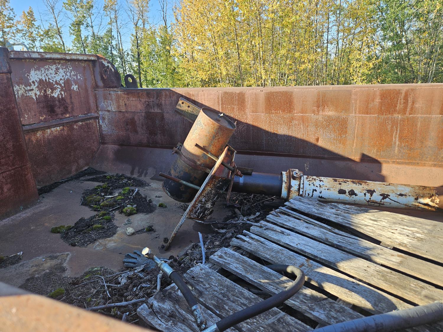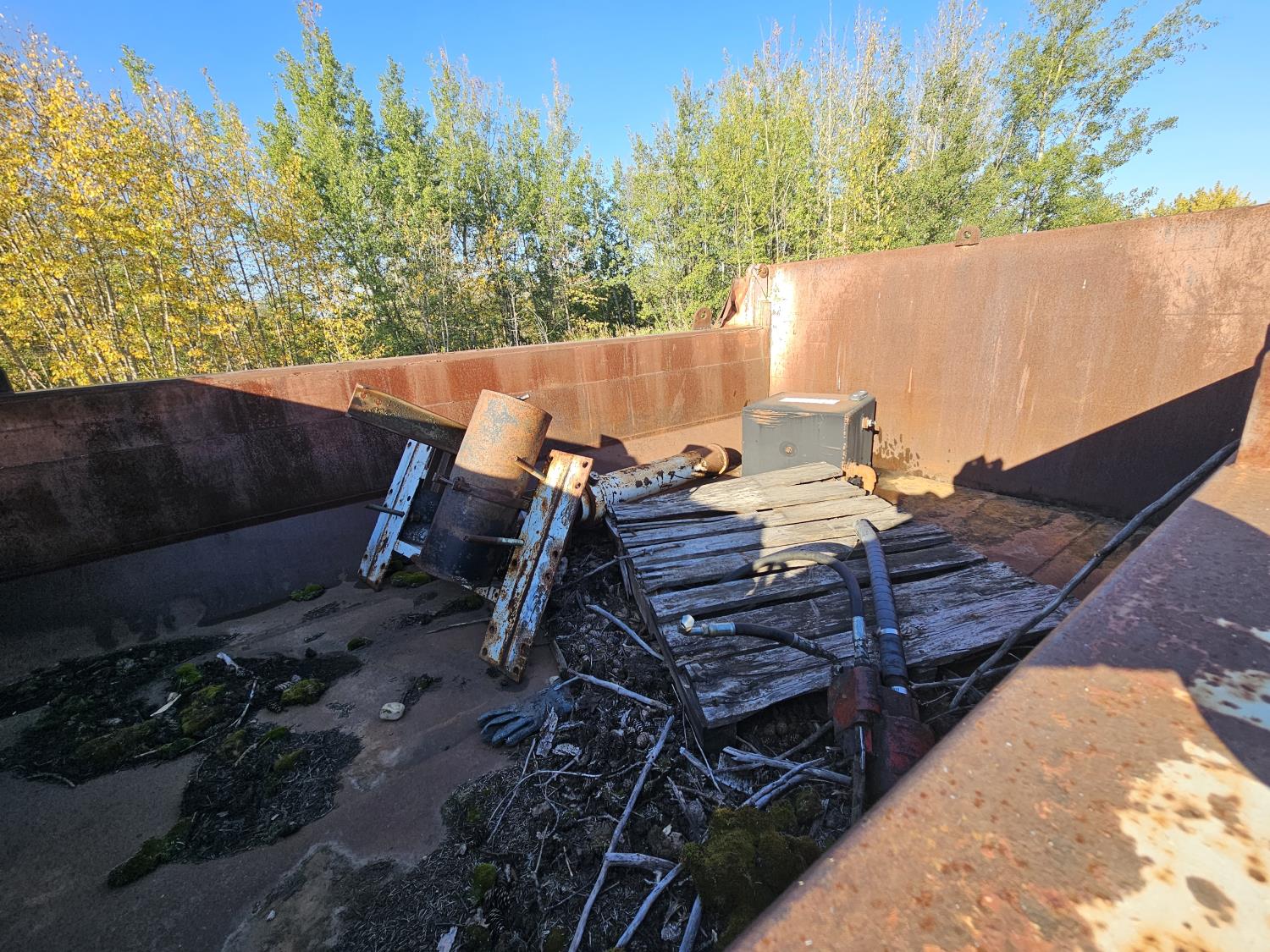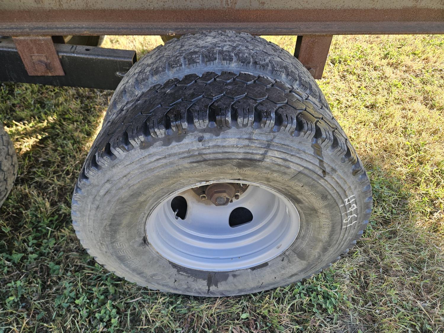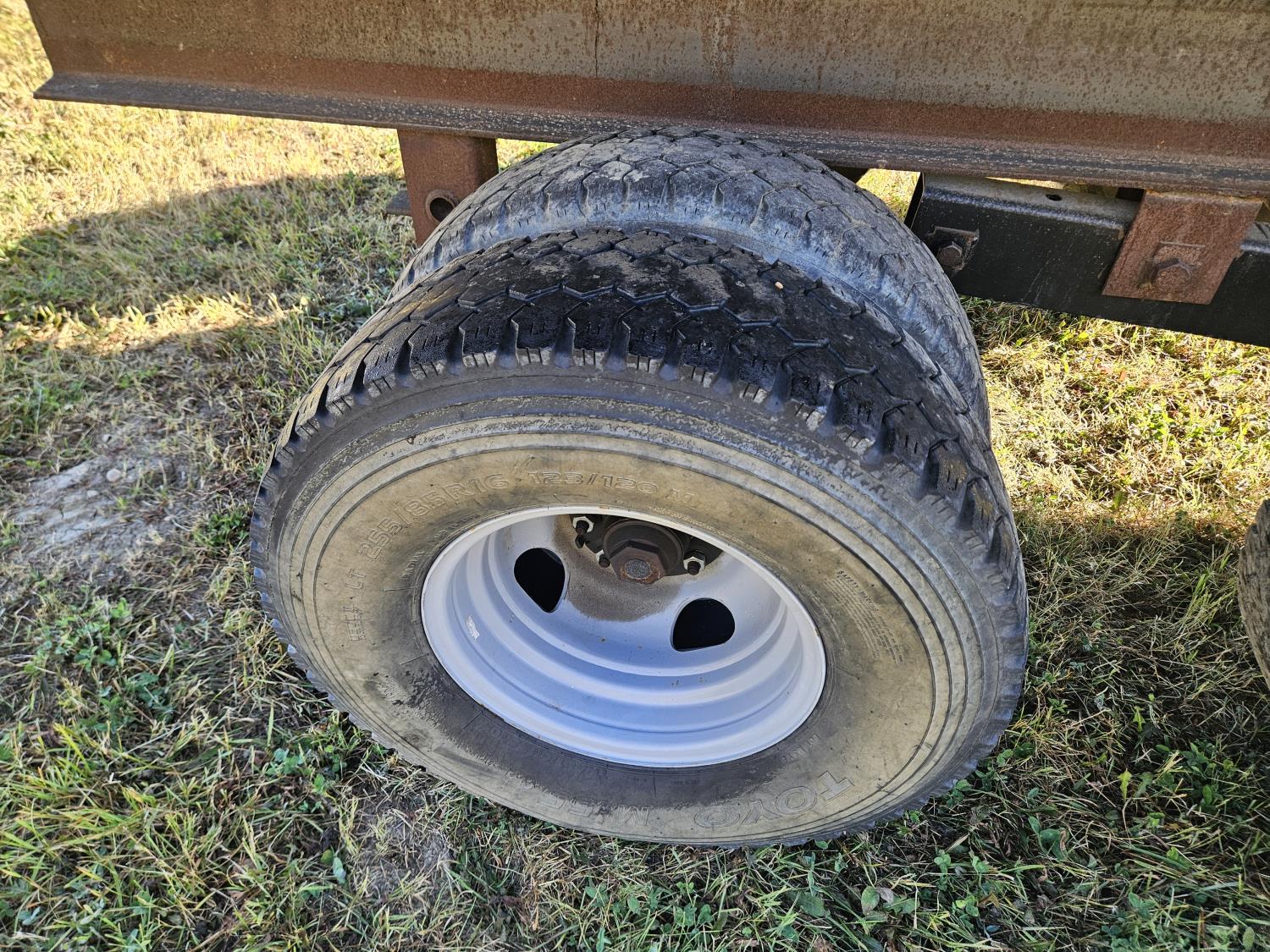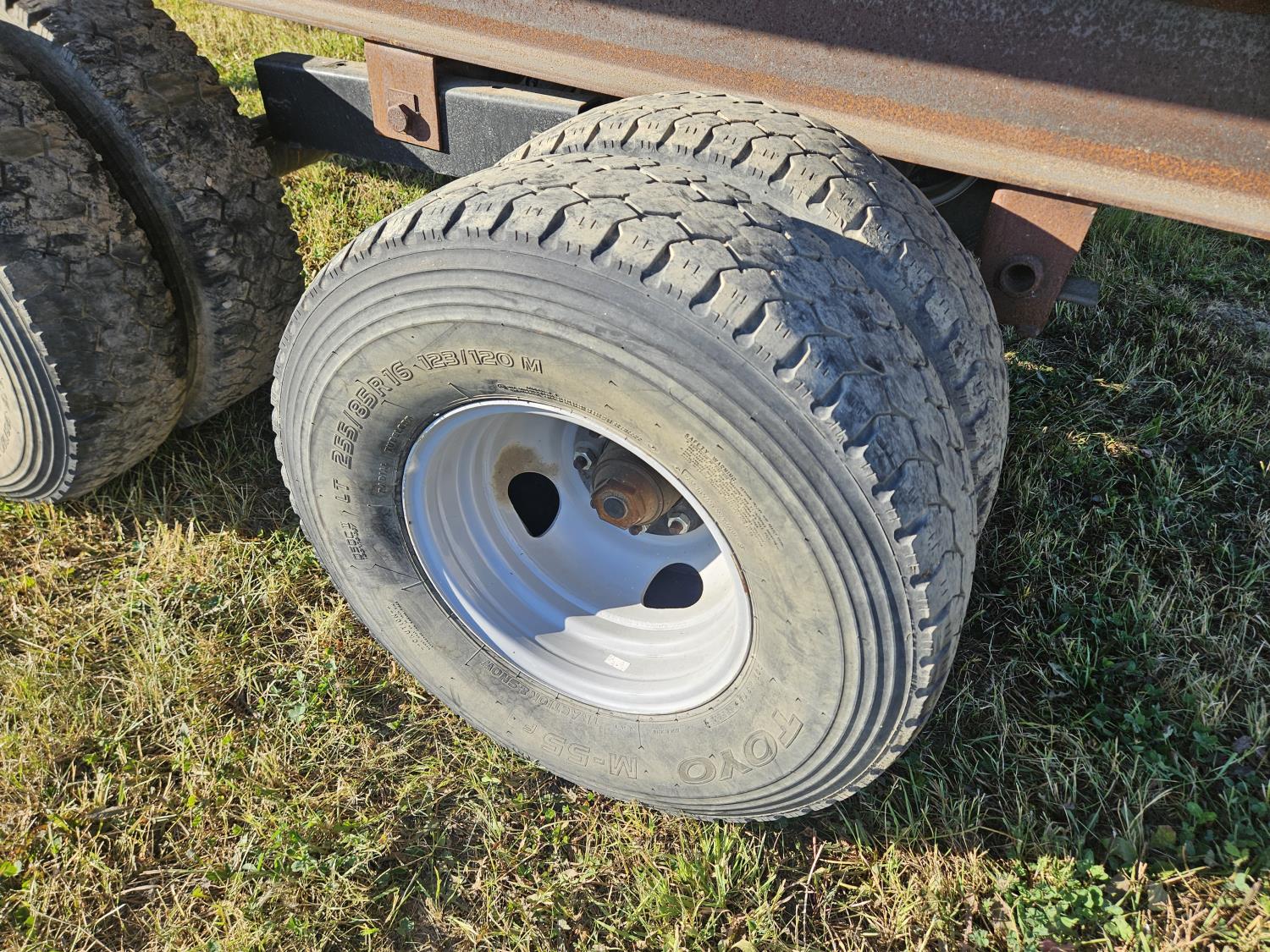 12 ft steel box, 8 ft wide, tandem duals, extra parts in box, 255/85R16 tires