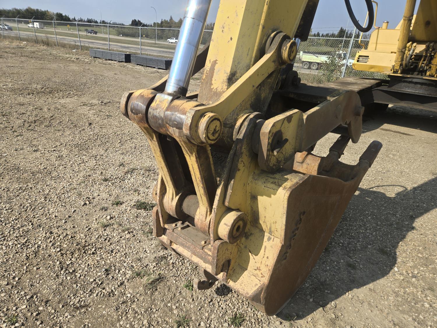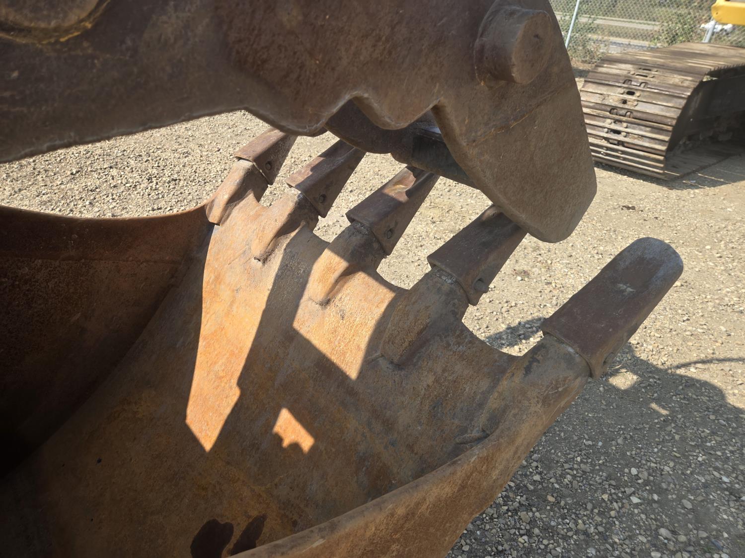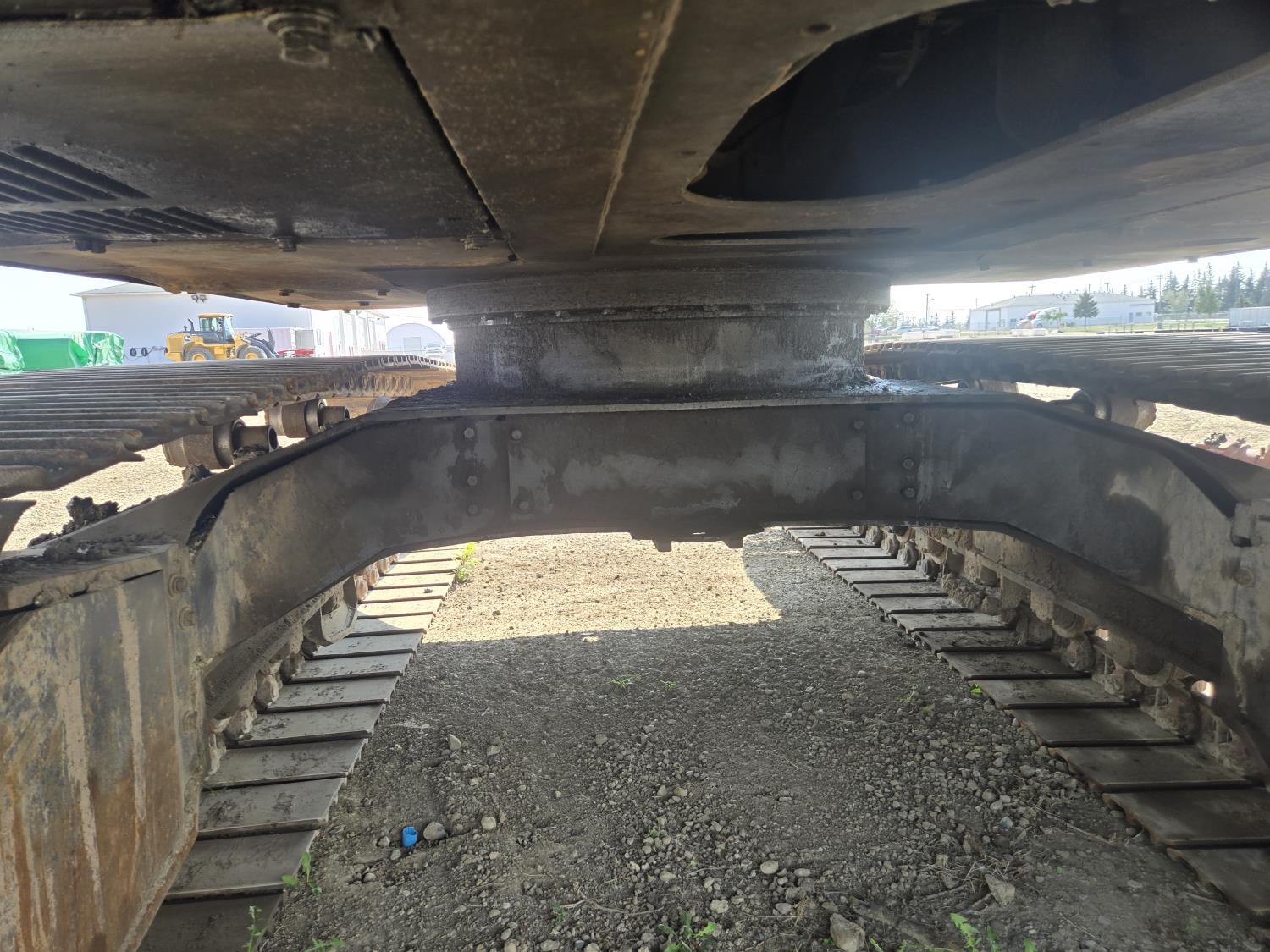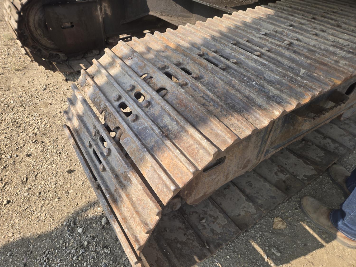 Enclosed cab, 36 inch dig bucket, manual coupler, hydraulic thumb, 10 Ft stick, Unit will not start has fuel pump issues, also has hydraulic pump issues, extra turret motor, 27 inch track pads, triple grousers