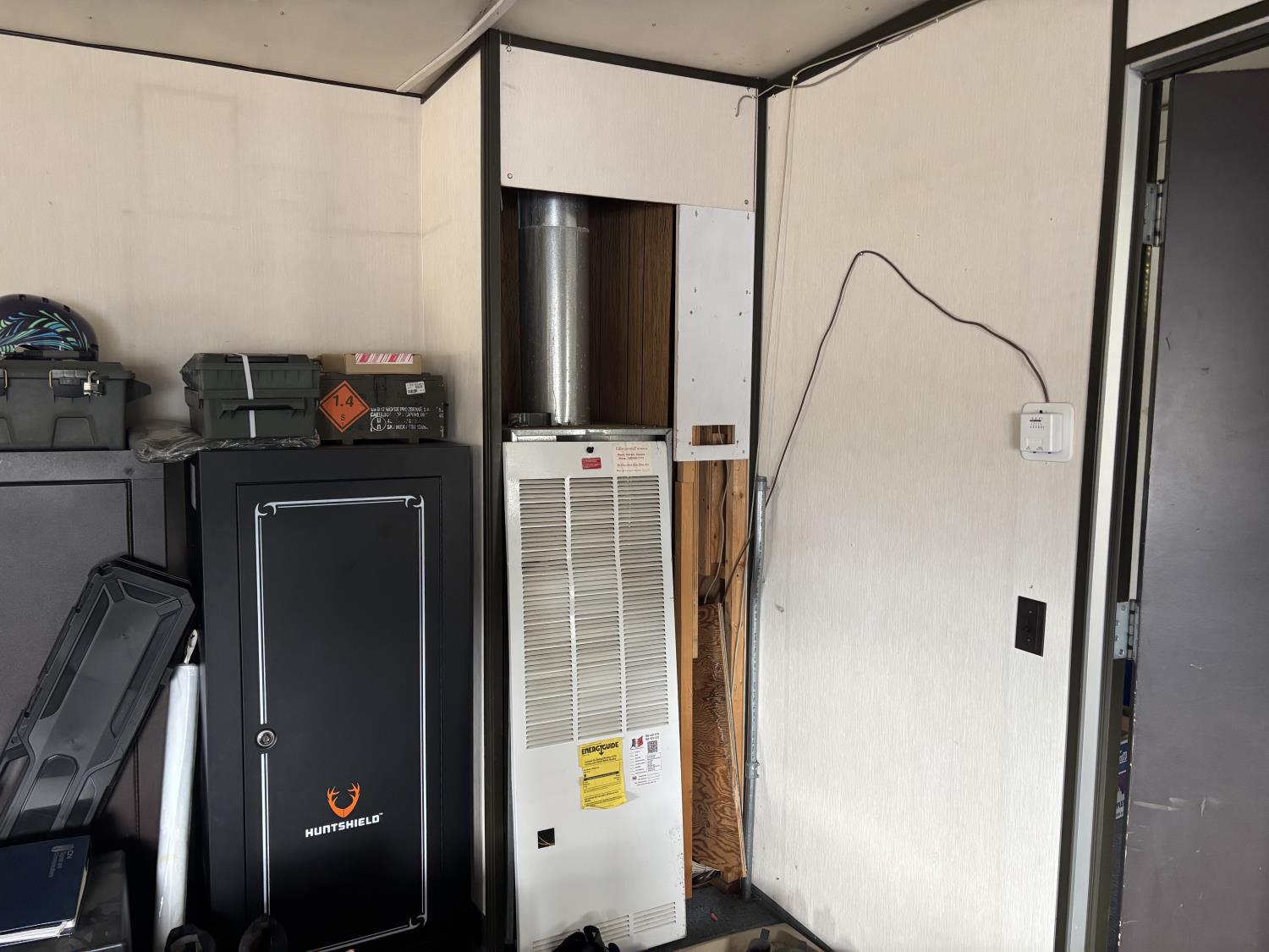 (2) 125 AMP breakers, 120/240 V, (2) natural gas furnaces (only 1 of them operates), (2) exterior doors, windows, lights, (2) sets of outdoor stairs and wooden blocks included. Contents not included. BUYER ASSUMES RESPONSIBILITY FOR LOADOUT. THIS is a OVERSIZE LOAD, PILOT TRUCKS and PROPER TRANPORTATION EQUIPMENT WILL BE NEEDED.