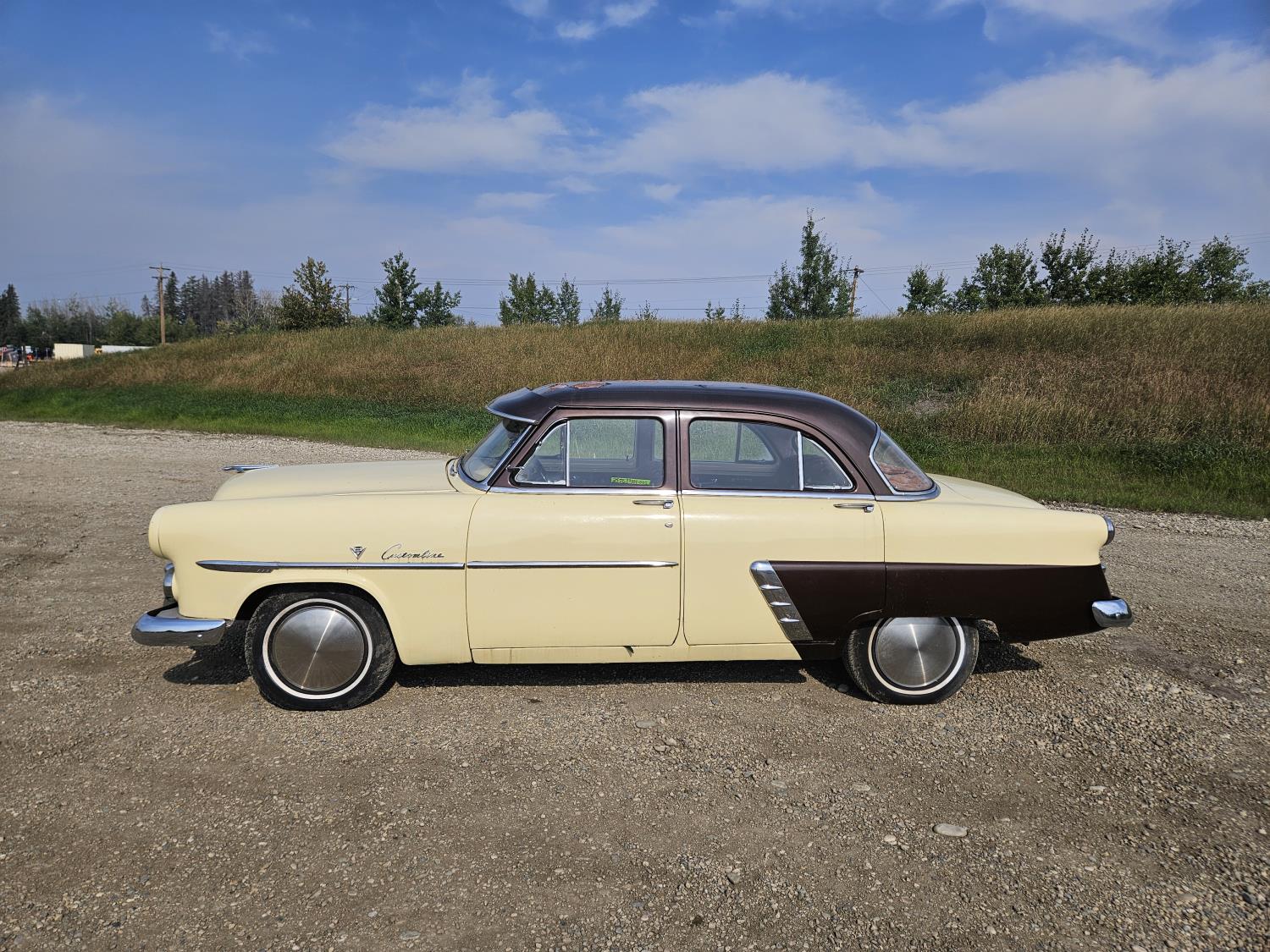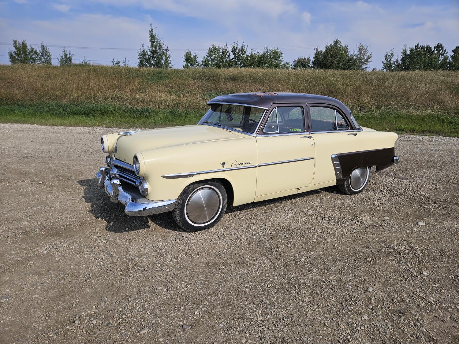 1952 represented the first totally new body for ford since 1949 and featured a one-piece curved windshield and full-width rear window. The Customline series was the intermediate trim level with more exterior chrome trim and upgraded interior appointments. This was a Canadian built Customline with the original flathead V8.