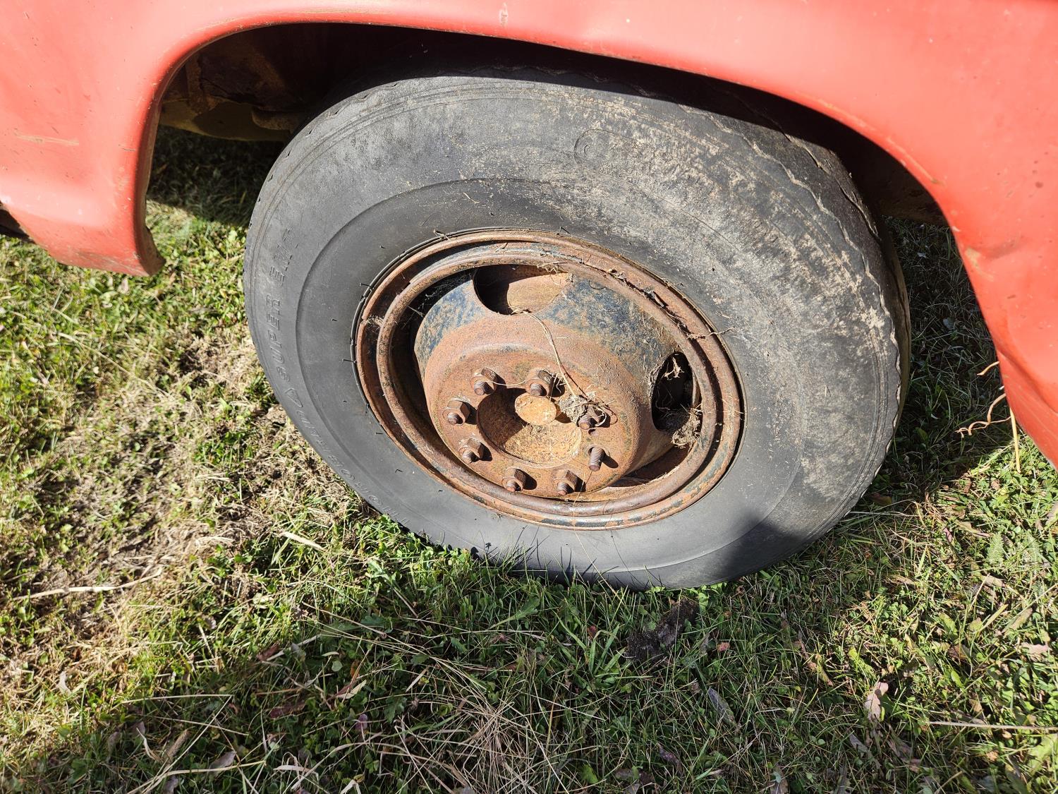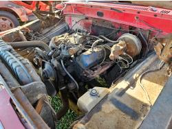 360 cu in, V8, gas, manual transmission, 108 inch long deck, 84 in wide deck, Lincoln SAE-400 DC welder, Perkins diesel engine, both truck and welder turn over not seized, both ran when parked, 7.50-16 tires