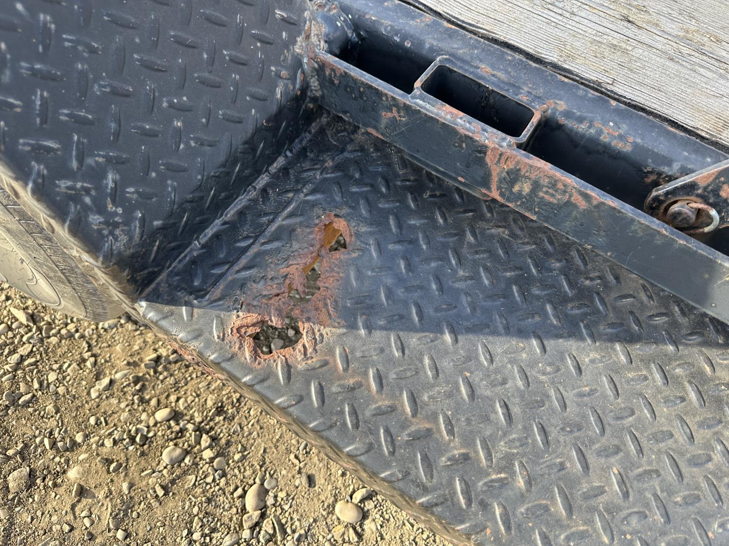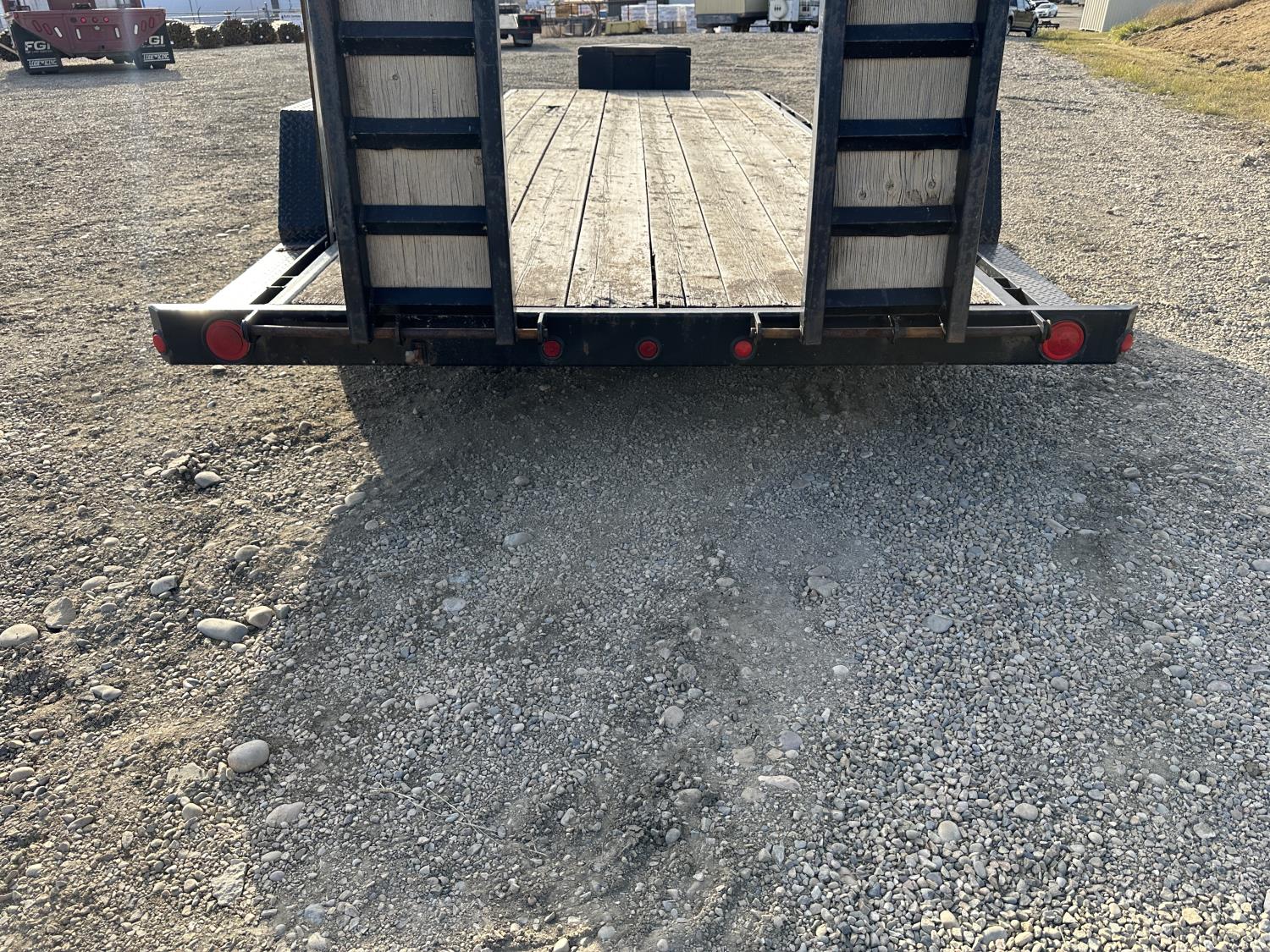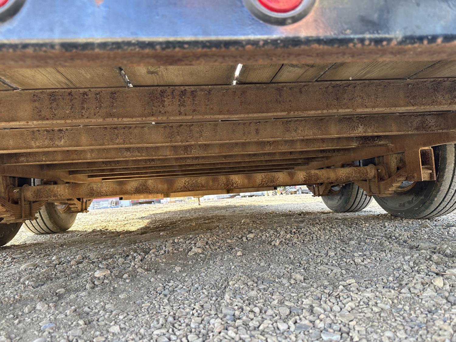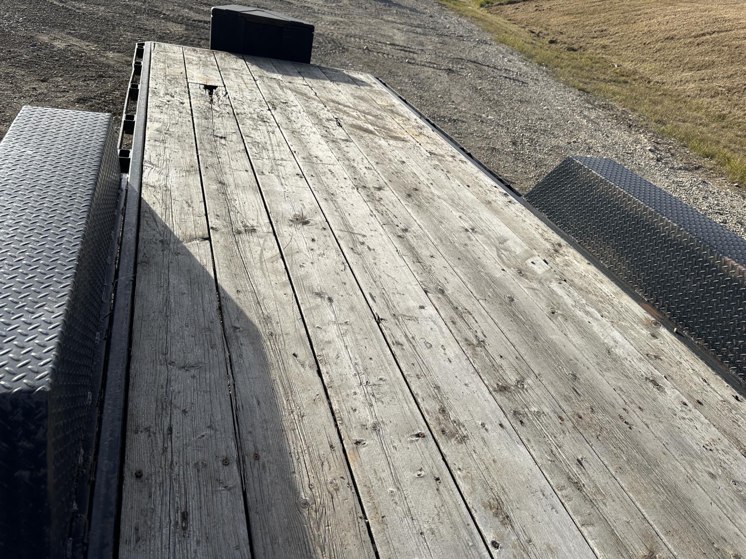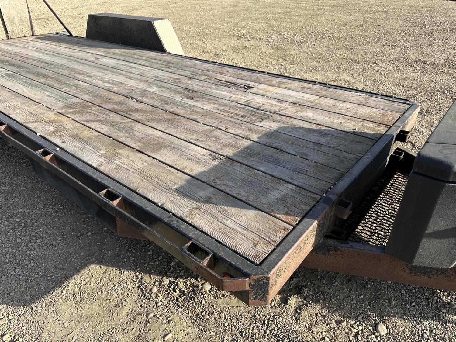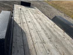 82 inch wide deck, wood deck, stand up ramps, electric brakes, spring suspension, ball hitch, tool / storage box, rub rails, stake pockets, 2-5/16" coupler, 7000 lb axles, 235/85R16 tires