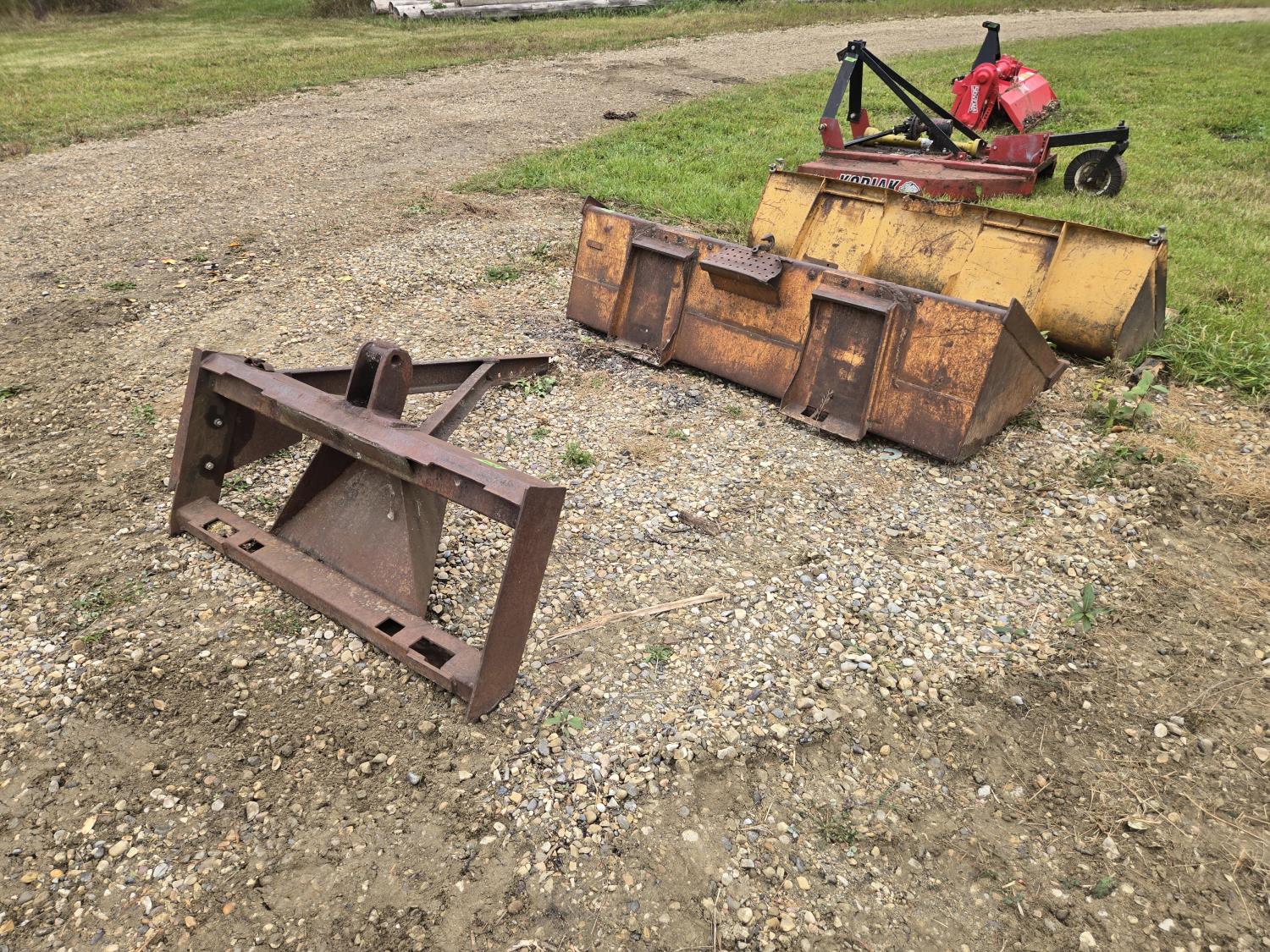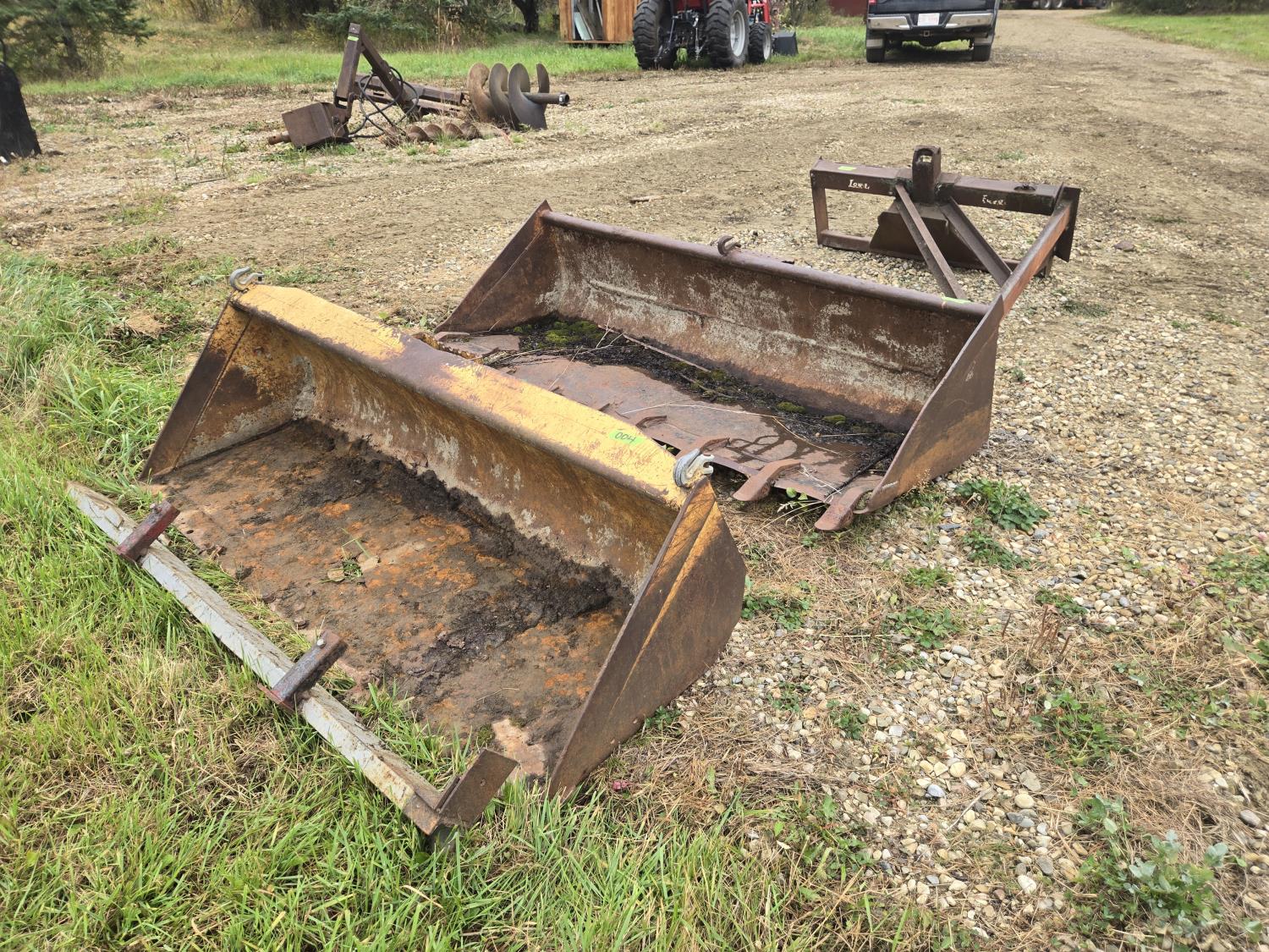 357 (2) 72 Inch Skid Steer Buckets & 54 Inch Shop Built Jib