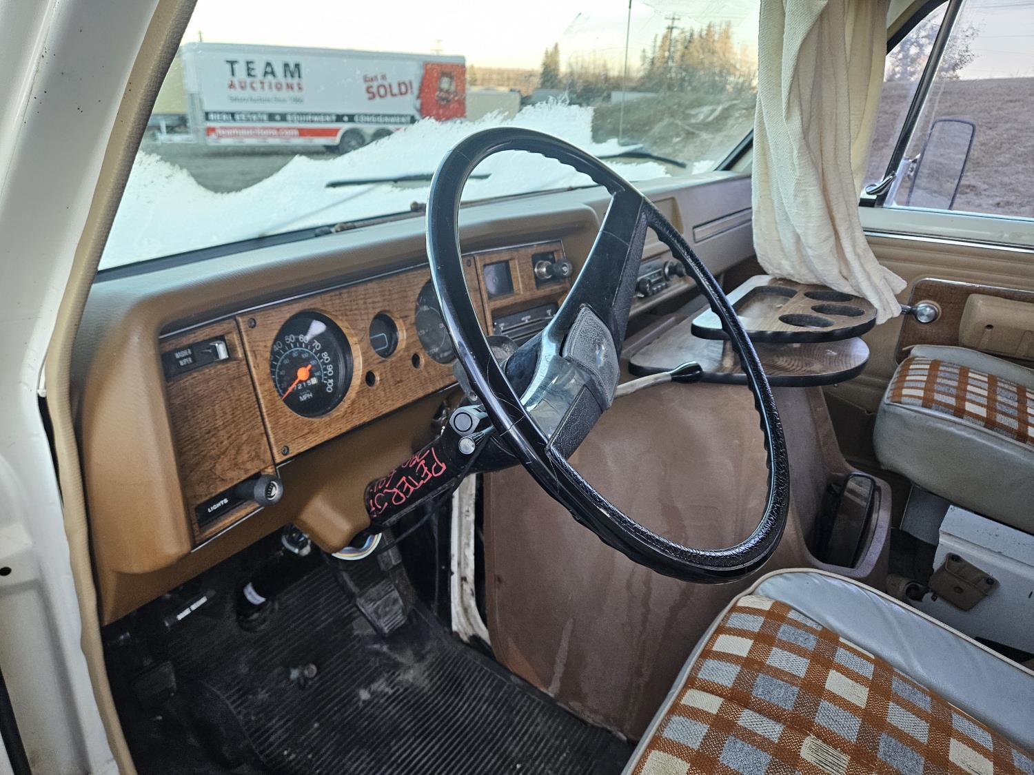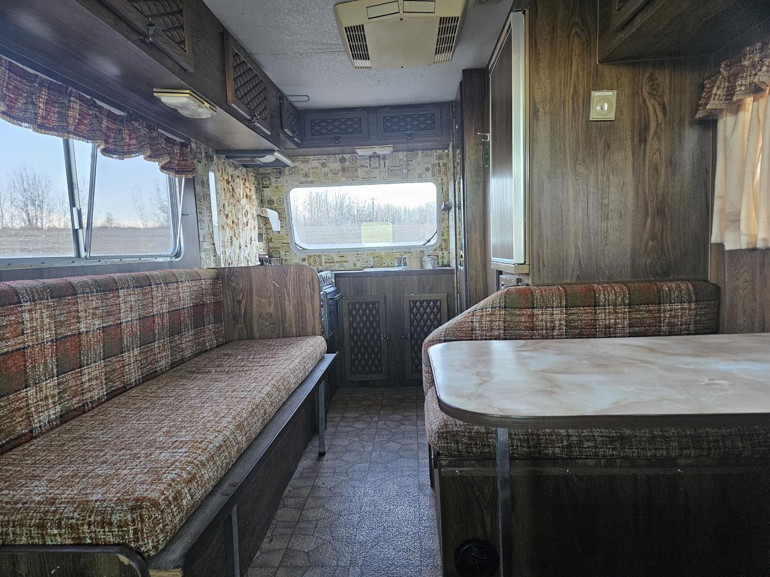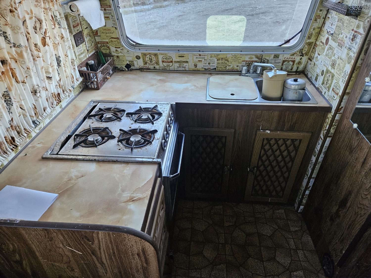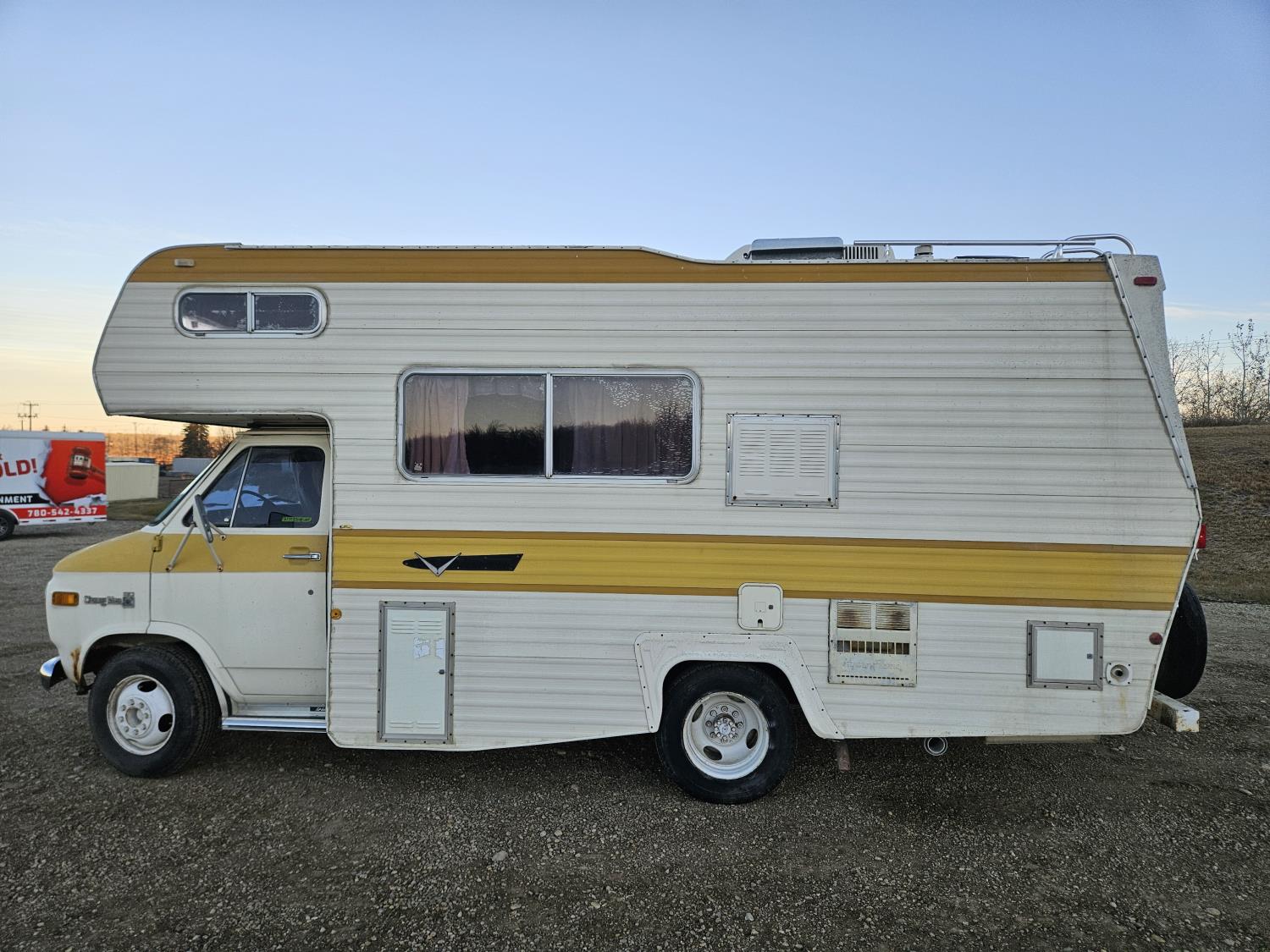 Chevrolet 350 V8 gas engine, automatic transmission, sleeps 6, A/C, oven, stove, fridge, bathroom, manual awning, new front tires, new batteries, roof recently resealed, gear shift wont go into park, 8.75-16.5 tires