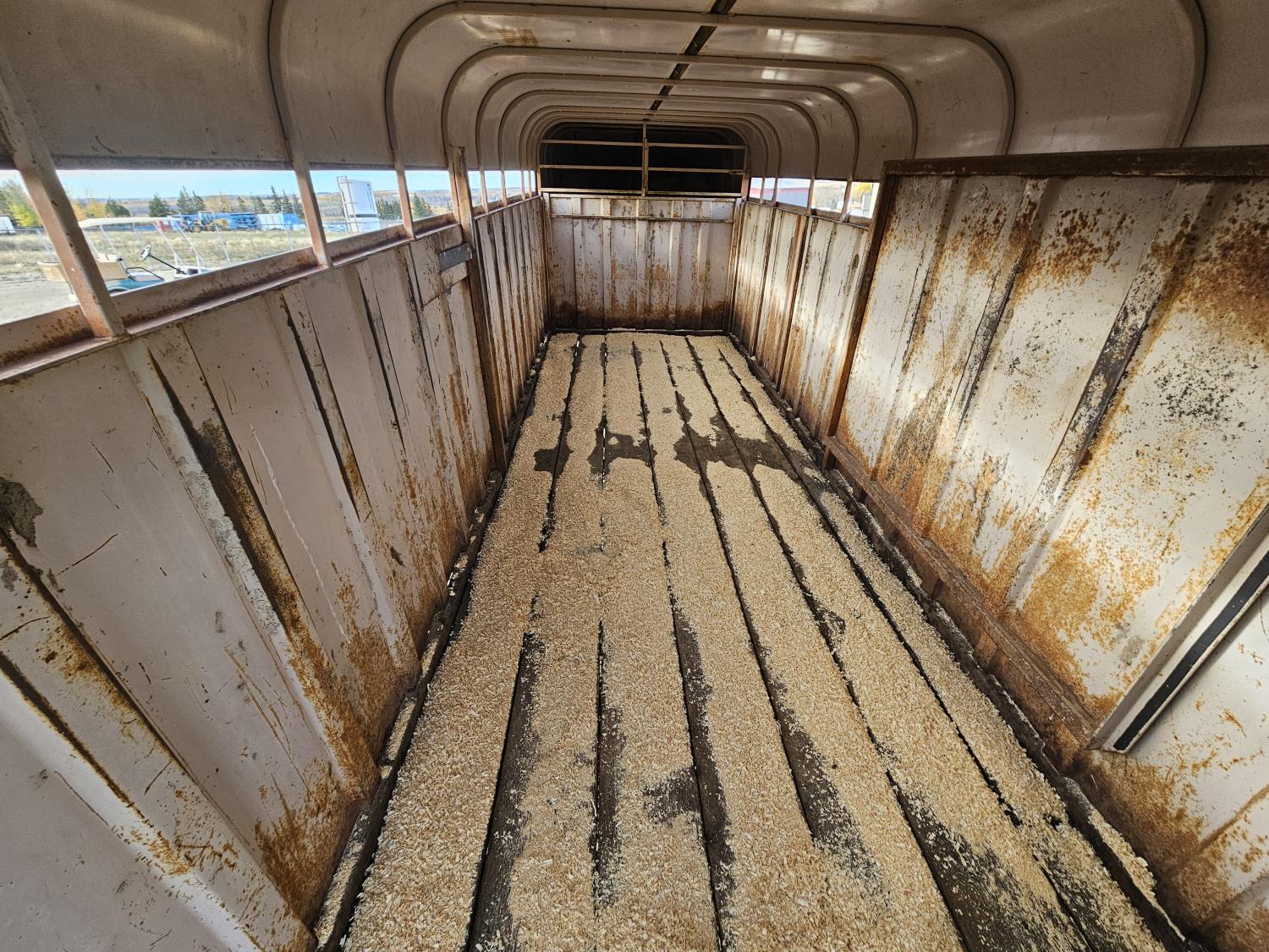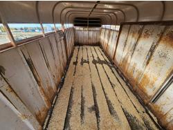 74 inch interior width, 76 inch interior height, front storage, side man door, rear sliding door, center divider gate, king pin fifth wheel hitch included, 9.50-16.5 tires