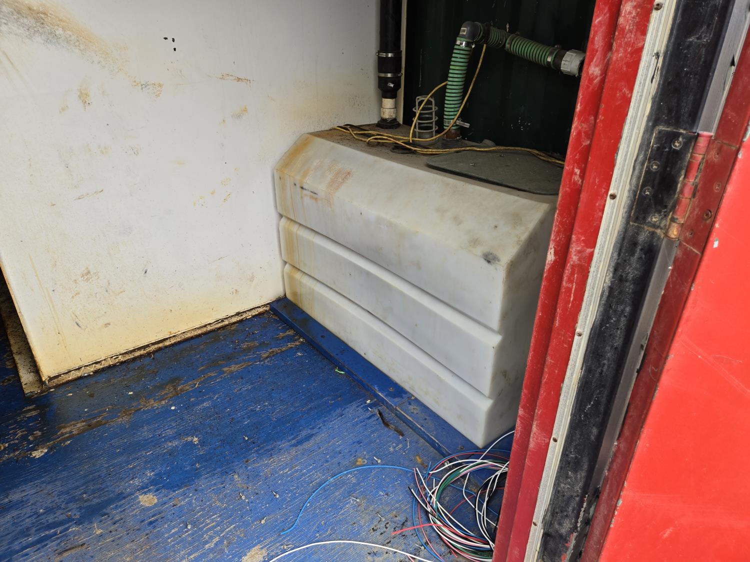 skid 24 ft long, (2) poly water tanks