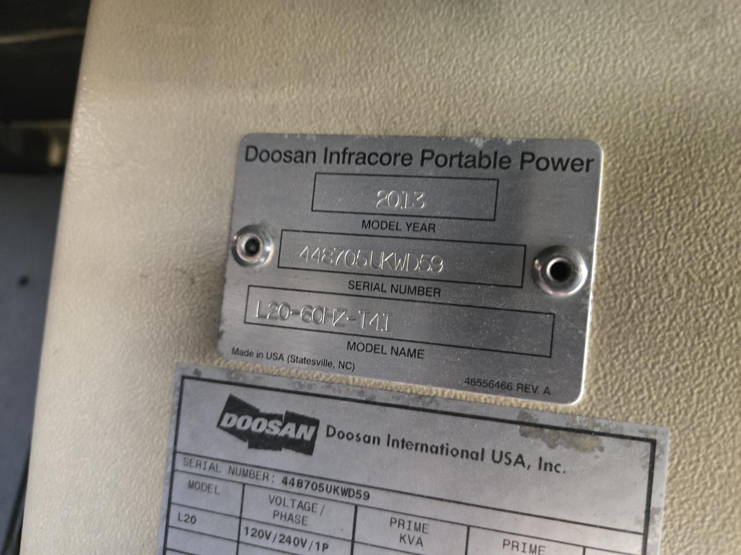84 2013 Doosan L20-60HZ-T4I 20 Kw Light Tower