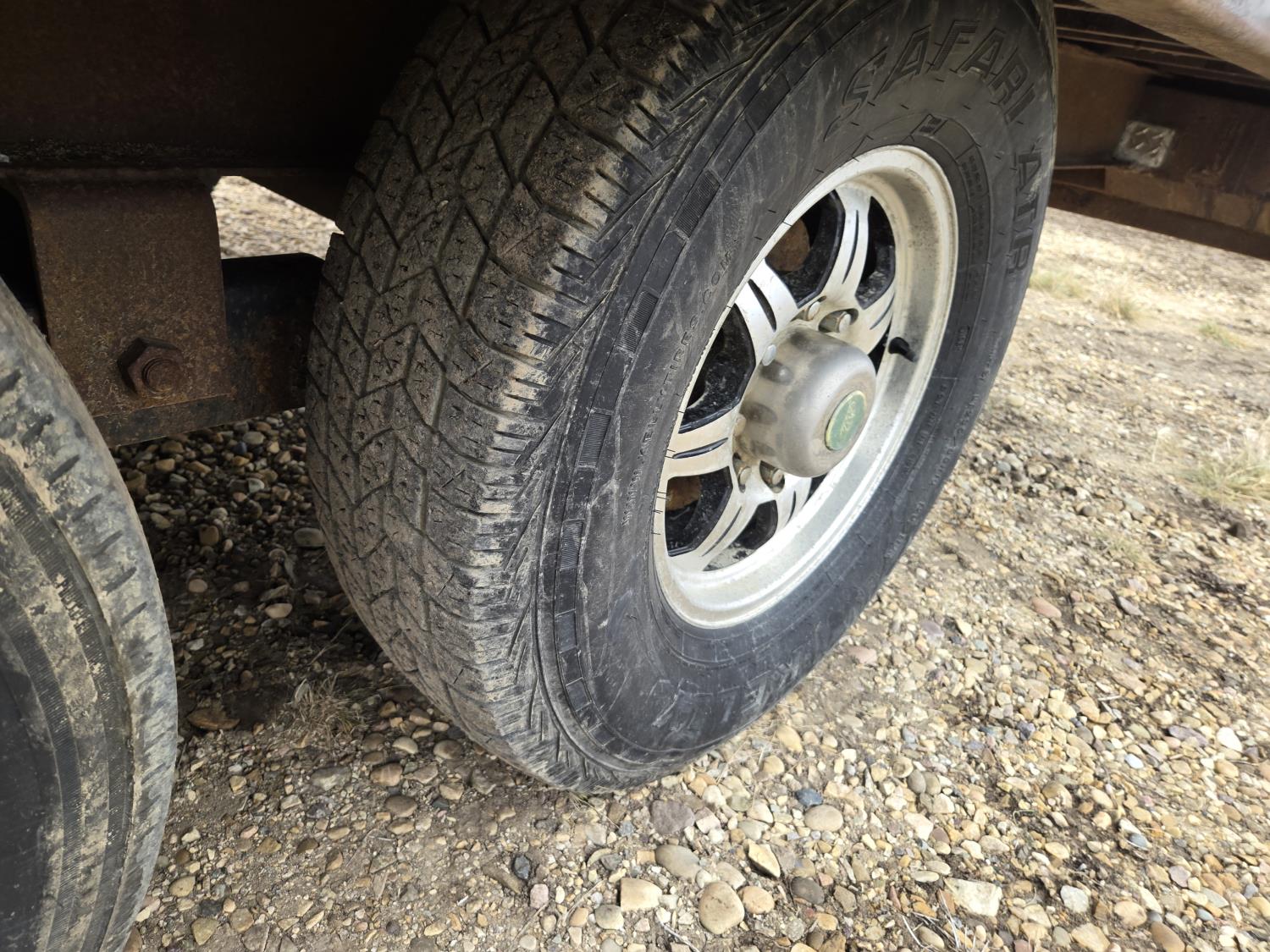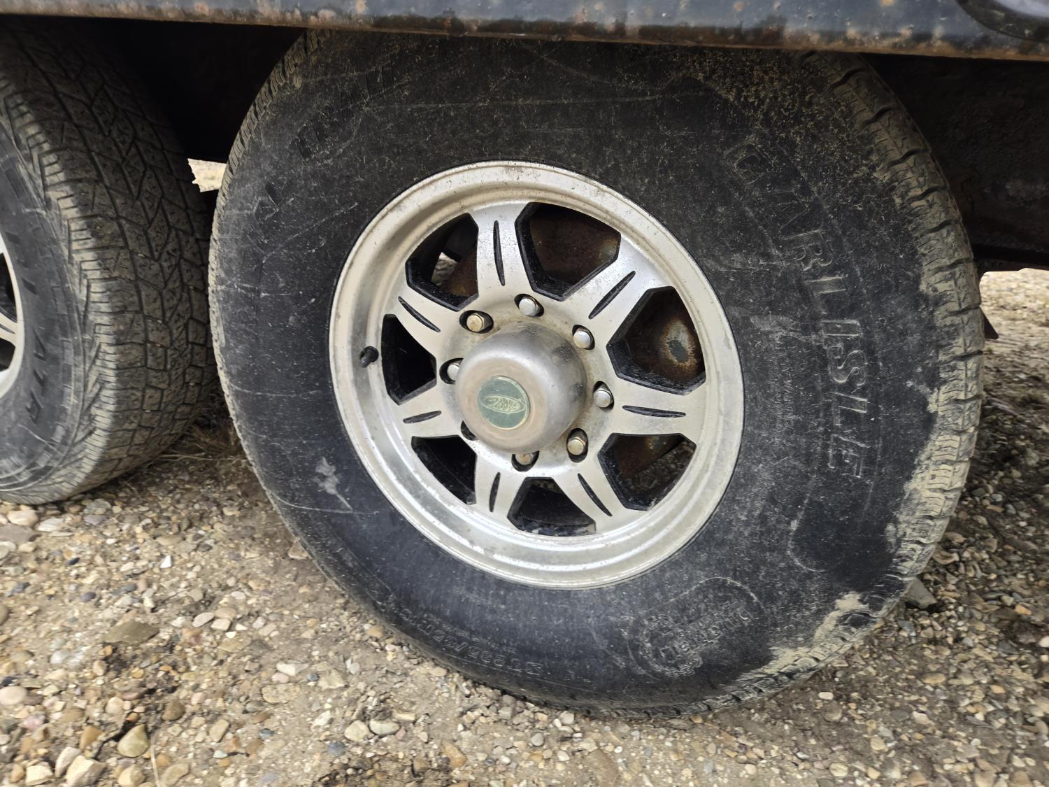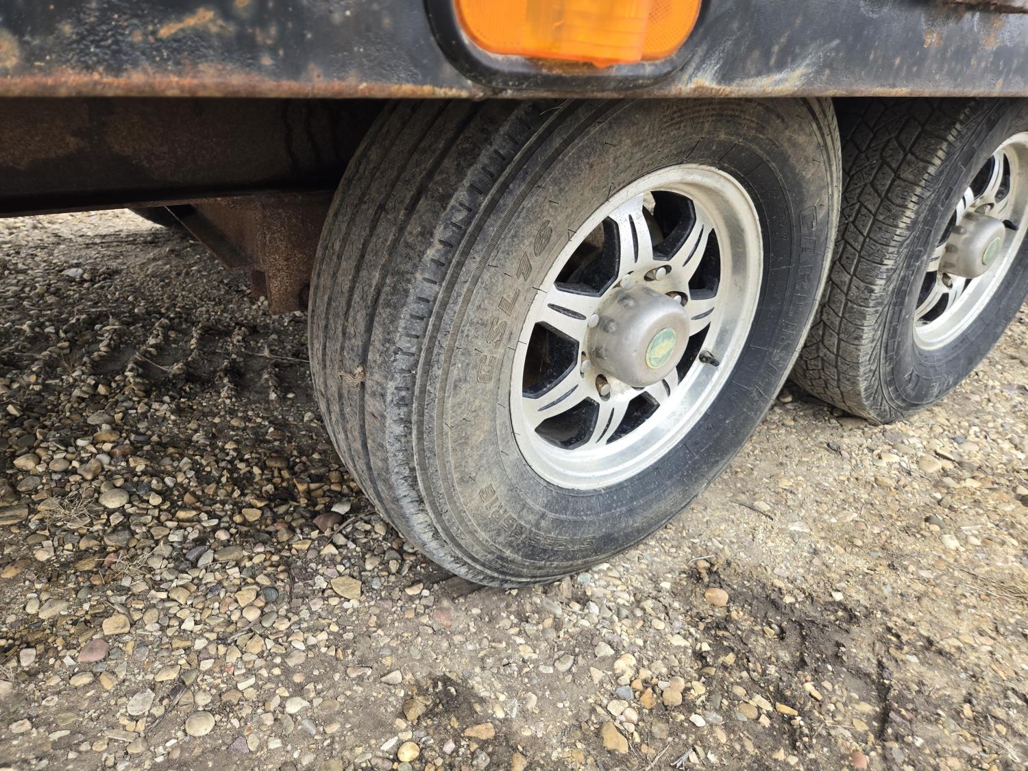 102 inch wide deck, wood deck, slide in ramps, electric brakes, torsion suspension, ball hitch, tool / storage box, rub rails, stake pockets, 7000 lb axles, 235/80R16 tires