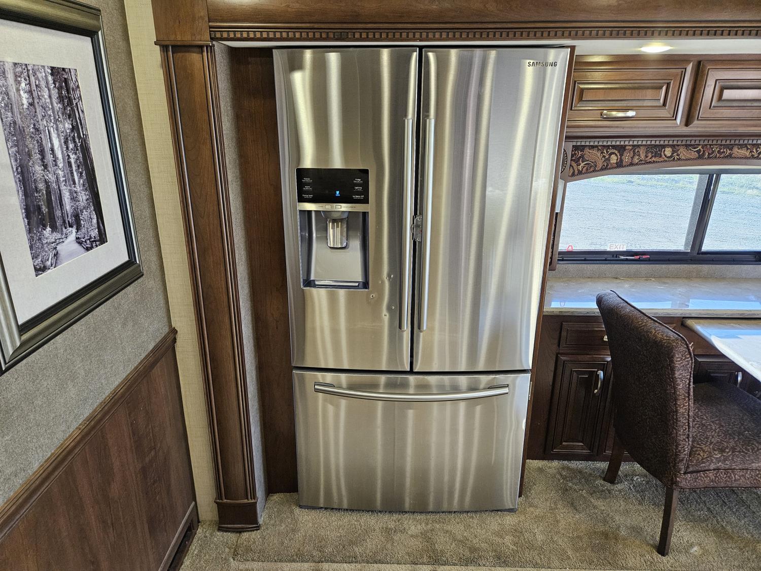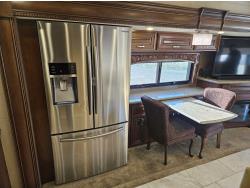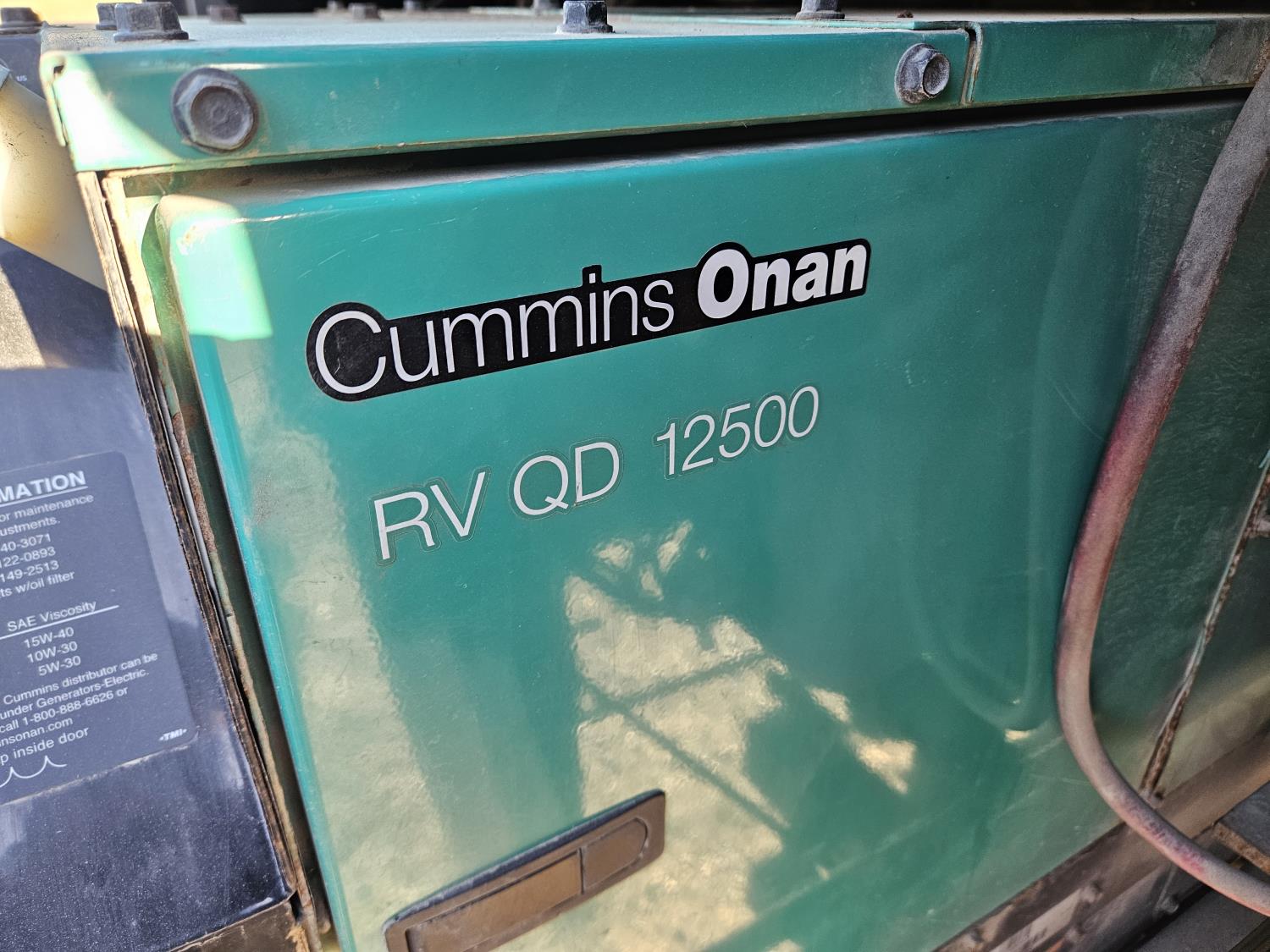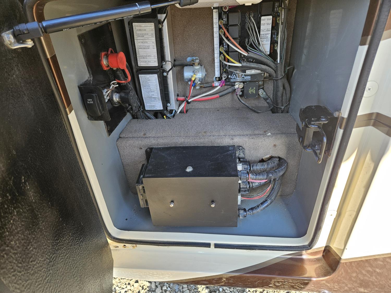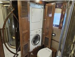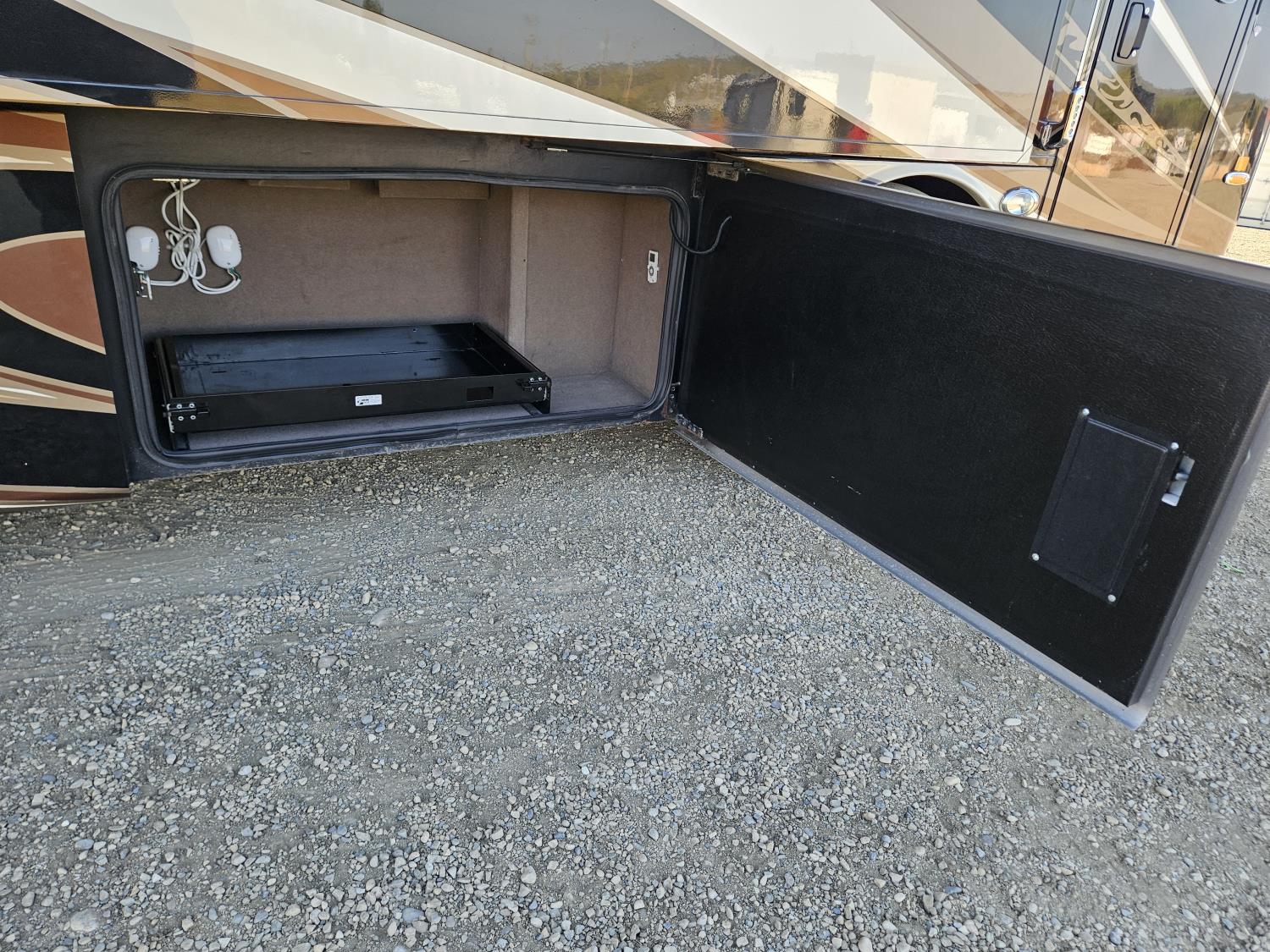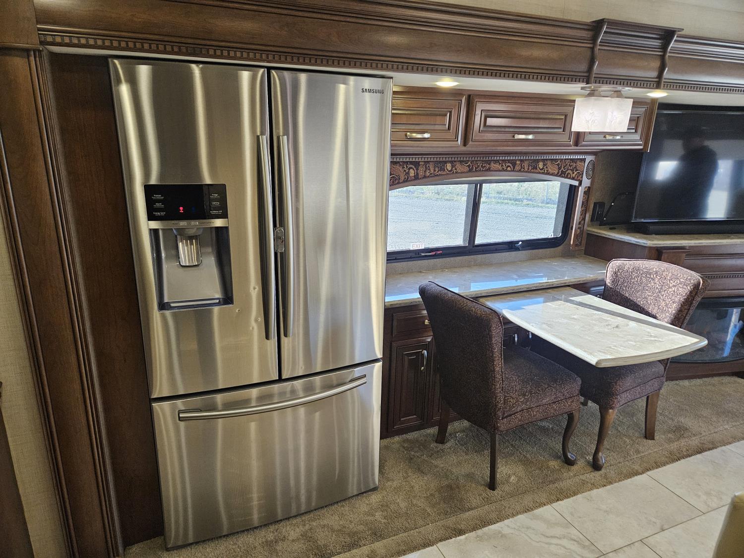 Cummins ISL 450 HP diesel engine, Allison 6-speed automatic, 4 power slide outs, Onan 12,500W diesel generator, Aqua-Hot hydronic heating, tile floors, premium leather seating, LED multiplex lighting, HD TVs, electric fireplace, Residential refrigerator, induction cooktop, convection microwave, solid-surface counters, King bed, wardrobe, stacked washer/dryer, full rear bath with tiled shower + mid-coach half bath, Heated/enclosed exterior storage bays, 315/80R22.5 front tires, 11R22.5 rear tires