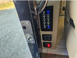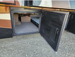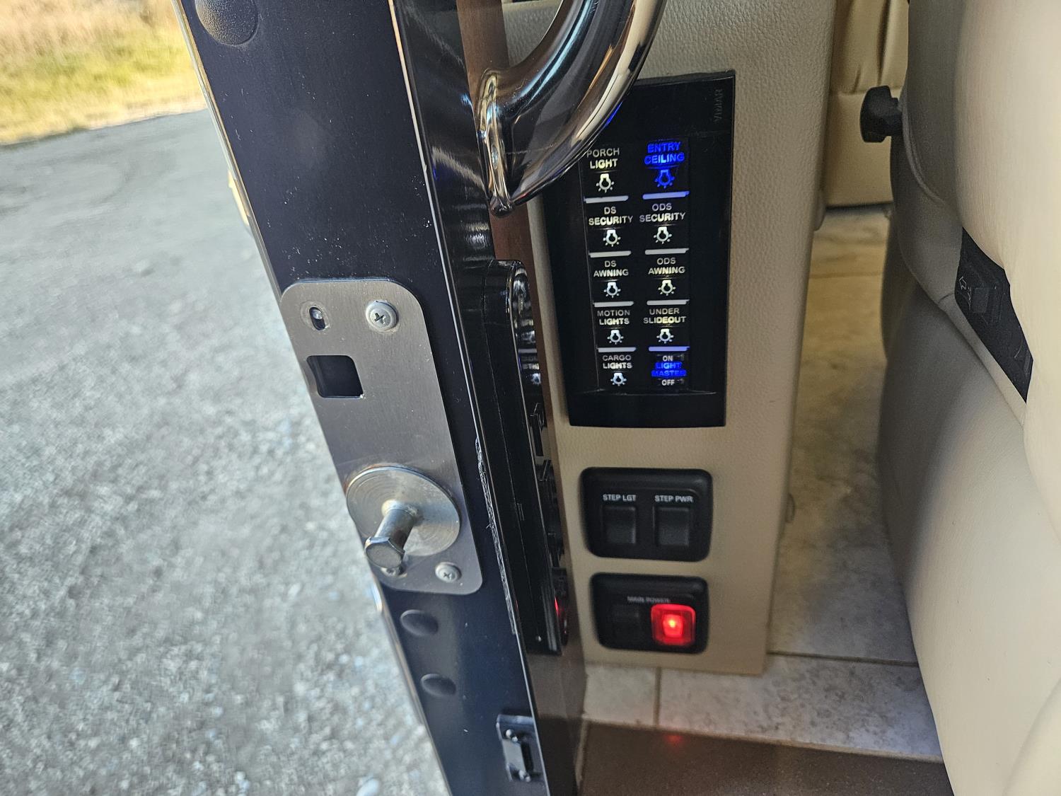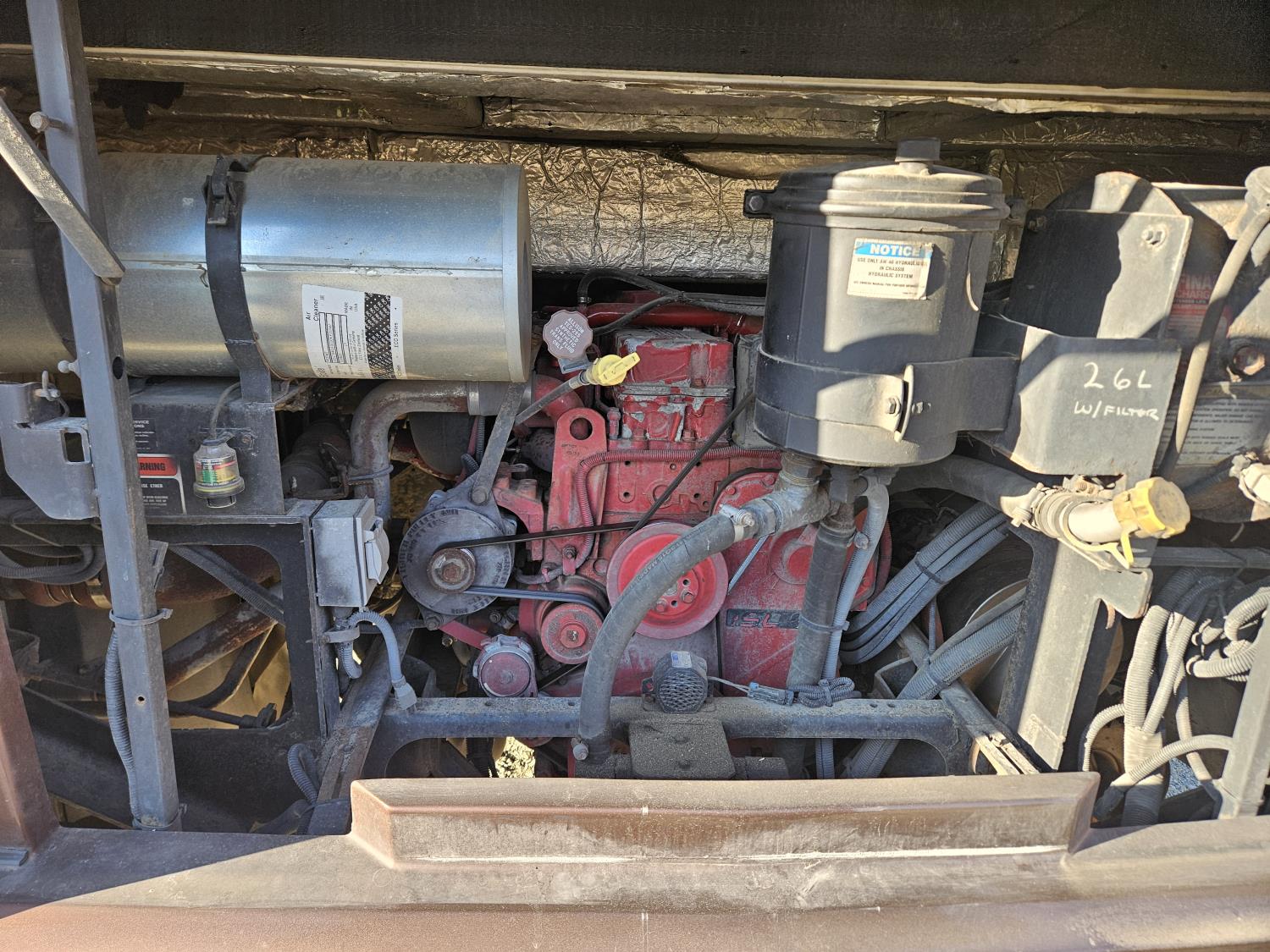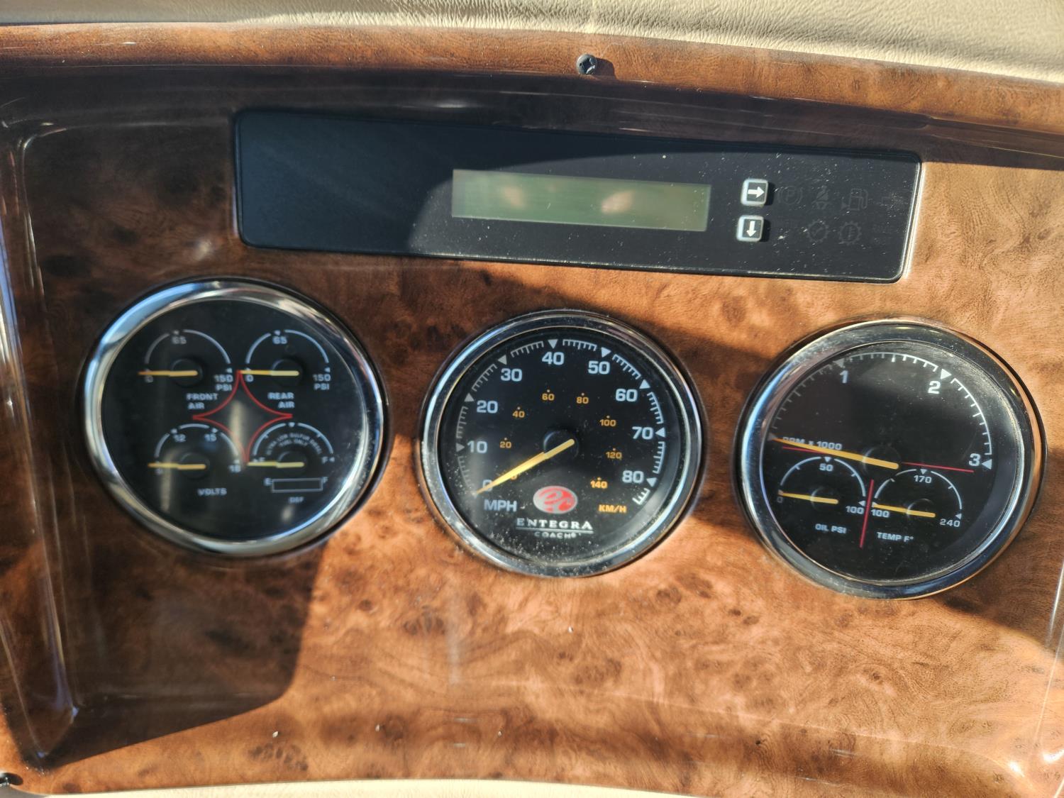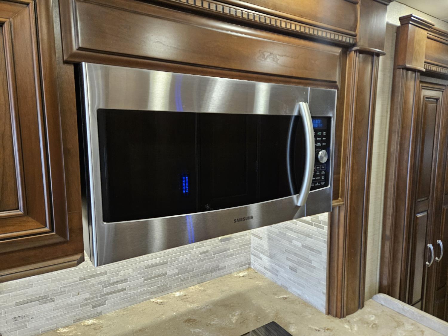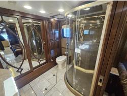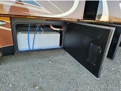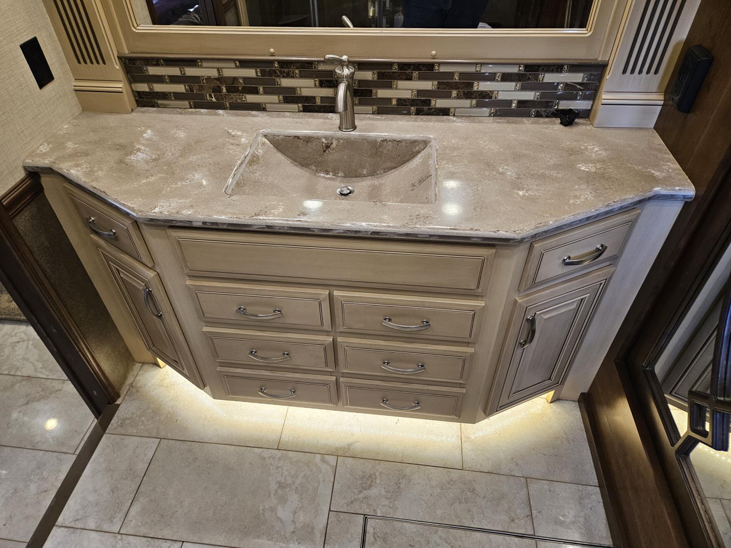 Cummins ISL 450 HP diesel engine, Allison 6-speed automatic, 4 power slide outs, Onan 12,500W diesel generator, Aqua-Hot hydronic heating, tile floors, premium leather seating, LED multiplex lighting, HD TVs, electric fireplace, Residential refrigerator, induction cooktop, convection microwave, solid-surface counters, King bed, wardrobe, stacked washer/dryer, full rear bath with tiled shower + mid-coach half bath, Heated/enclosed exterior storage bays, 315/80R22.5 front tires, 11R22.5 rear tires