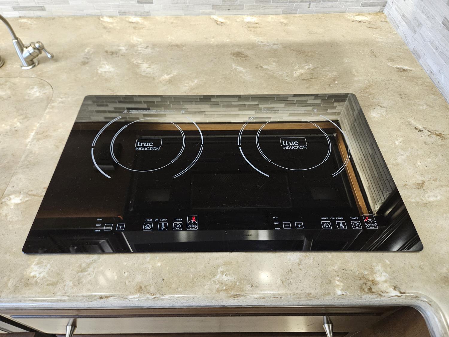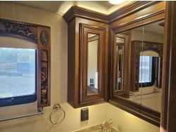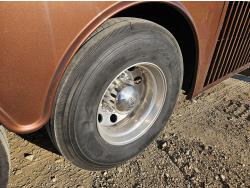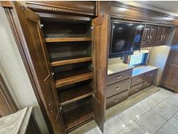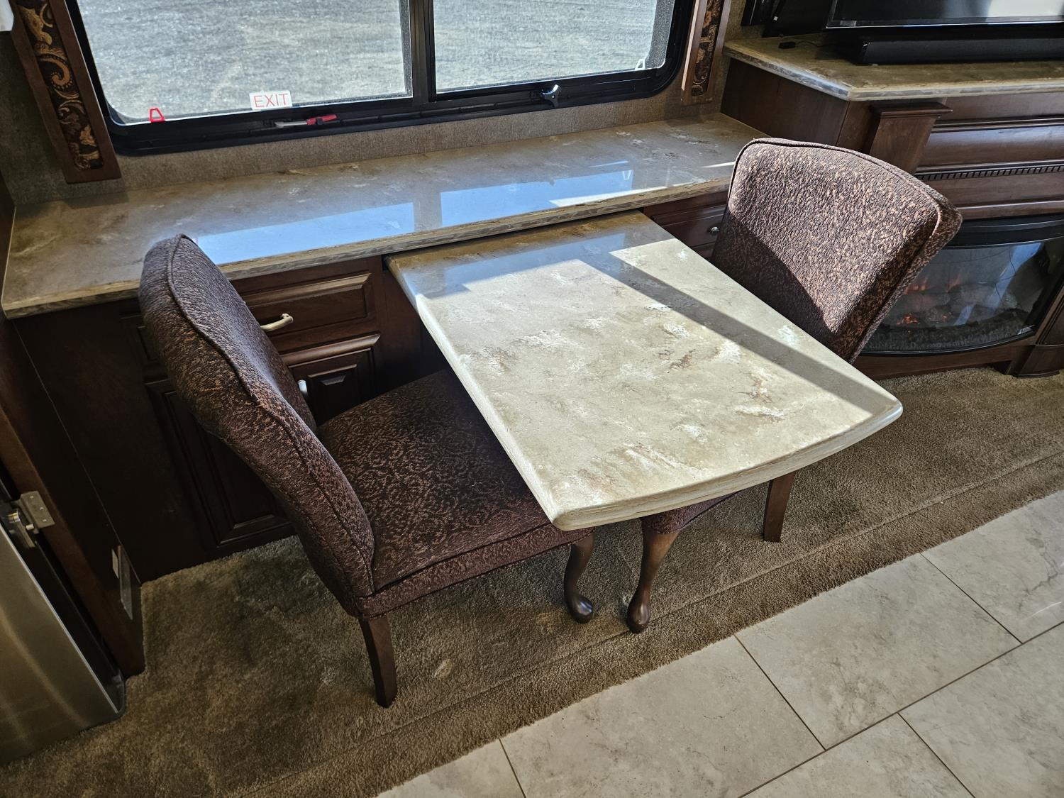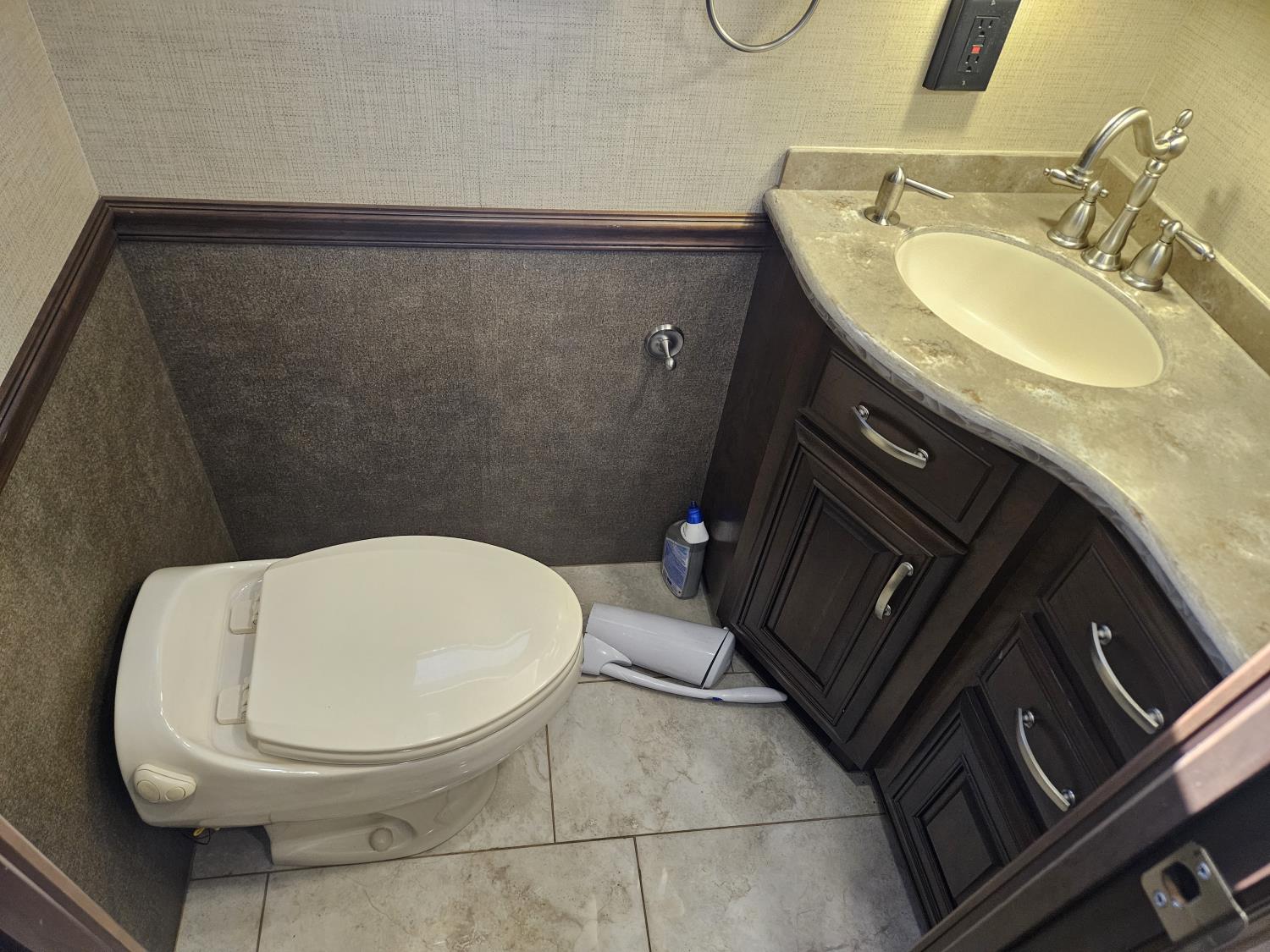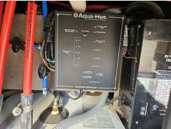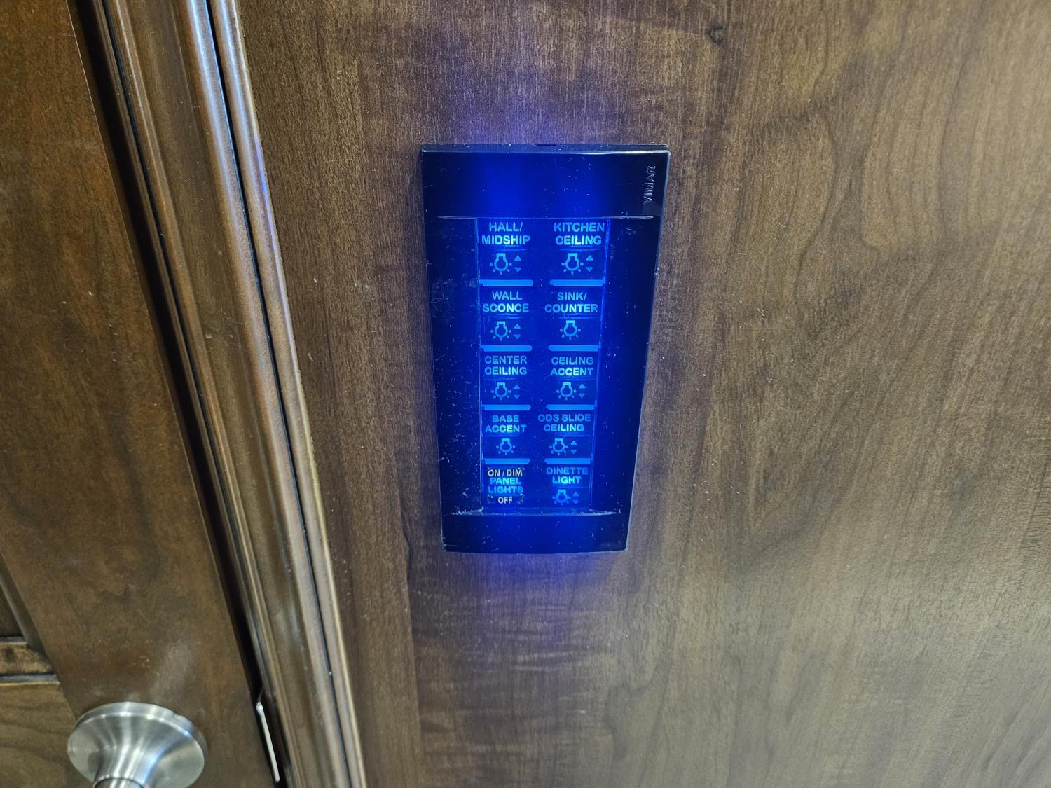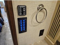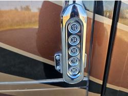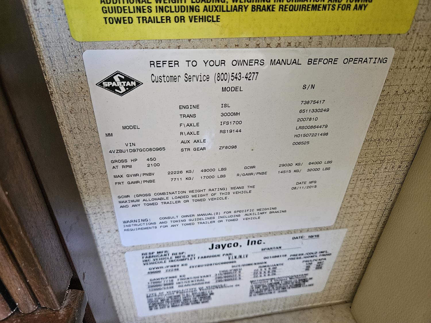 Cummins ISL 450 HP diesel engine, Allison 6-speed automatic, 4 power slide outs, Onan 12,500W diesel generator, Aqua-Hot hydronic heating, tile floors, premium leather seating, LED multiplex lighting, HD TVs, electric fireplace, Residential refrigerator, induction cooktop, convection microwave, solid-surface counters, King bed, wardrobe, stacked washer/dryer, full rear bath with tiled shower + mid-coach half bath, Heated/enclosed exterior storage bays, 315/80R22.5 front tires, 11R22.5 rear tires