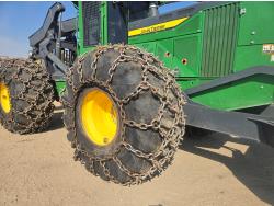A/C, air ride seat, joystick steering, 2 position station, 17.5 sq ft grapple, positive air shutoff, Espar engine heater, cab screens, sweeps, 116" front decking blade, extended fuel tank, 35.5-32 Firestone forestry tires with chains