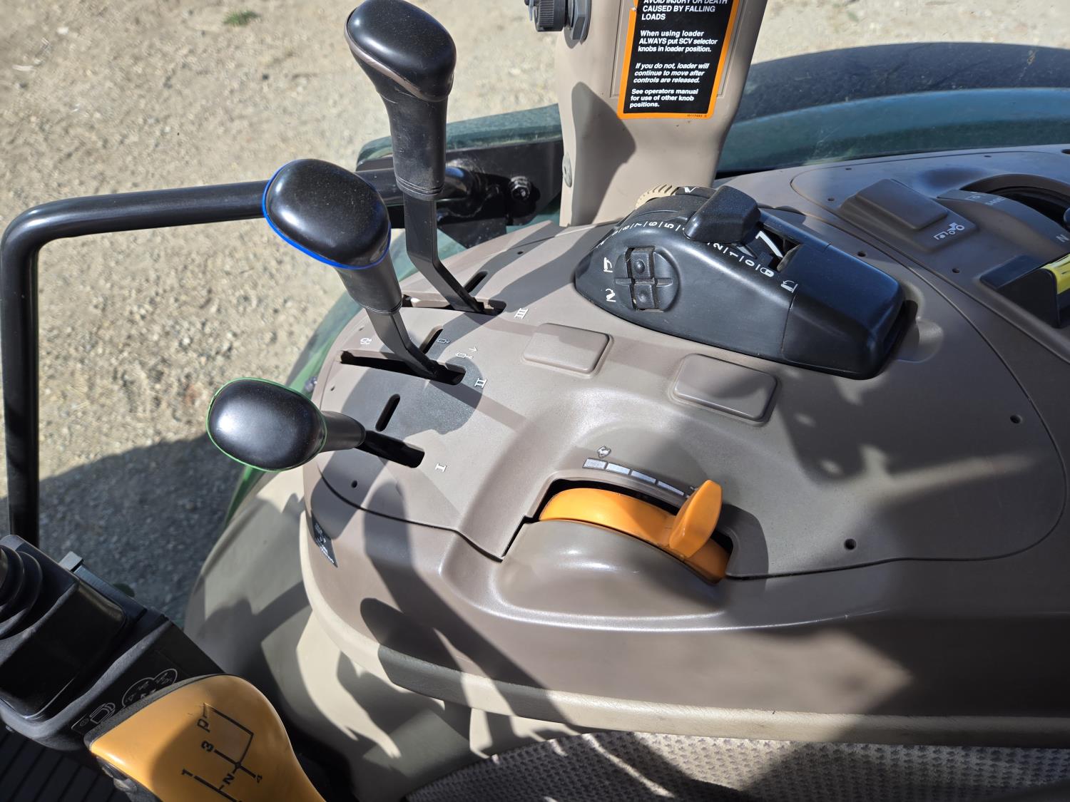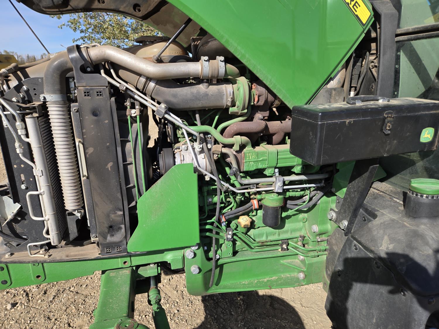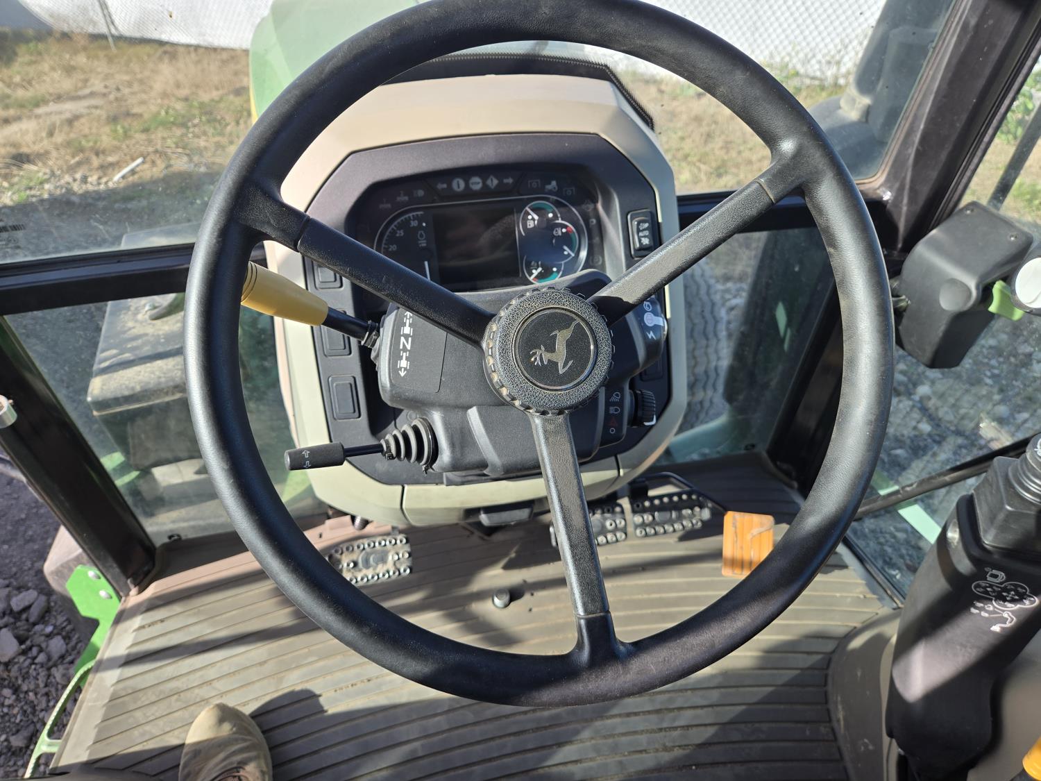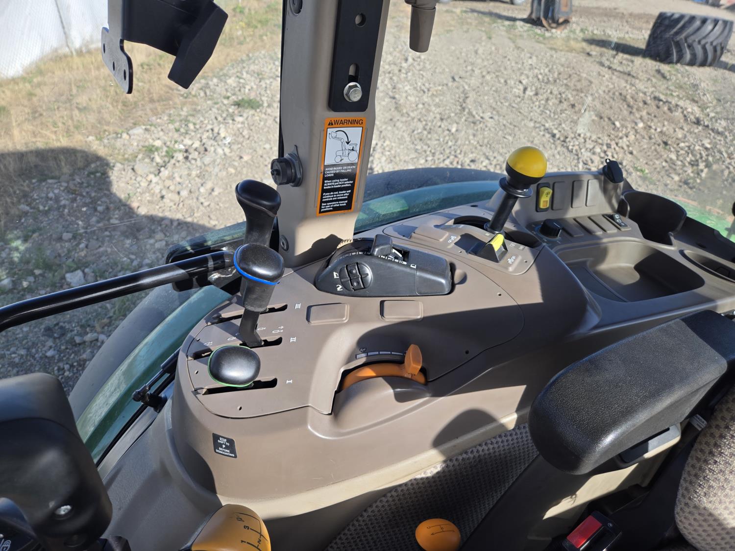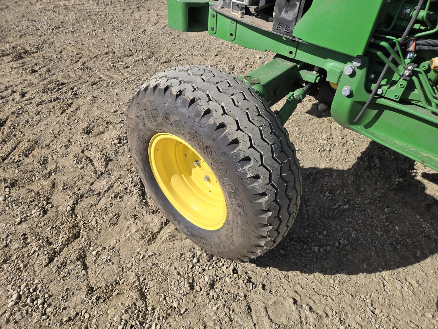 John Deere 4.5 L 4 cylinder 90 HP, engine, 16 speed partial synchro transmission, cab, left hand reverser, rear differential lock, joystick, A/C, radio, loader ready, 540 PTO, 3 point hitch, 3 point hitch exterior control, 3 rear hydraulic outlets, 11L-15 front tires, 19.5L-24 rear tires