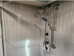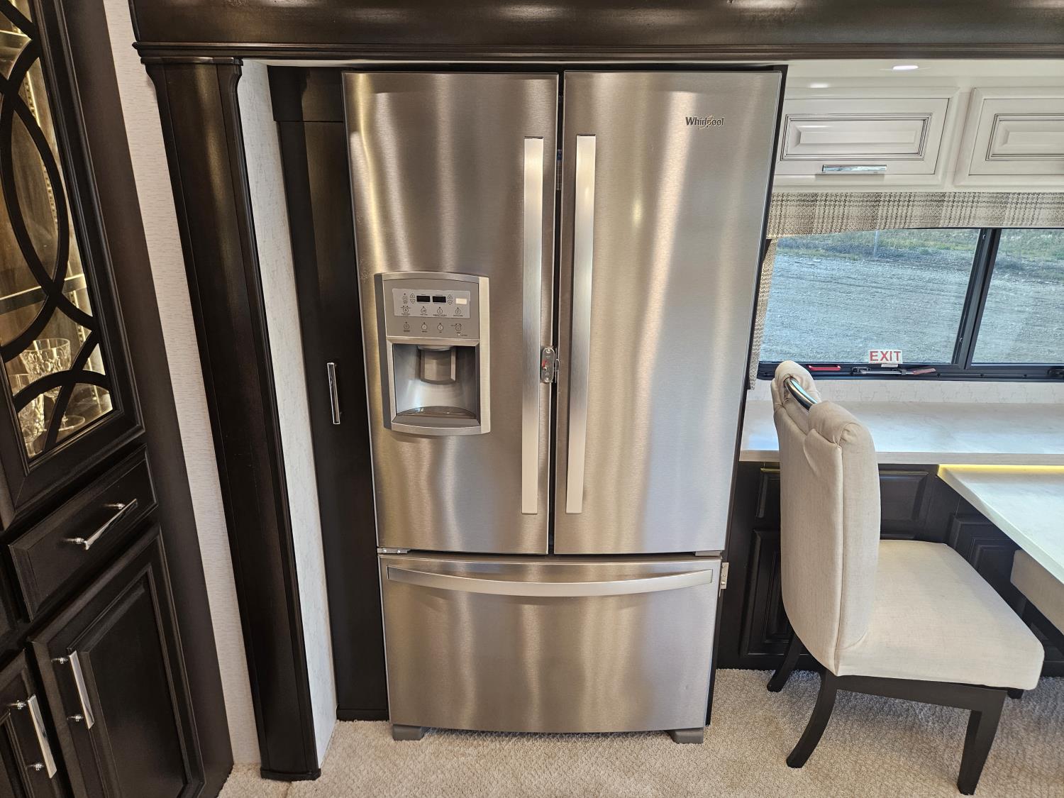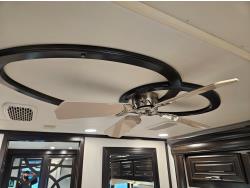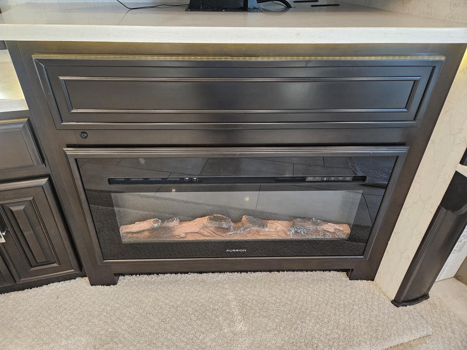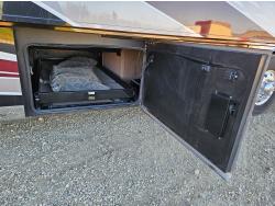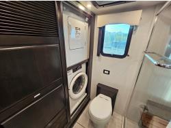 Cummins ISL 450 HP diesel engine, Allison 6 speed automatic transmission, 4 slide outs, Onan 12,500W diesel generator, Aqua-Hot hydronic heating, tile floors, premium leather seating, LED multiplex lighting, HD TVs, electric fireplace, Residential refrigerator, induction cooktop, convection microwave, solid-surface counters, King bed, wardrobe, stacked washer/dryer, full rear bath with tiled shower + mid-coach half bath, Heated/enclosed exterior storage bays, 365/70R22.5 front tires, 315/80R22.5 rear tires