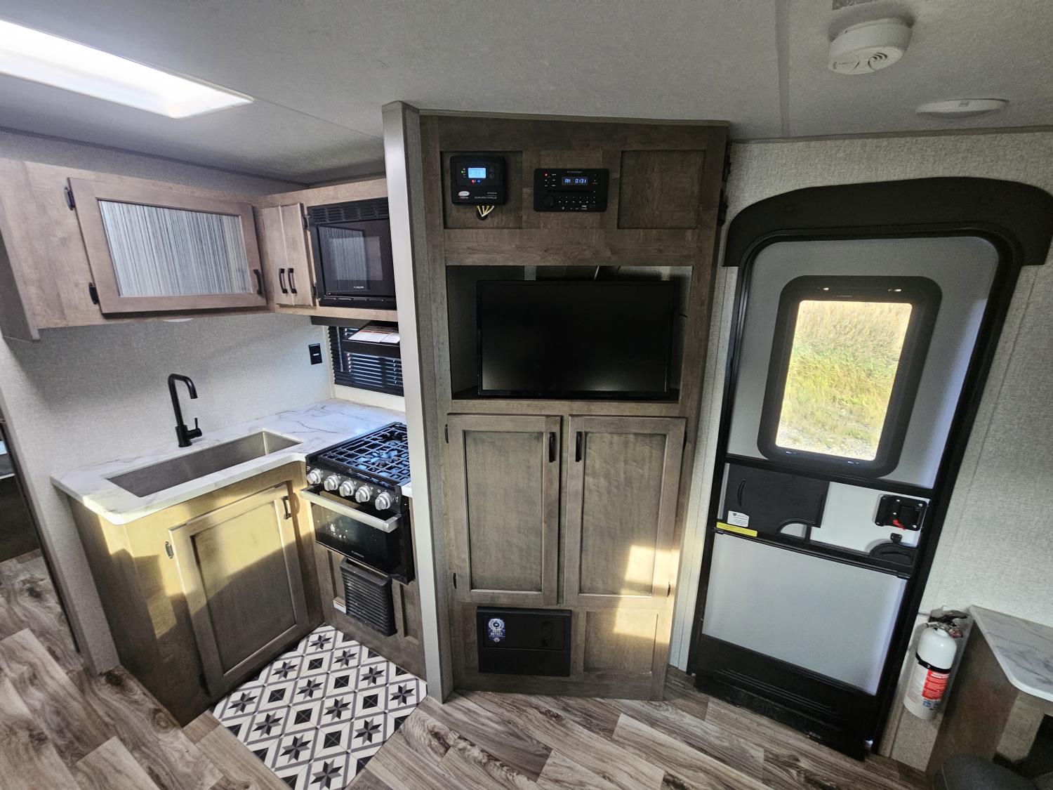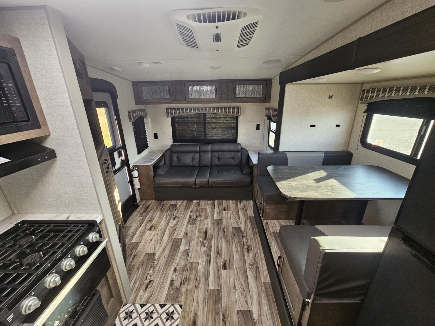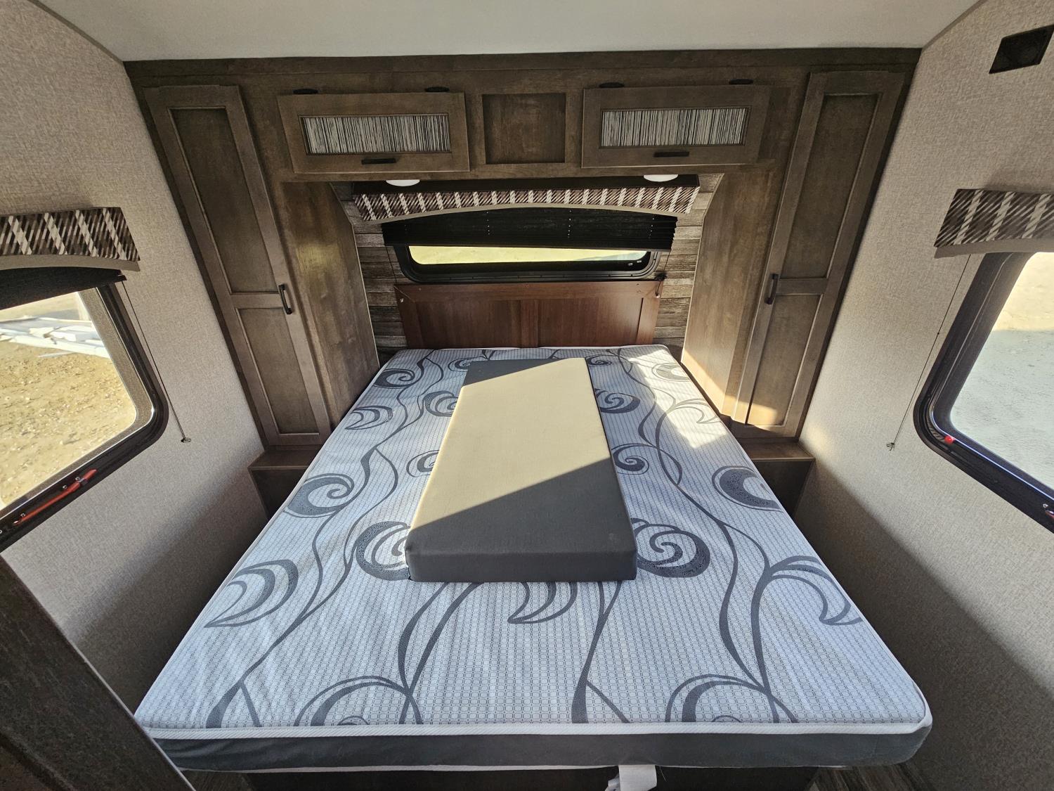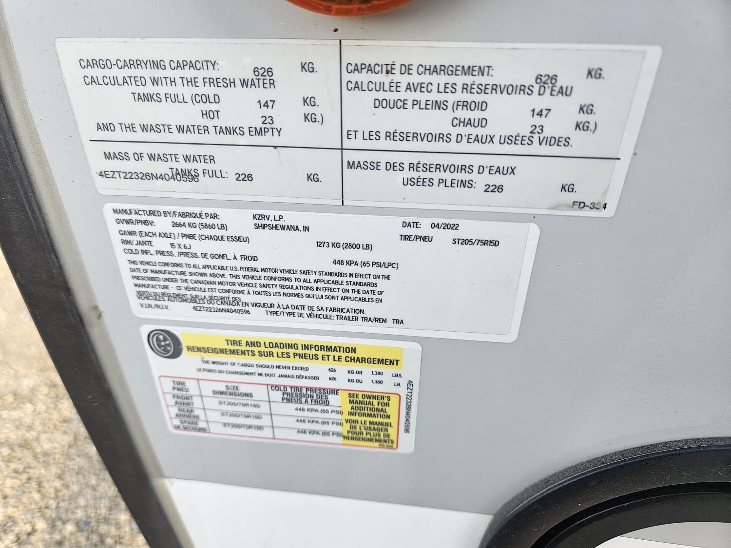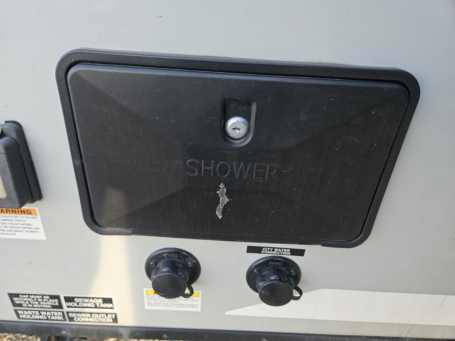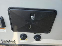 Sleeps 6, stove, fridge, microwave, full bath, master bedroom, A/C, outdoor shower, 1 slide, power awning, spring suspension, 205/75R15 tires
