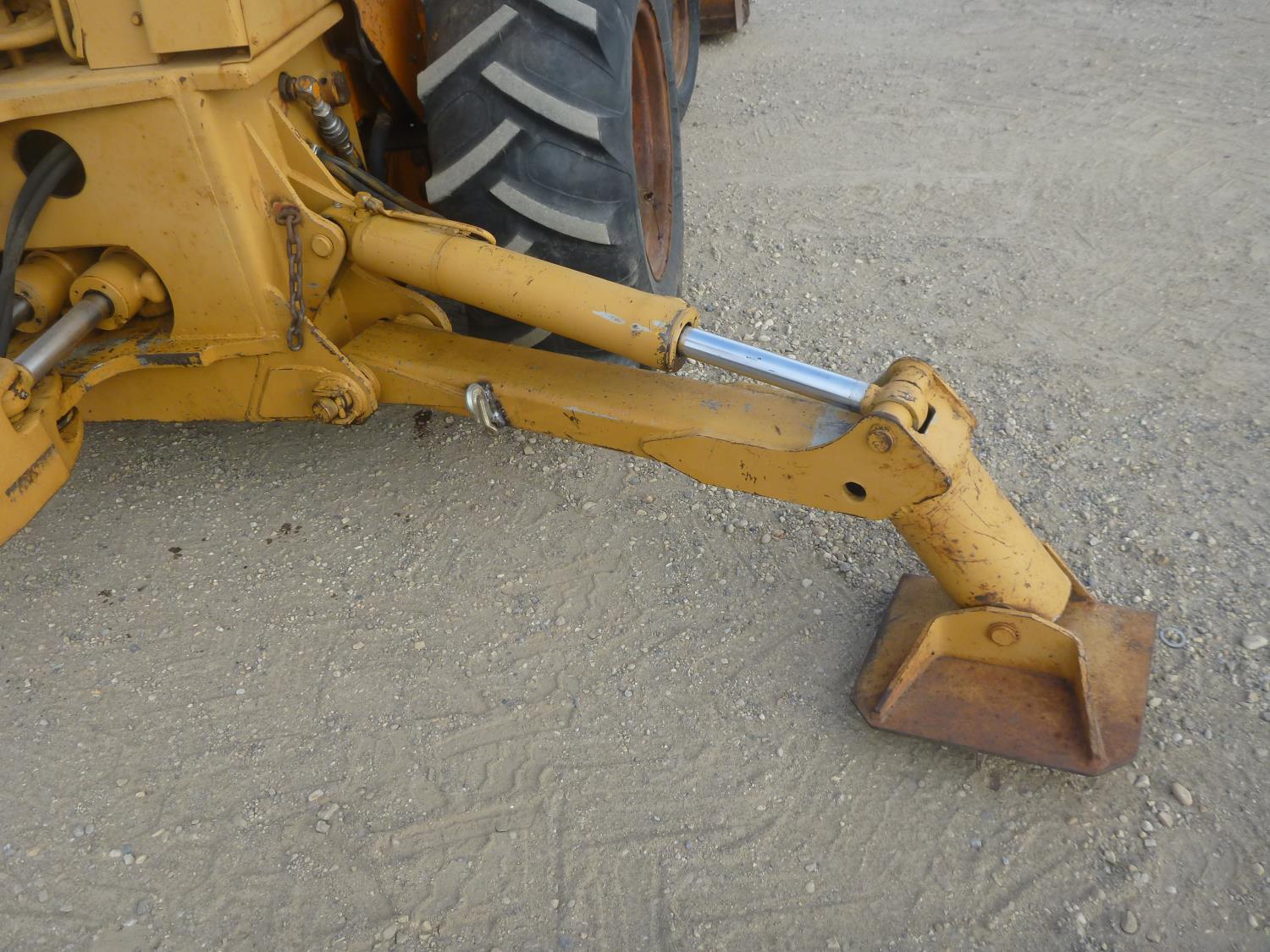 Enclosed cab, 80 inch smooth loader bucket, 24 inch dig backhoe bucket, stick, outriggers, (Has power train issues, will drive forward then stops), 11L-16 front tires, 14.9-24 rear tires