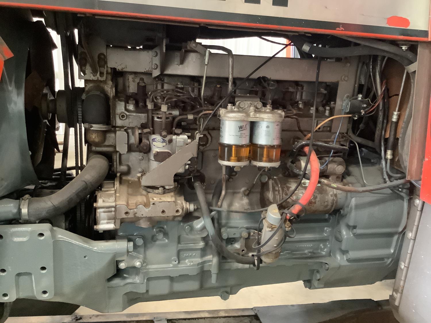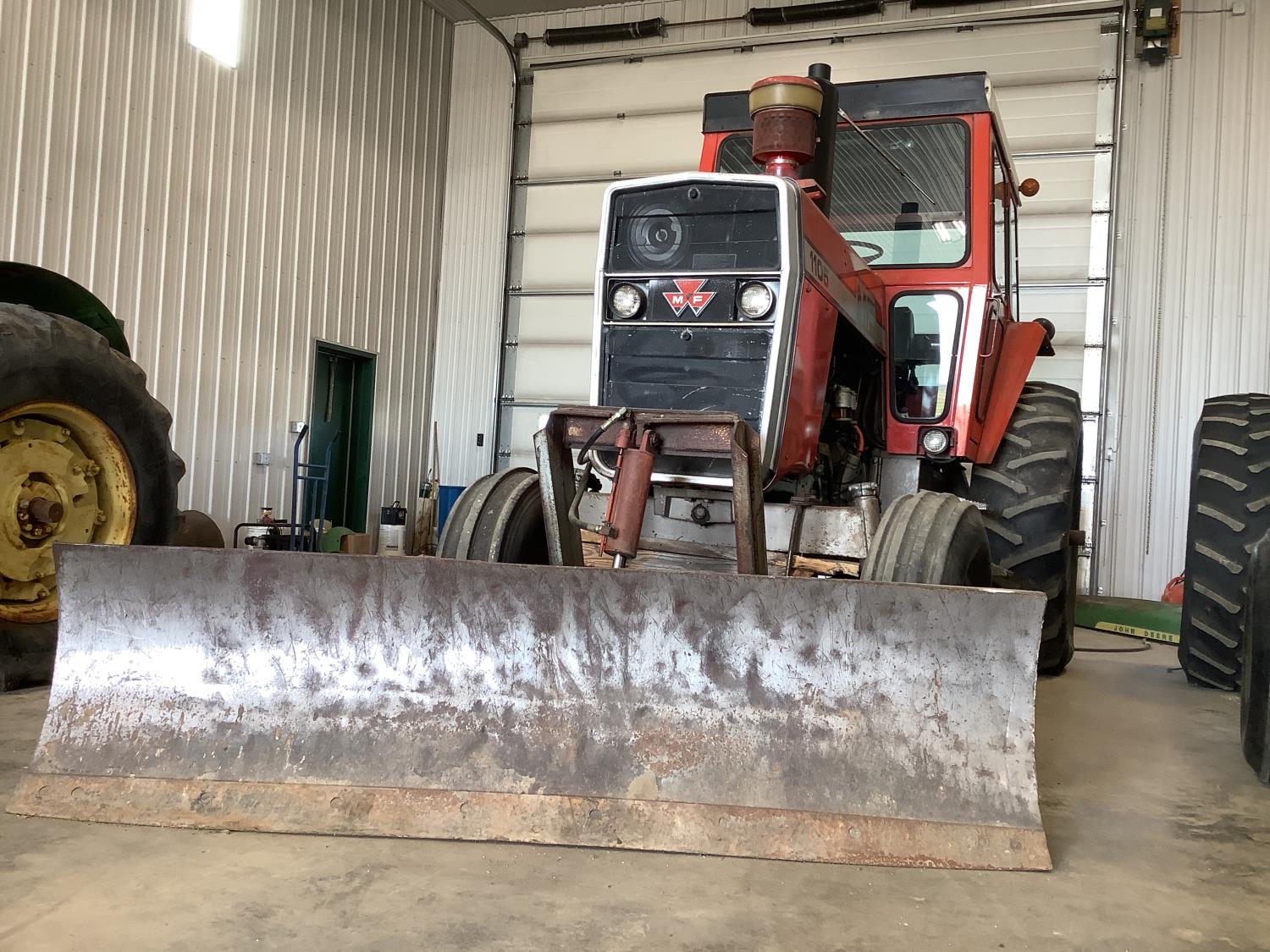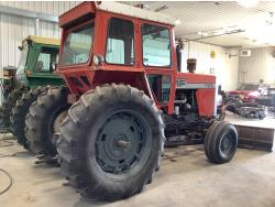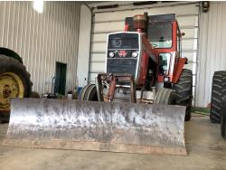 Perkins 354 5.8 6 cylinder engine, 111 PTO HP, 12 speed partial power shift transmission, new starter, cab, Leon dozer blade, 540/1000 PTO, 2 rear hydraulic outlets, rear wheel weights, 11.00-16 front tires, 18.4X38 rear tires