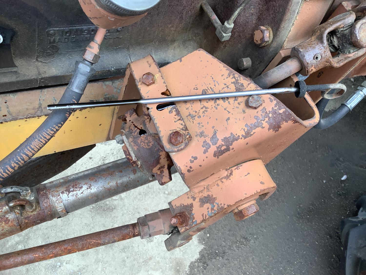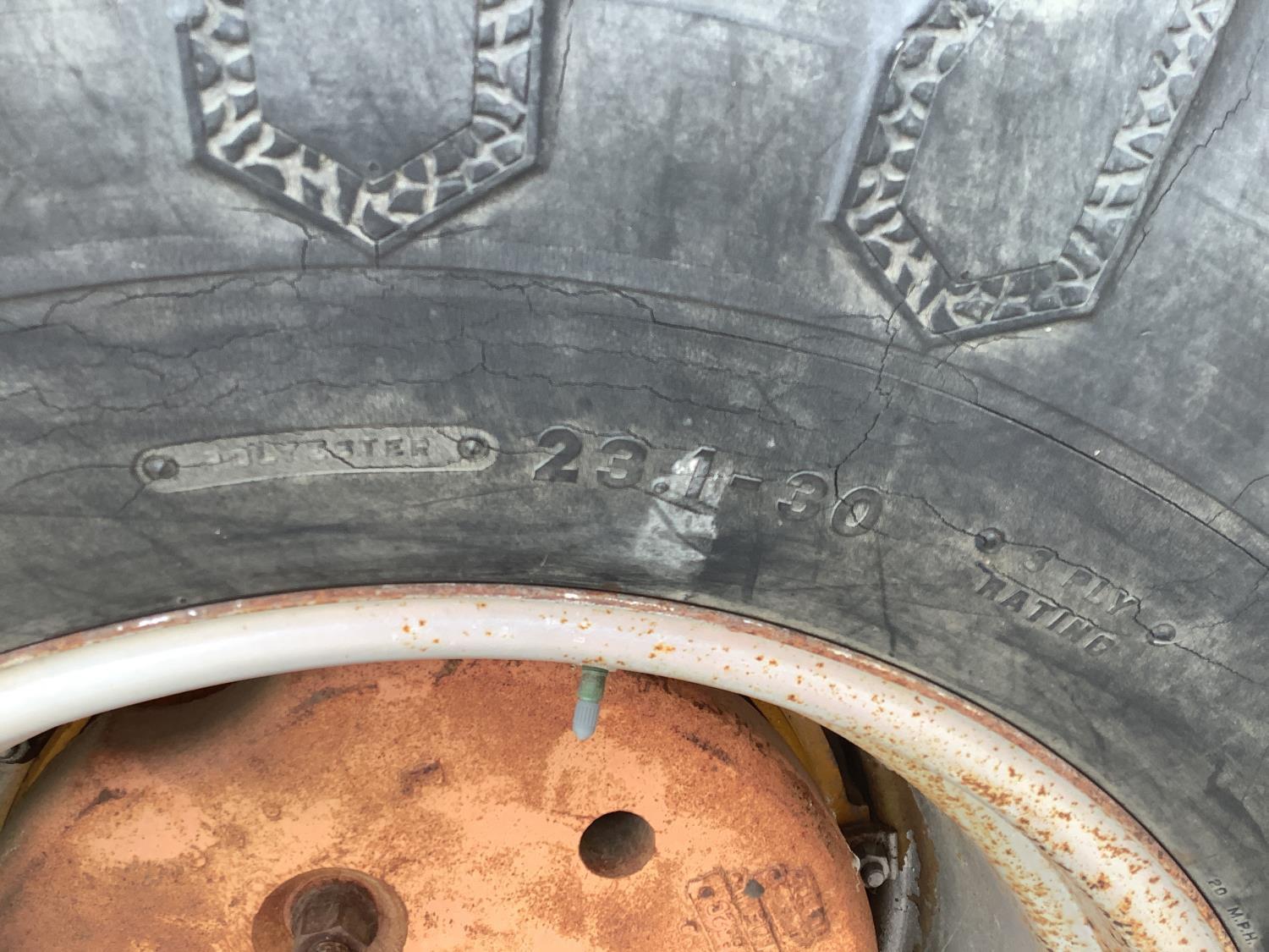 cab, 2 rear hydraulic outlets, 23.1X30 rear tires, engine oil is black