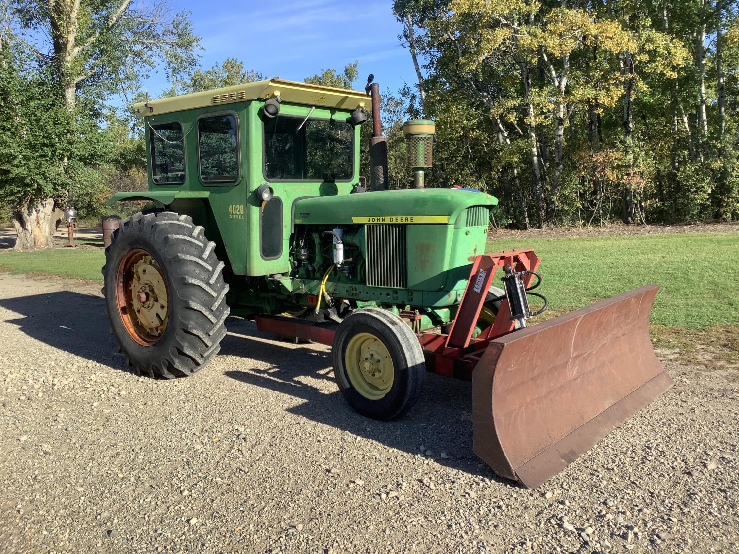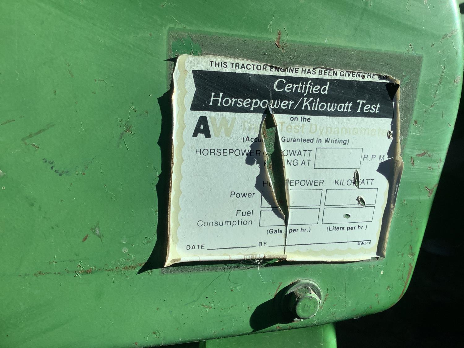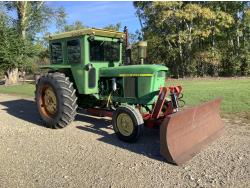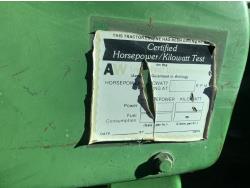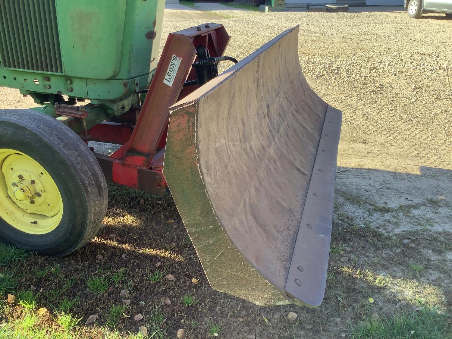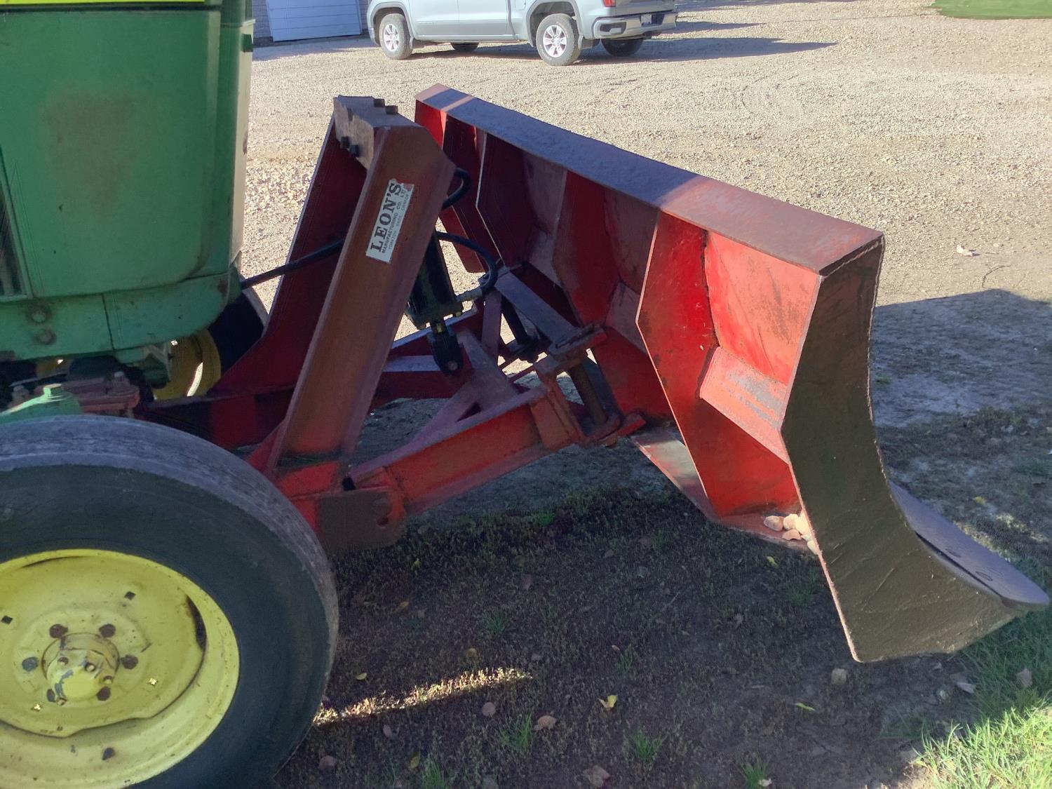 John Deere 6.6 L 6 cylinder engine, 95 PTO HP, 8 speed partial synchro transmission, block and oil pan heater, new engine and transmission oils, rear differential lock, factory cab, Leon dozer blade, 540/1000 PTO, 2 rear hydraulic outlets, rear wheel weights, 184X34 rear tires