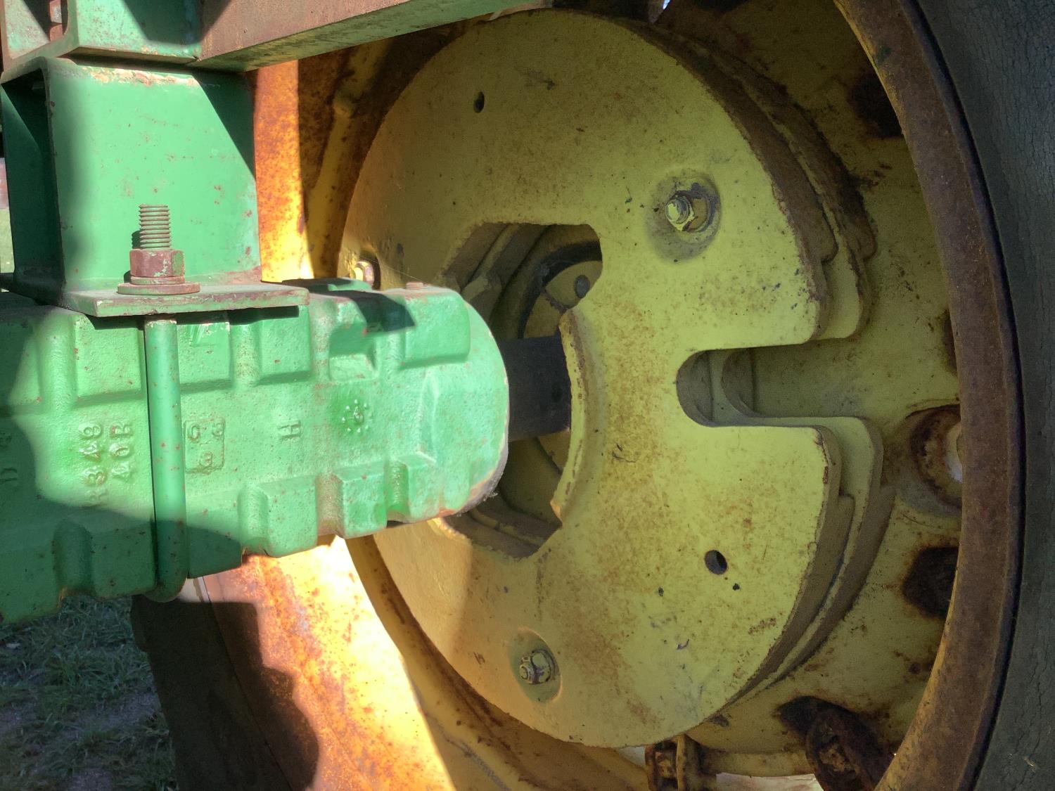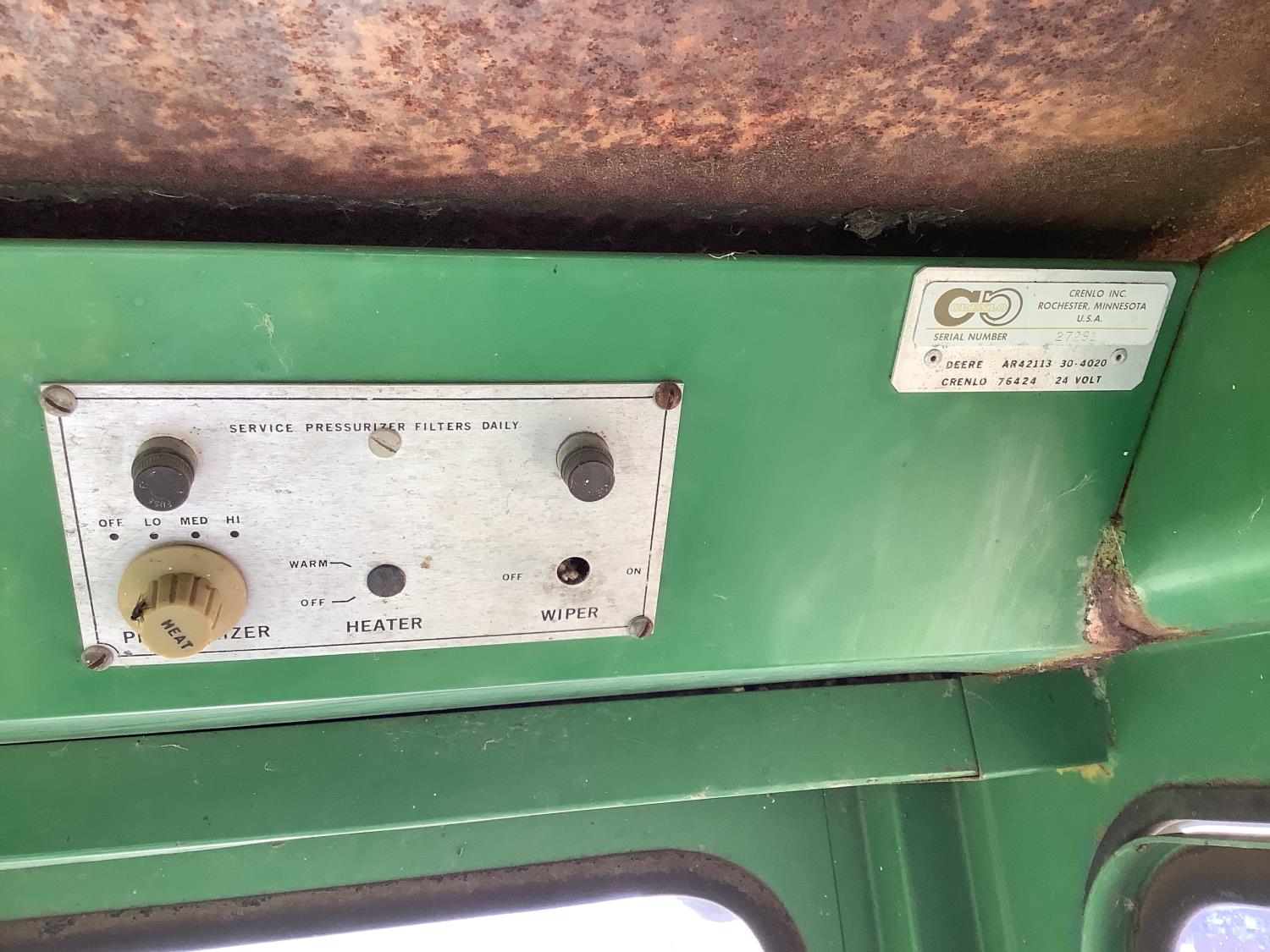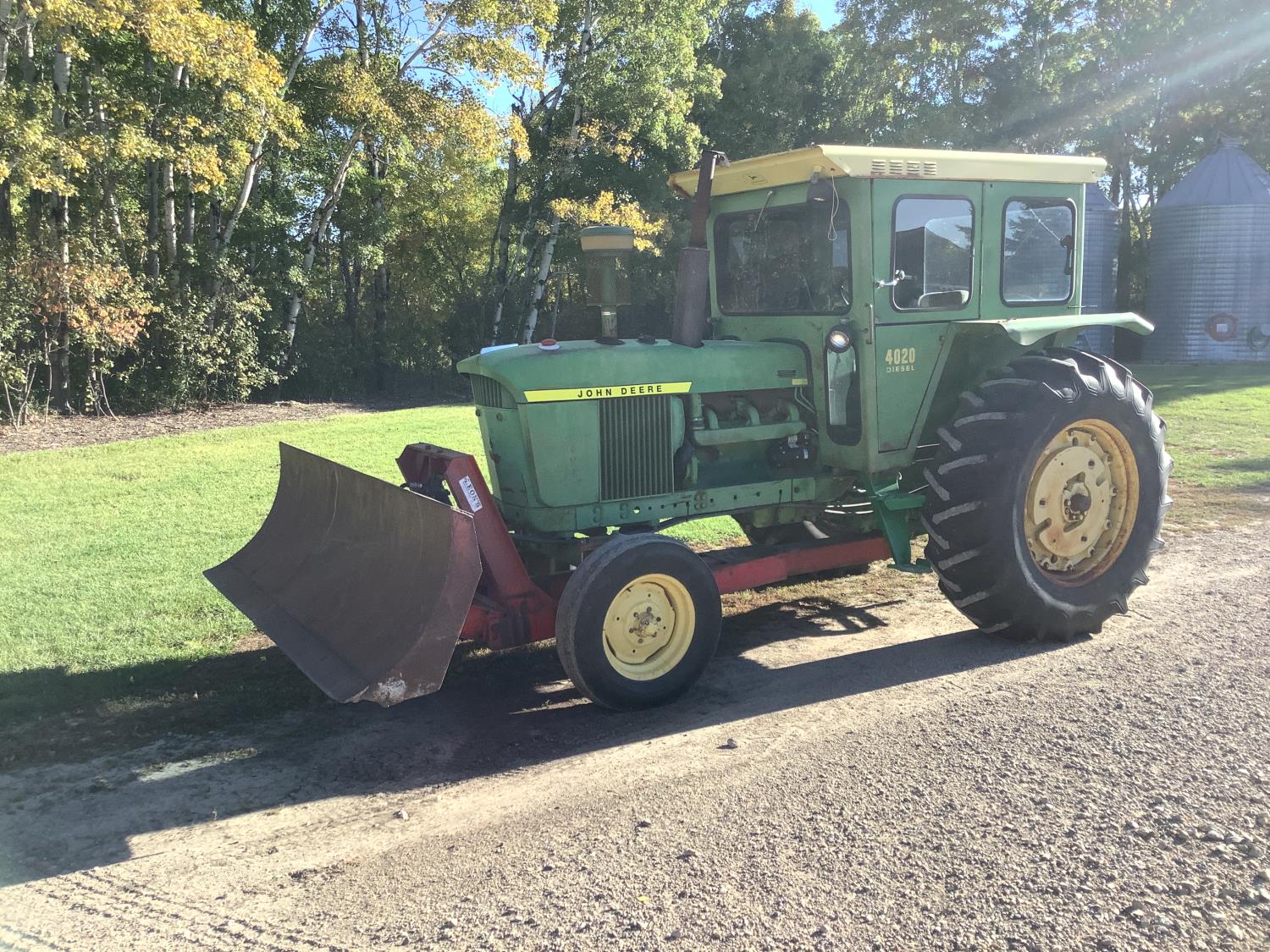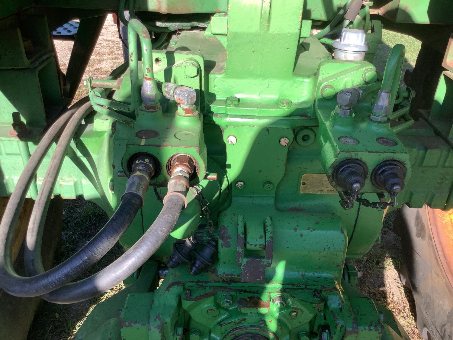 John Deere 6.6 L 6 cylinder engine, 95 PTO HP, 8 speed partial synchro transmission, block and oil pan heater, new engine and transmission oils, rear differential lock, factory cab, Leon dozer blade, 540/1000 PTO, 2 rear hydraulic outlets, rear wheel weights, 184X34 rear tires