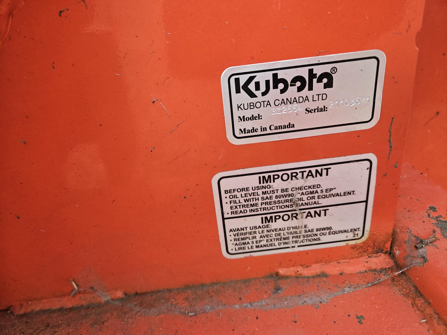 470 Kubota BL2664 3 Pth 64 Inch Snowblower