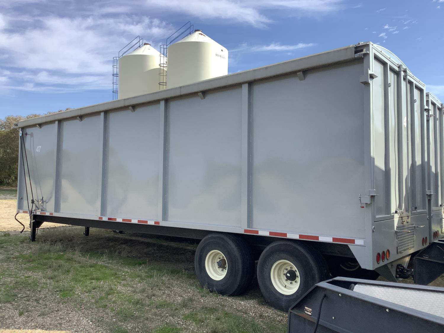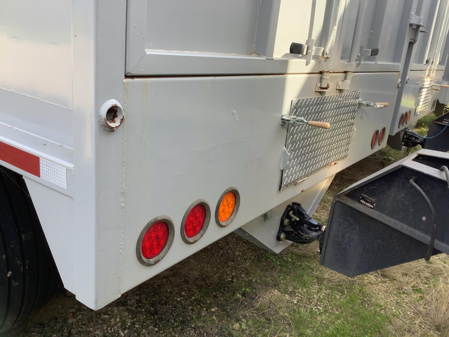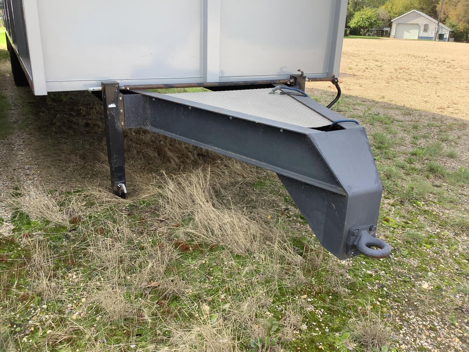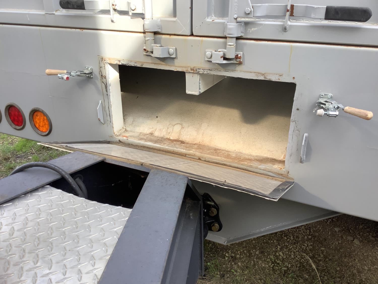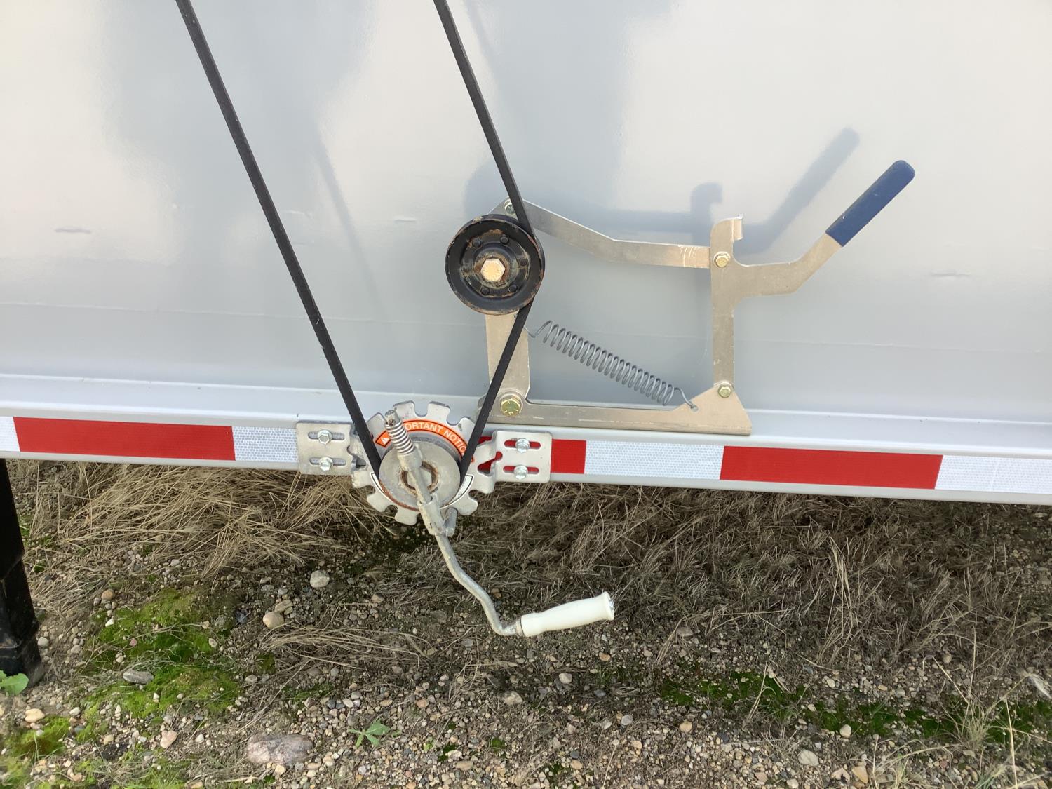 rear barn doors, 2 roll tarps one mesh the other sealed, perforated vented removable floor, rear hitch to pull tandem, 8 wide, set up at rear to hook up a aeration ran to push air up the floor to dry products, 16.5LX16.1 tires