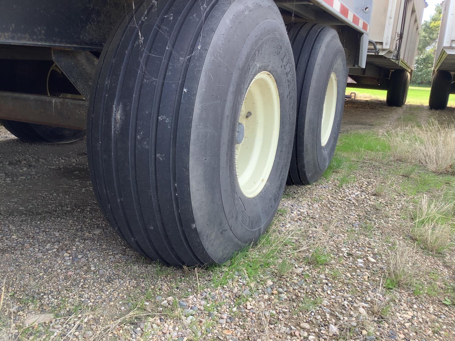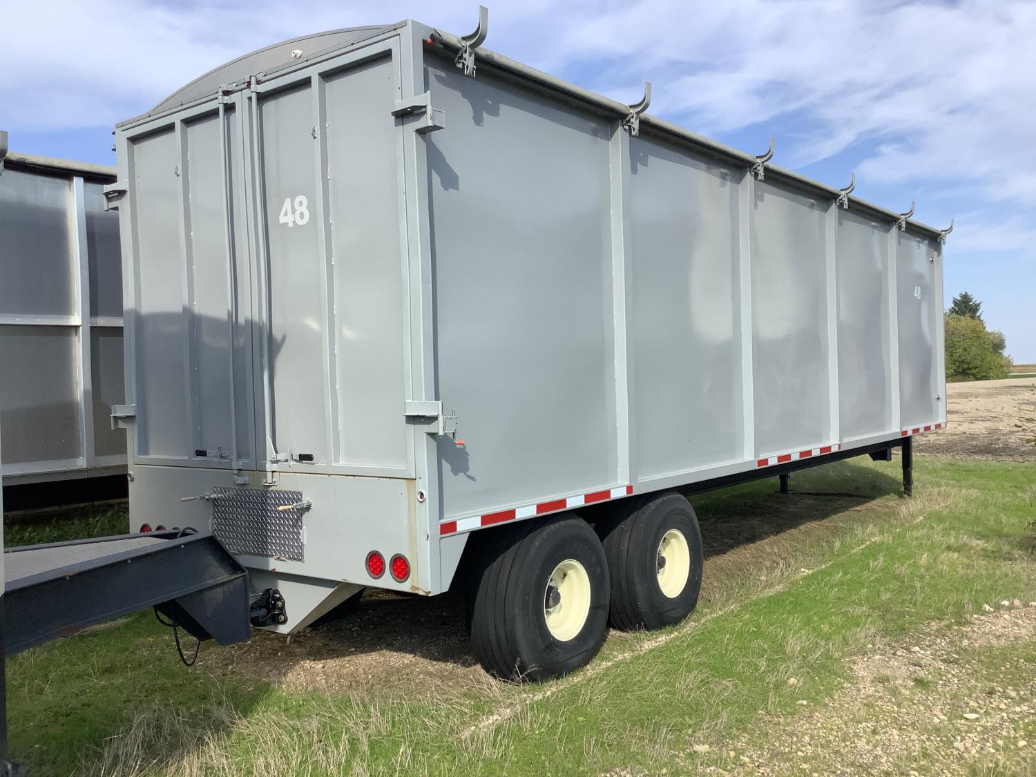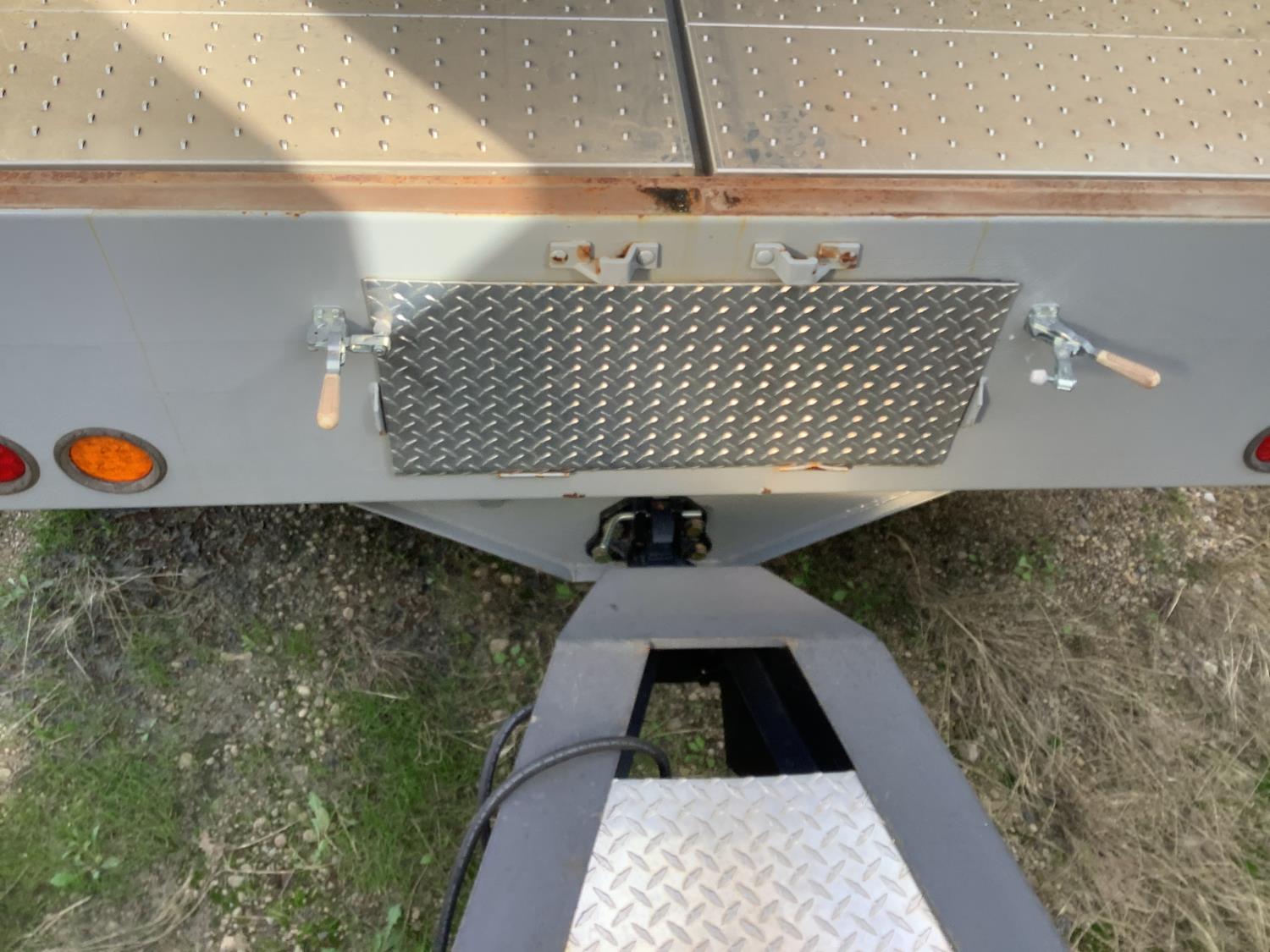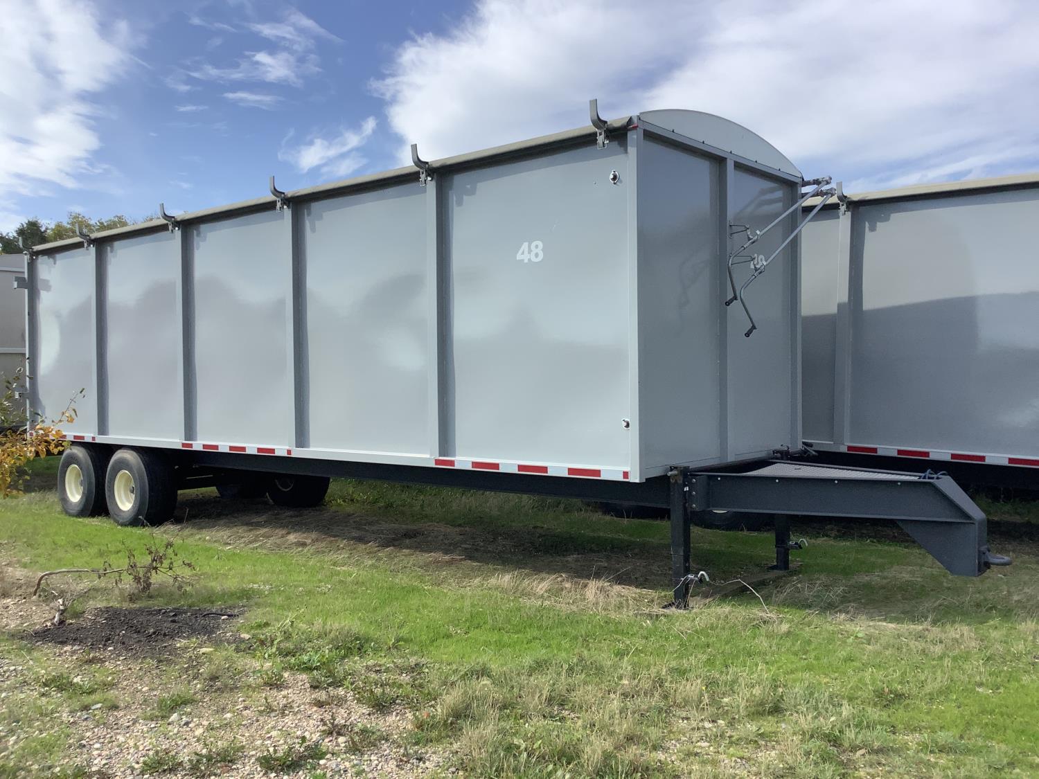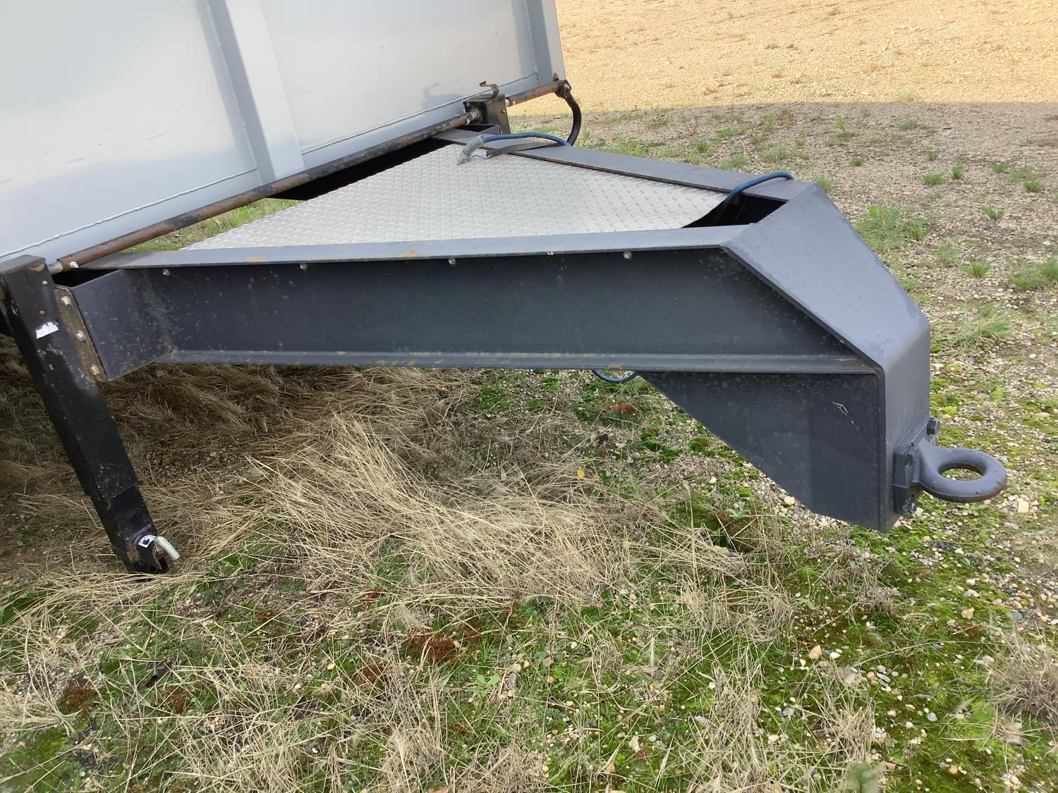 rear barn doors, 2 roll tarps one mesh the other sealed, perforated vented removable floor, rear hitch to pull tandem, 8 wide, set up at rear to hook up a aeration ran to push air up the floor to dry products, 16.5LX16.1 tires