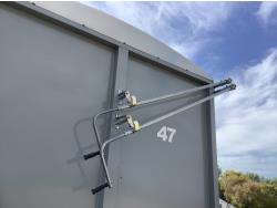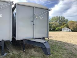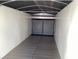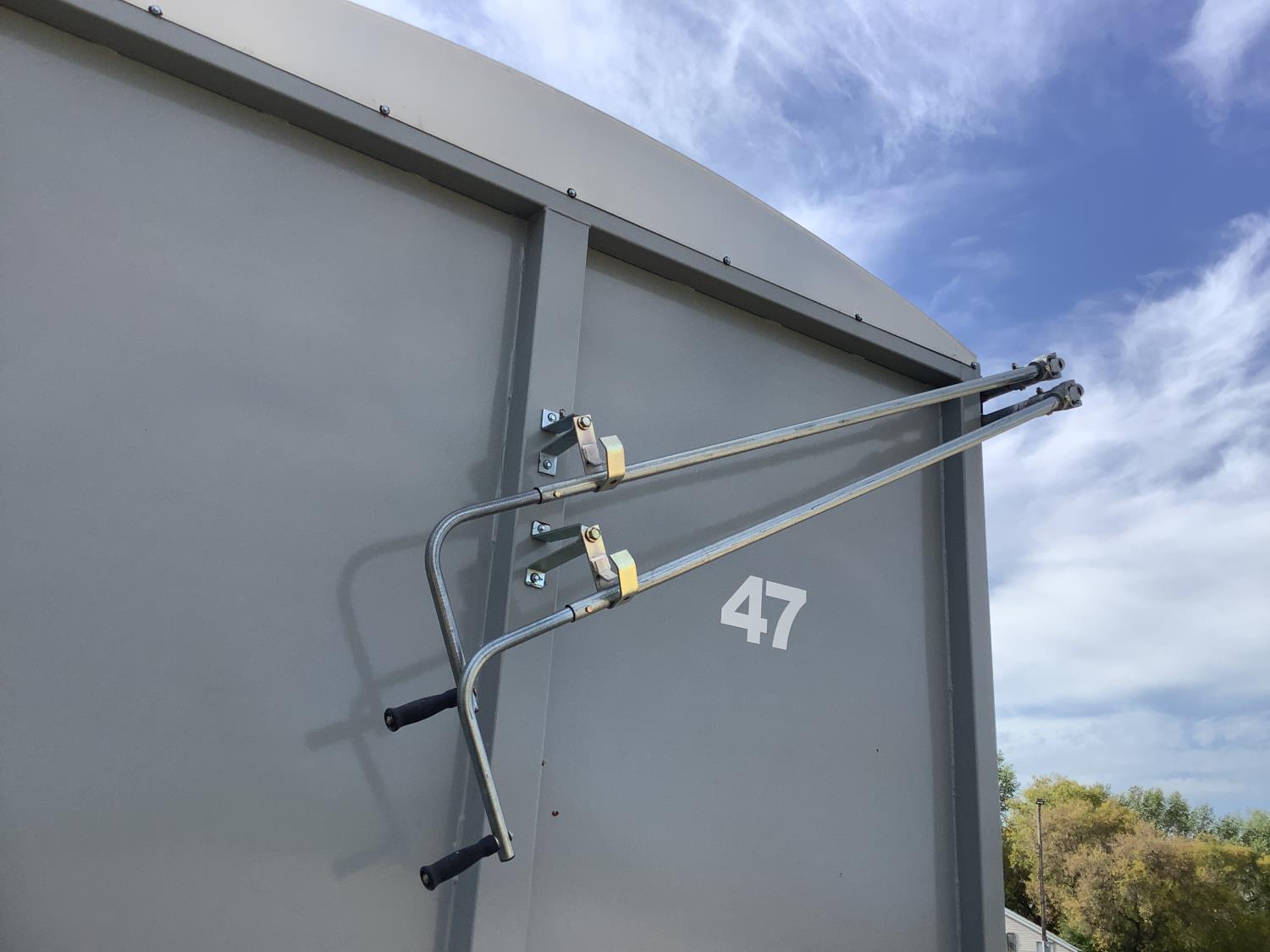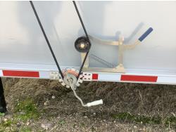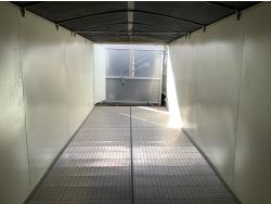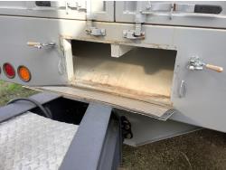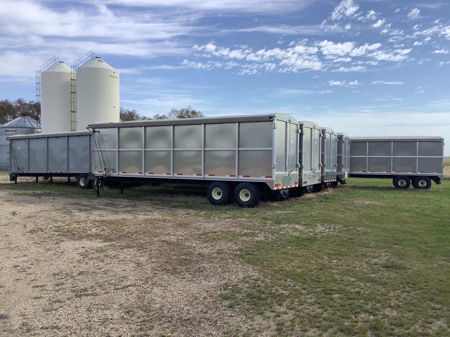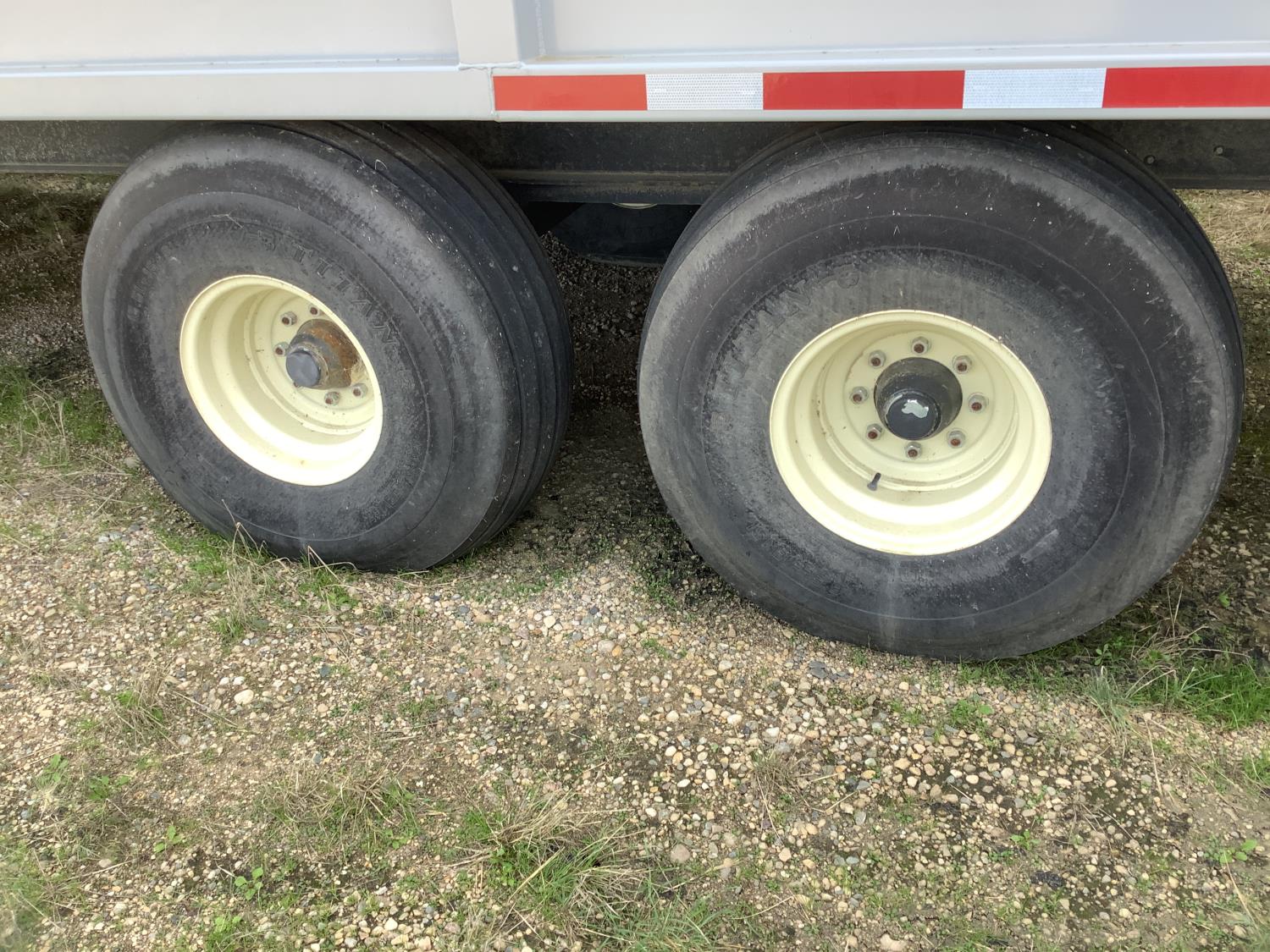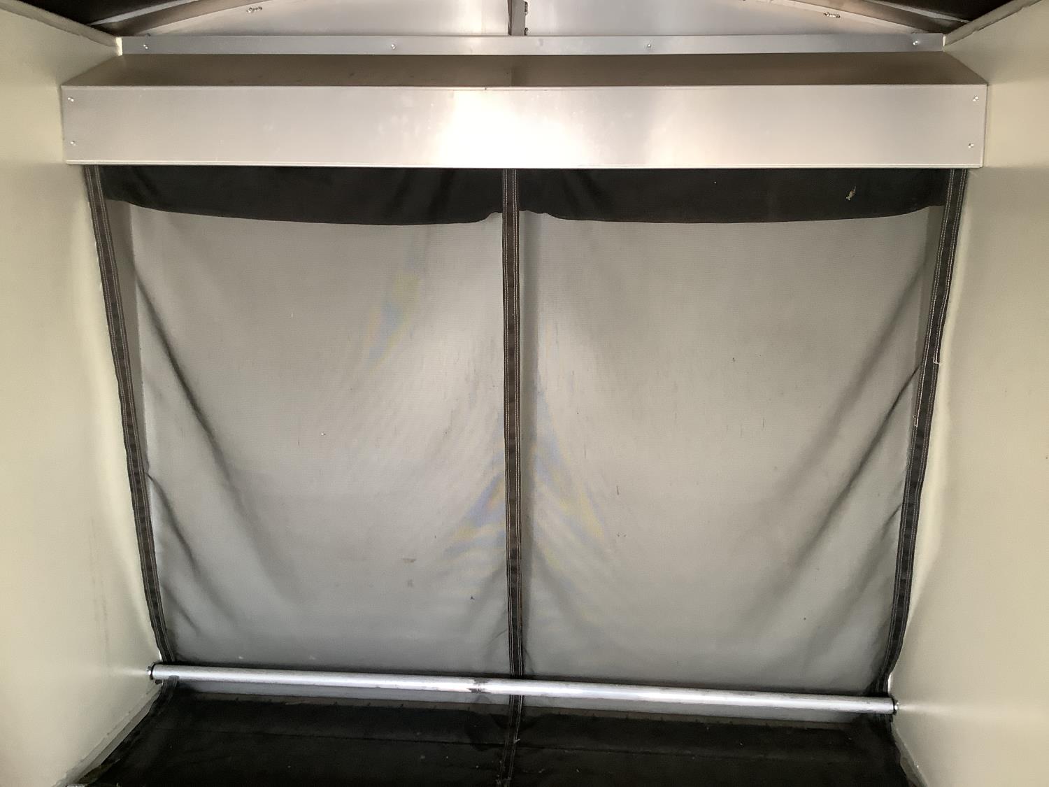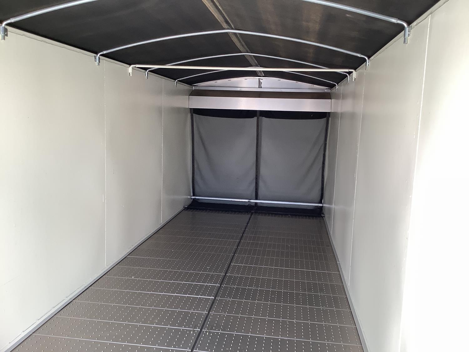 rear barn doors, 2 roll tarps one mesh the other sealed, perforated vented removable floor, rear hitch to pull tandem, 8 wide, set up at rear to hook up a aeration ran to push air up the floor to dry products, 16.5LX16.1 tires