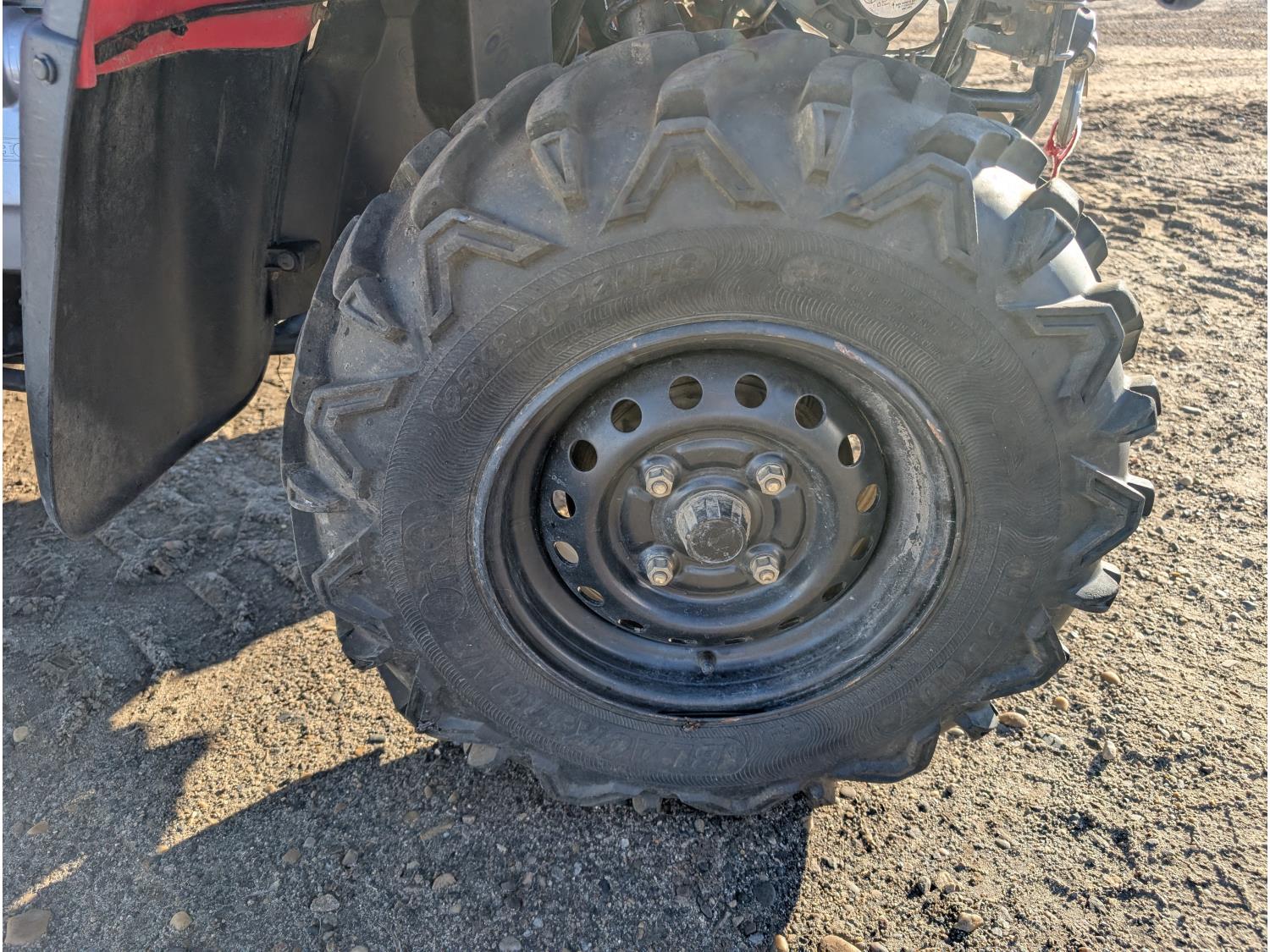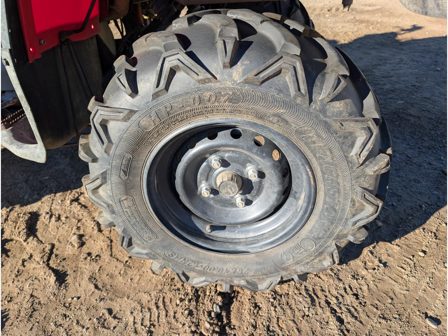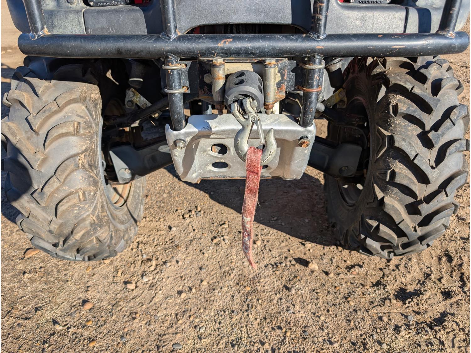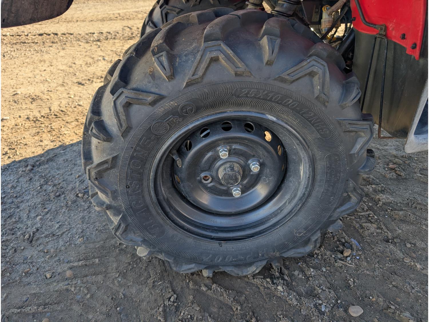 433 cc engine, manual transmission, reverse, hitch, front and rear racks, front winch, 25X8.00-12 front tires, 25X10.00-12 rear tires