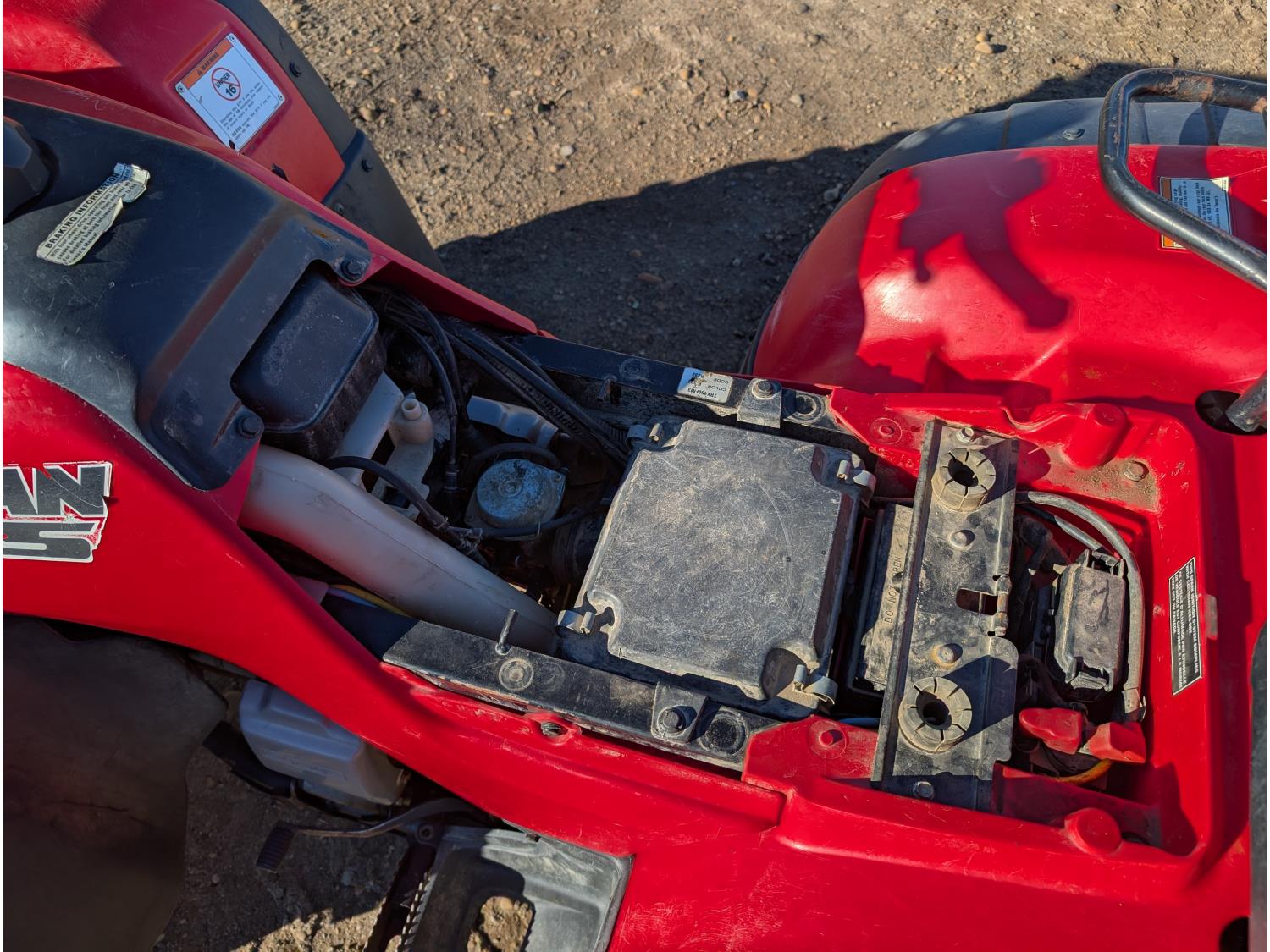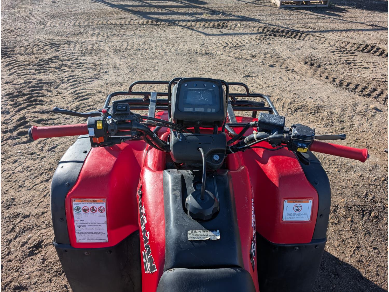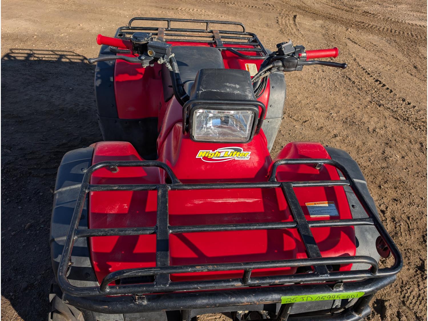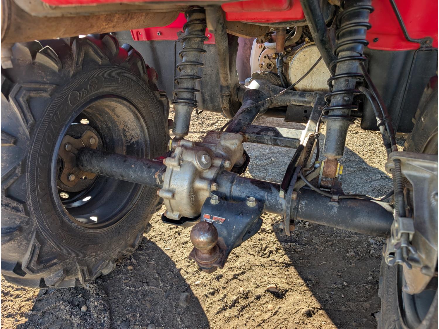 433 cc engine, manual transmission, reverse, hitch, front and rear racks, front winch, 25X8.00-12 front tires, 25X10.00-12 rear tires