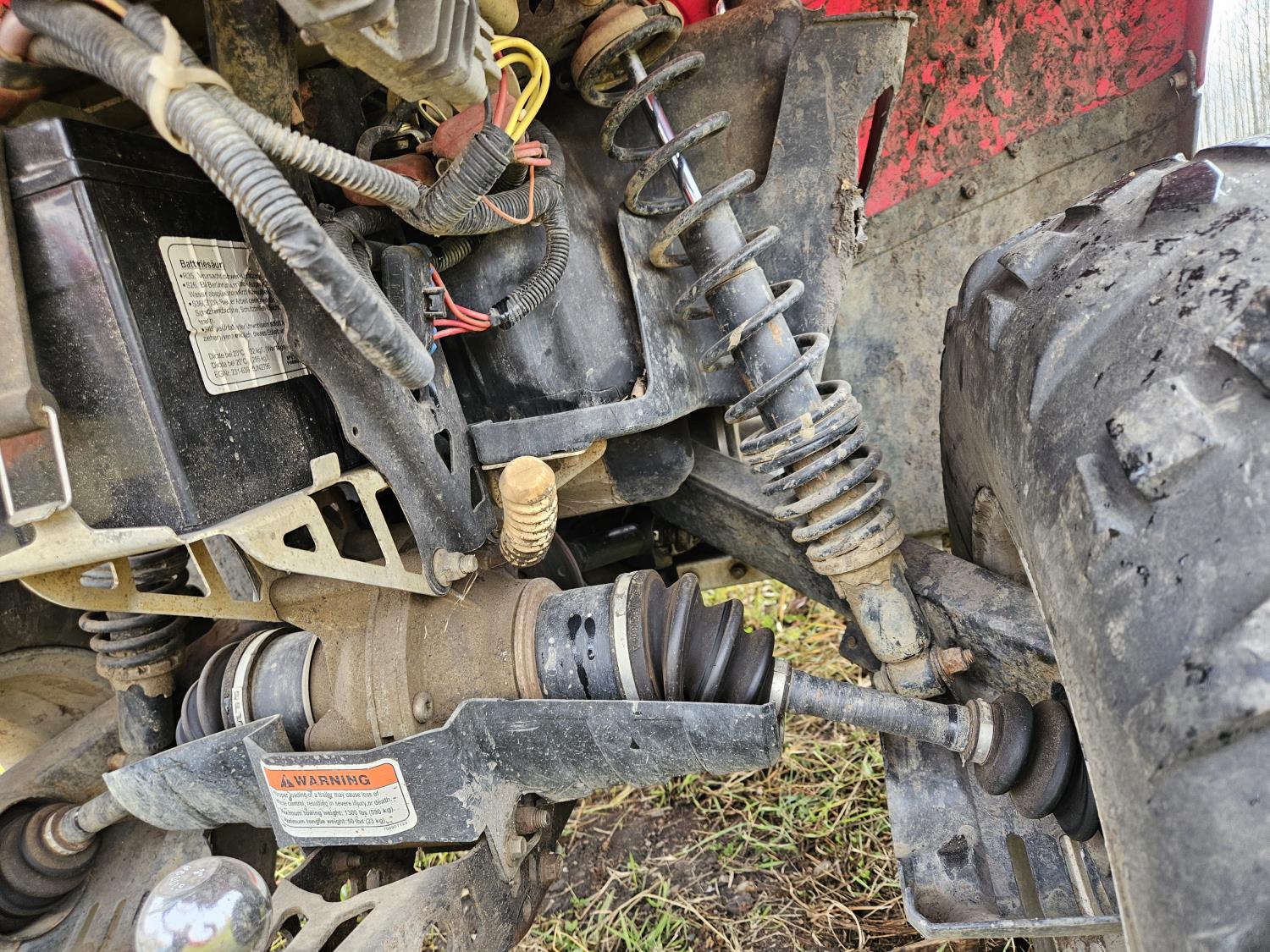 649 cc engine, automatic transmission, Hi/Lo range, reverse, hitch, front and rear racks, front winch, 25X8.00-12 front tires, 25X10.00-12 rear tires