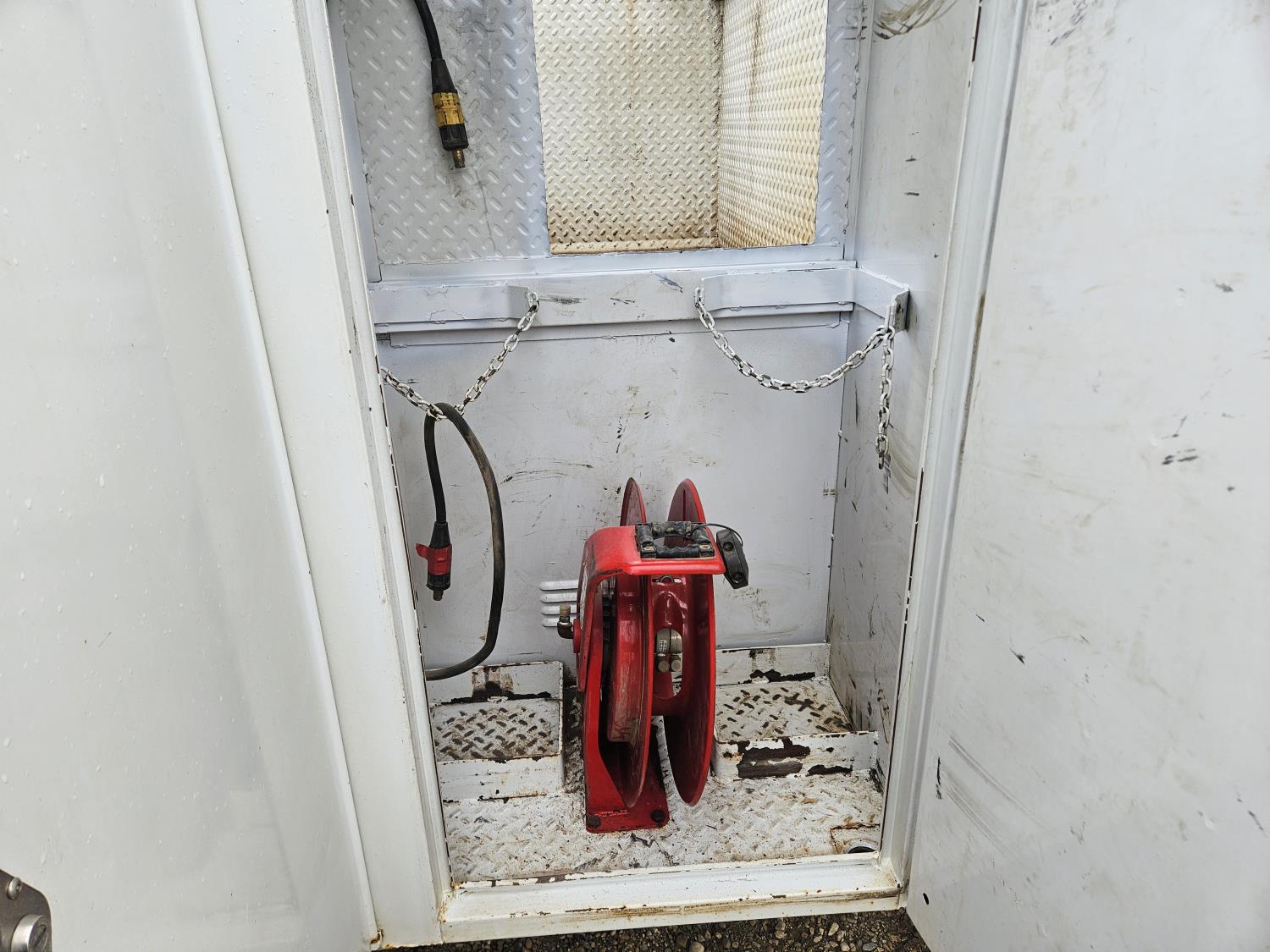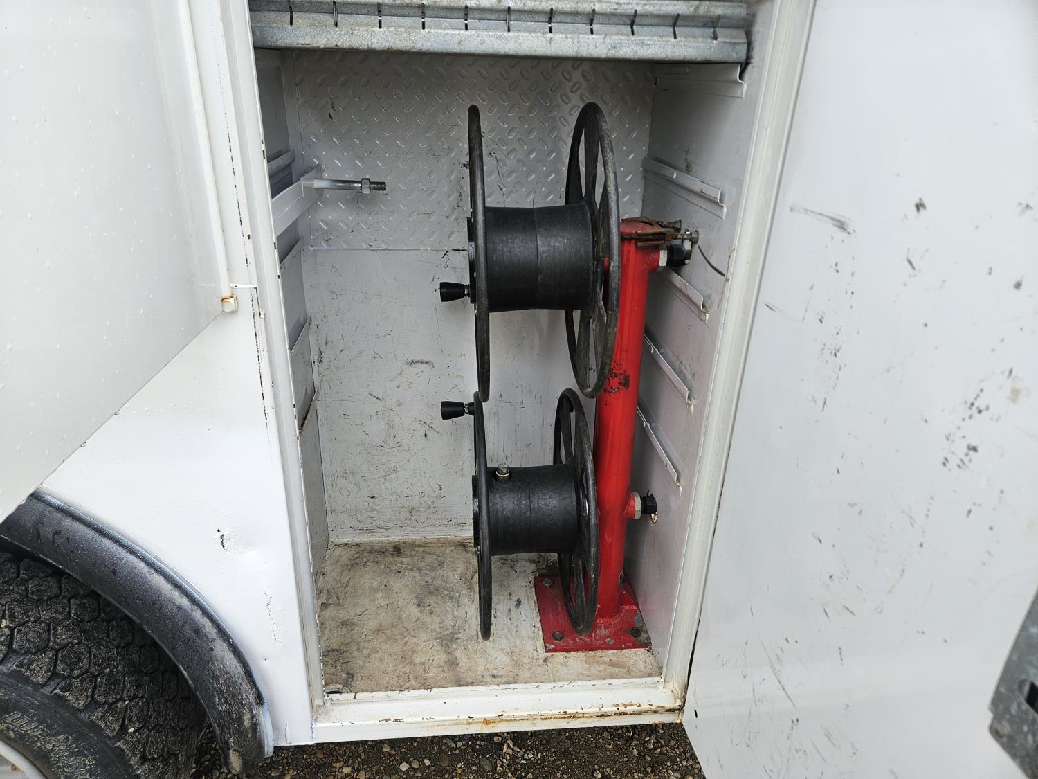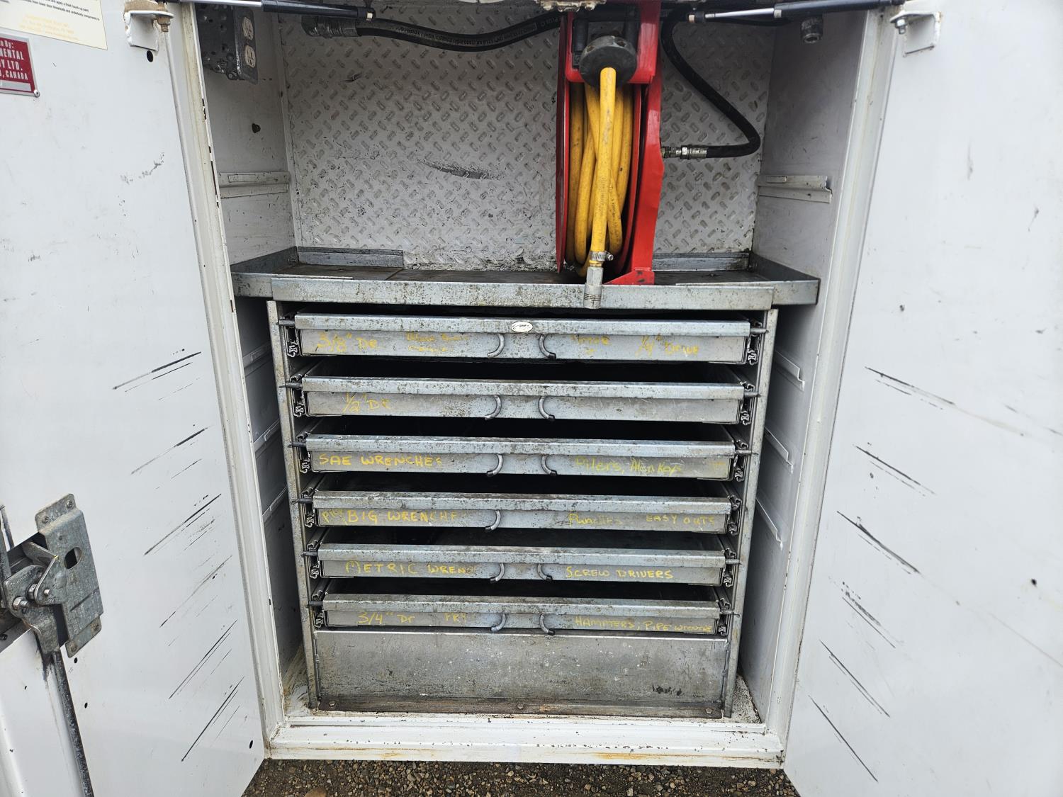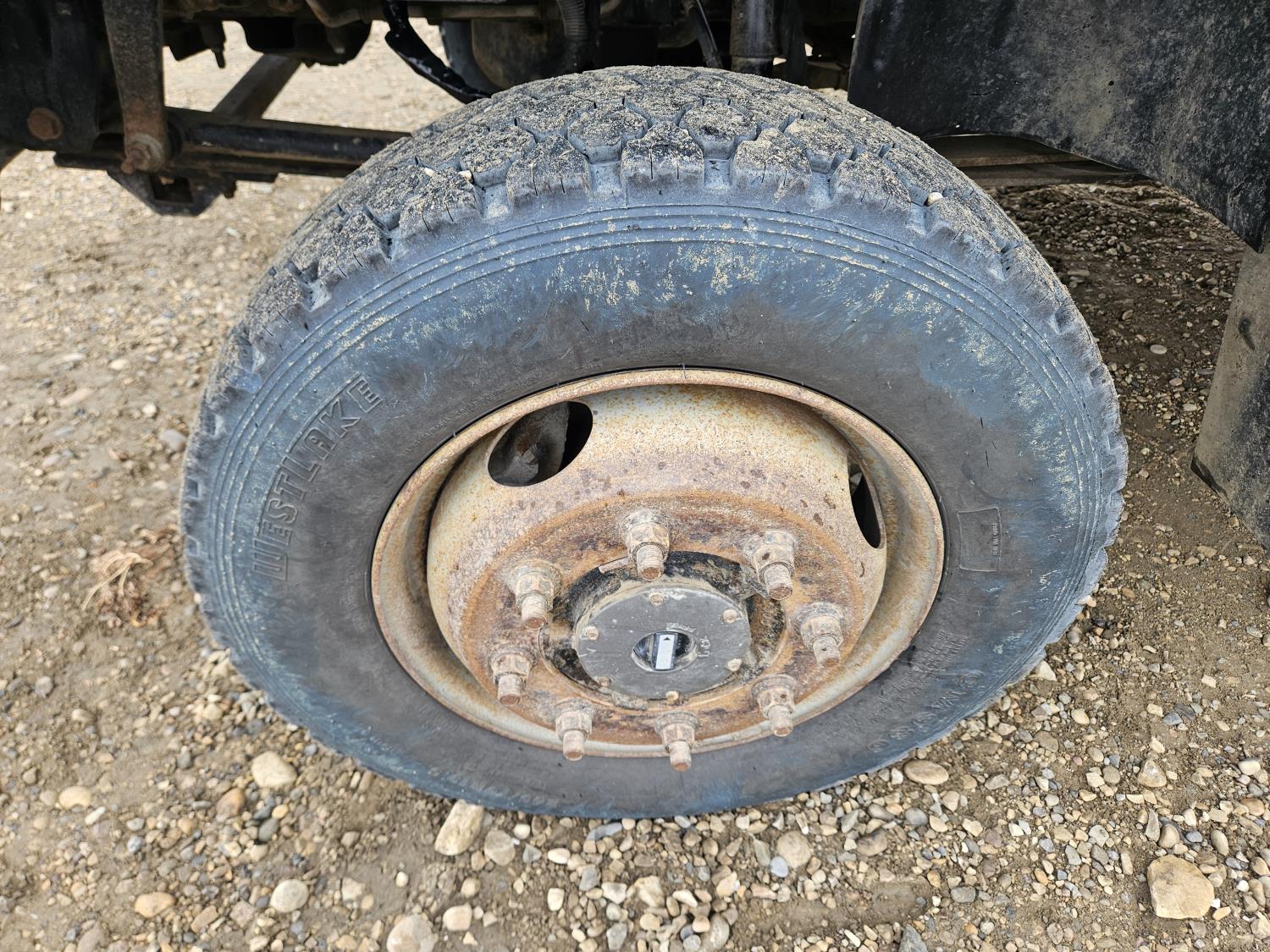 Duramax 6.6 L V8 diesel engine, engine brake, automatic transmission, A/C, P/W, P/L, cruise control, radio, steel tool boxes, beacons, Auto Crane 5005EH 2 section 20 ft straight boom crane, spring suspension, 8,000 lb front axle, 13,500 lb rear axles, 245/70R19.5 tires