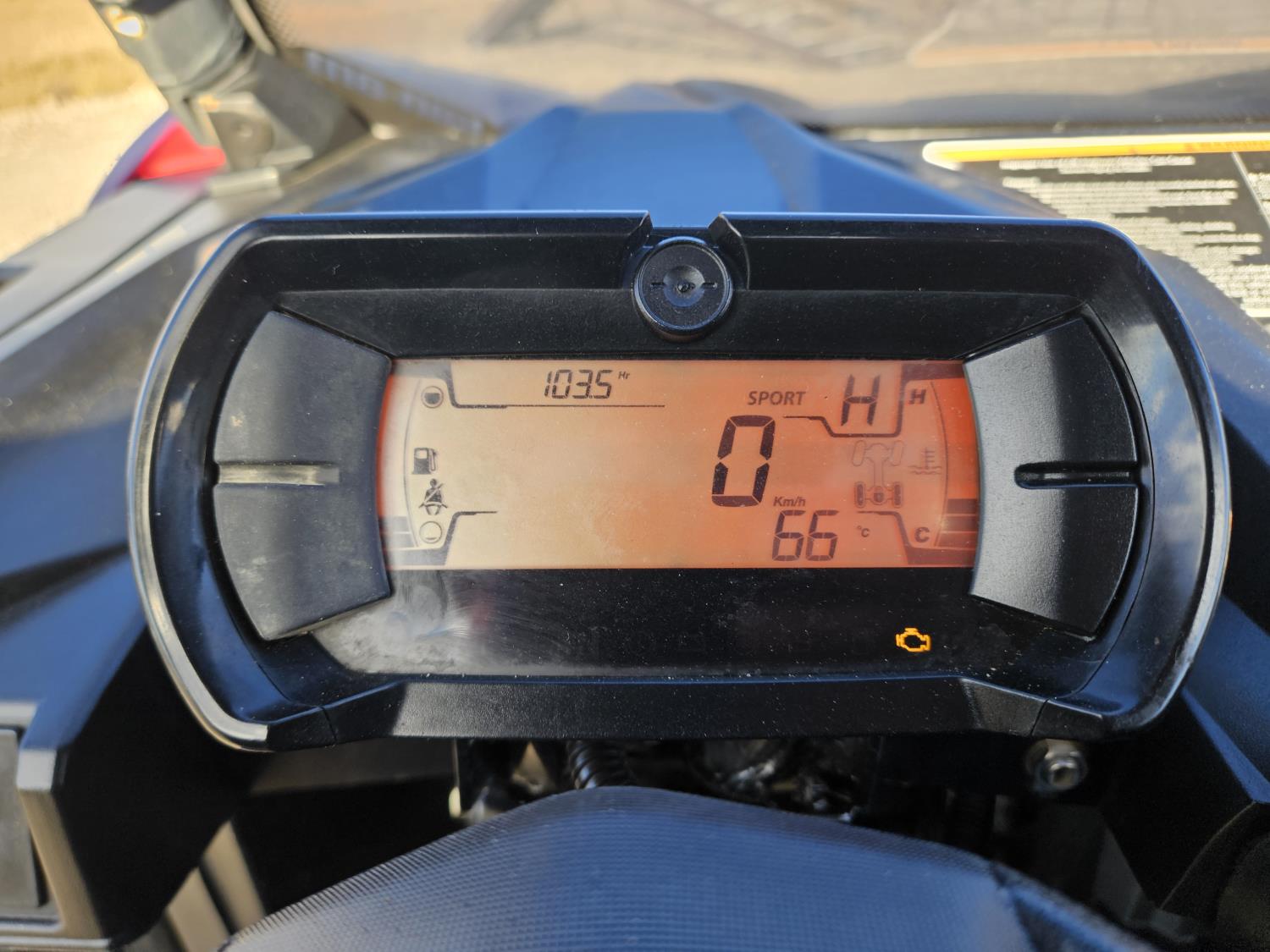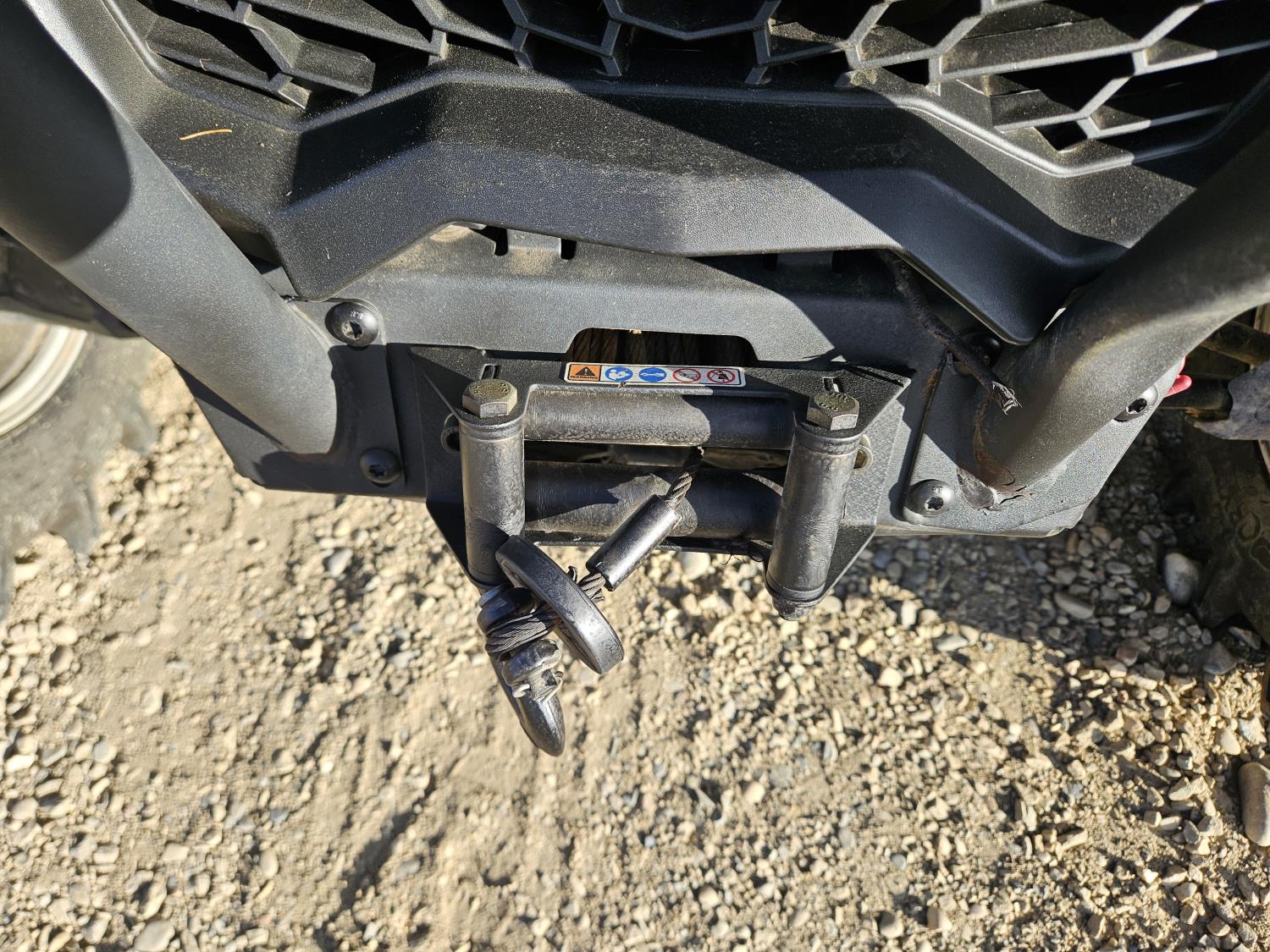 1000 cc fuel injected water cooled engine, automatic transmission, Hi/Lo range, reverse, open canopy, 2 passengers, front winch, receiver hitch, independent suspension, check engine light on, aluminum wheels, 30X9.00-14 front tires, 30X11.00-14 rear tires