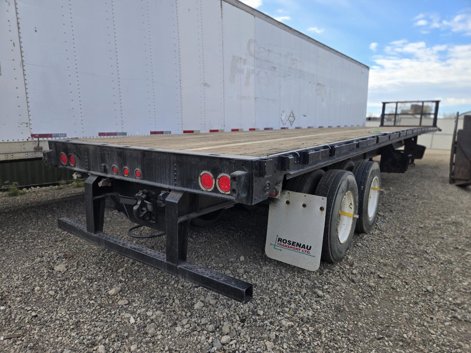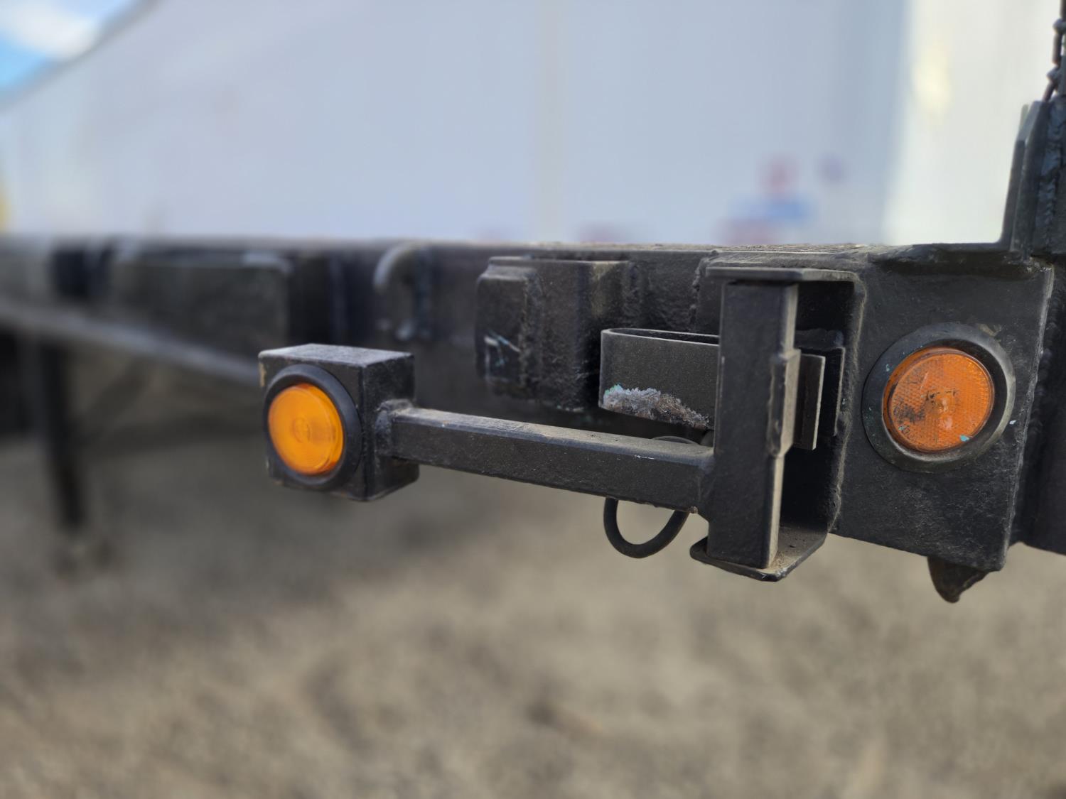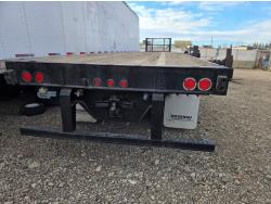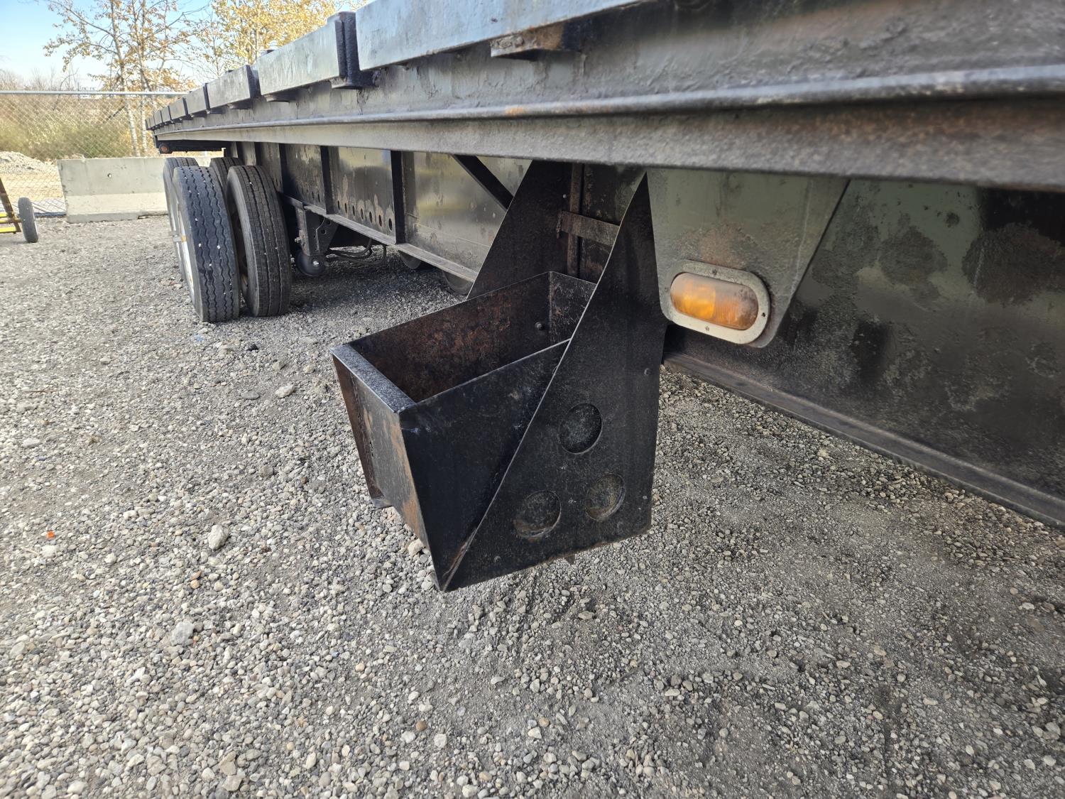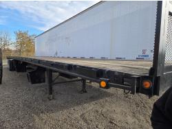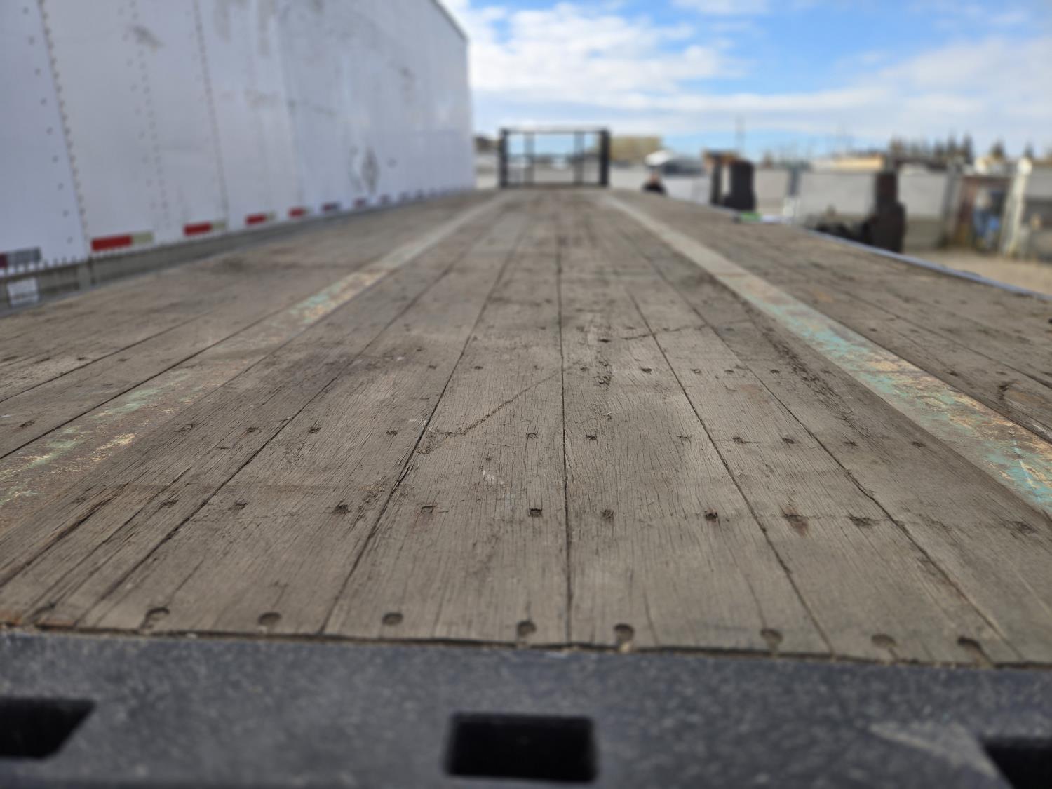 97 inch wide deck, wood deck, stake pockets, cargo winches, tool / storage box, rear pintail hitch, folding wide wide load lights, head rack, air ride suspension, 11R22.5 tires