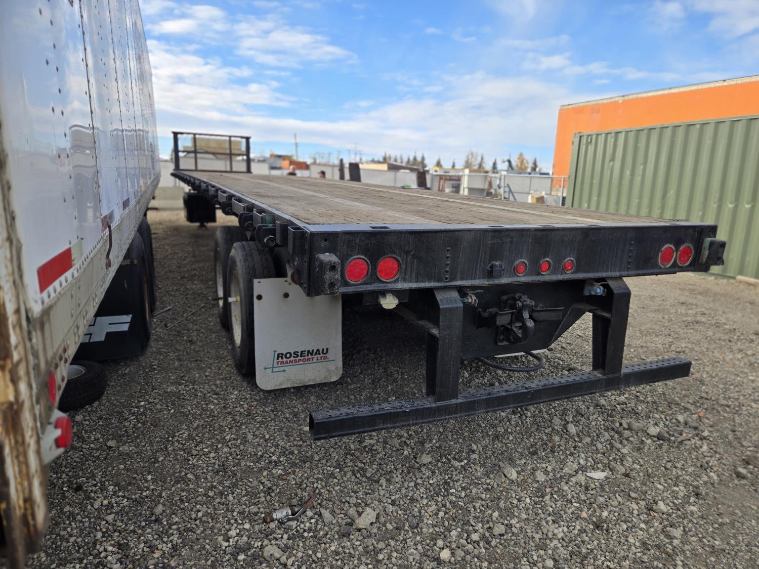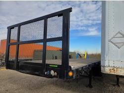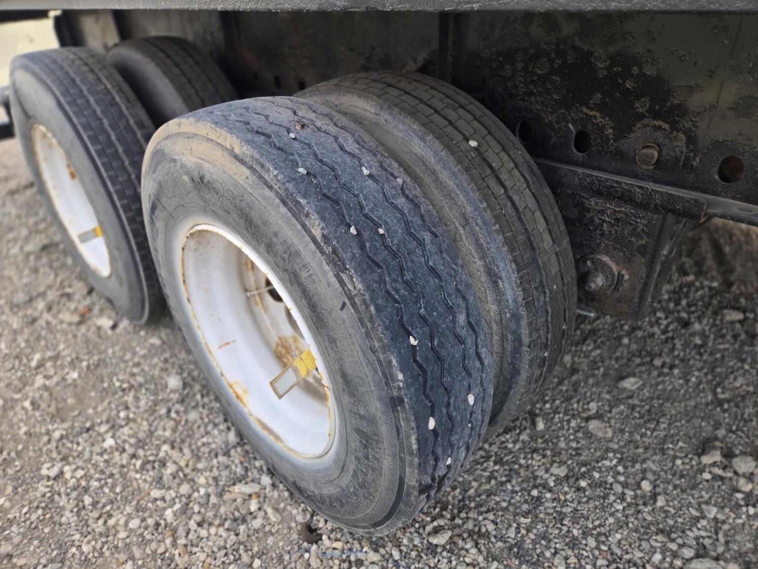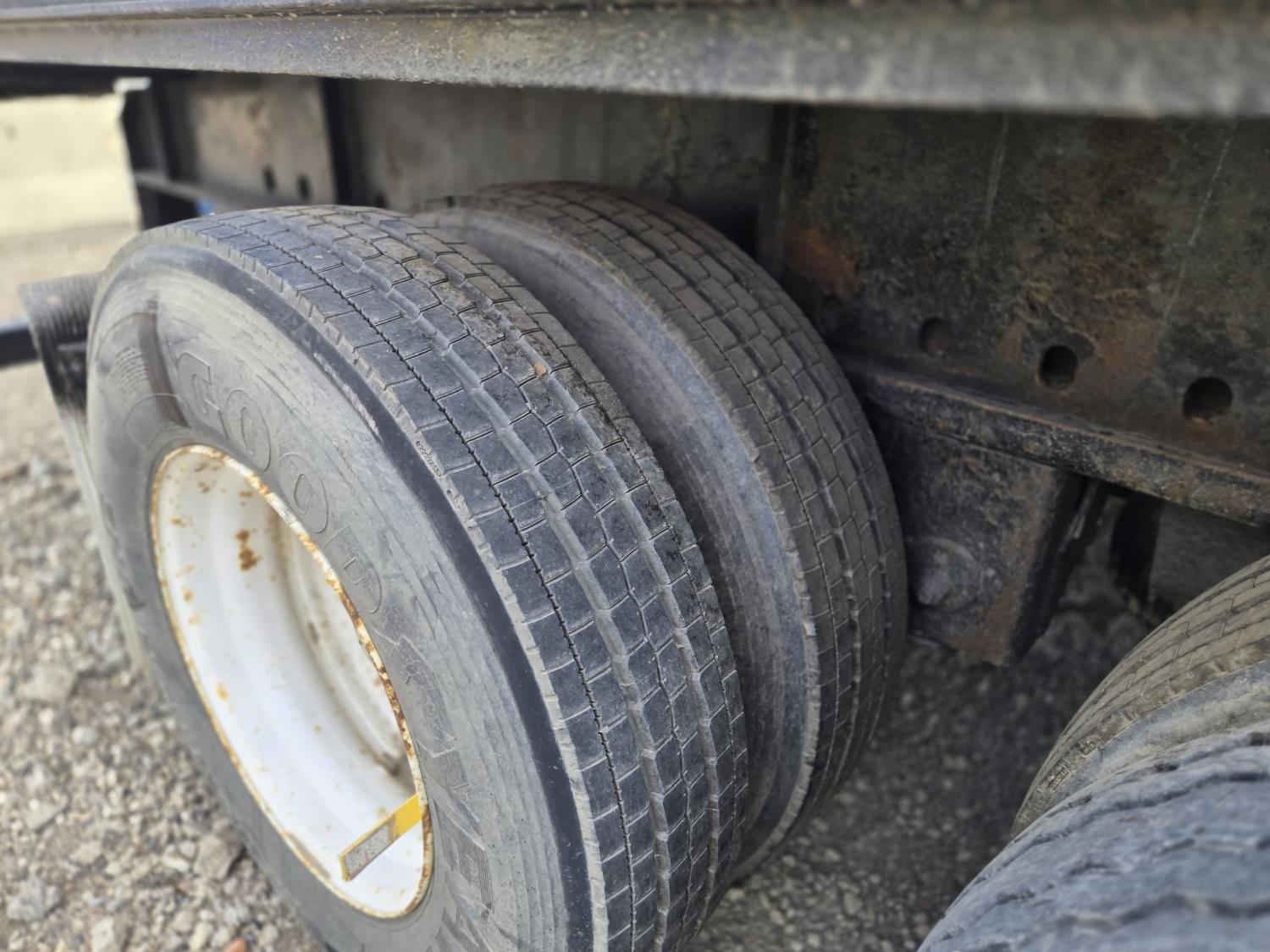 97 inch wide deck, wood deck, stake pockets, cargo winches, tool / storage box, rear pintail hitch, folding wide wide load lights, head rack, air ride suspension, 11R22.5 tires