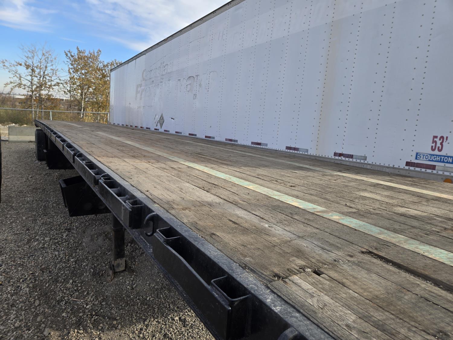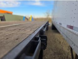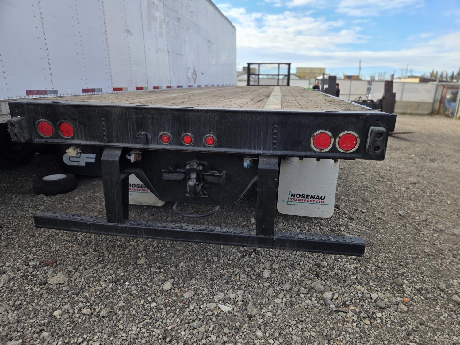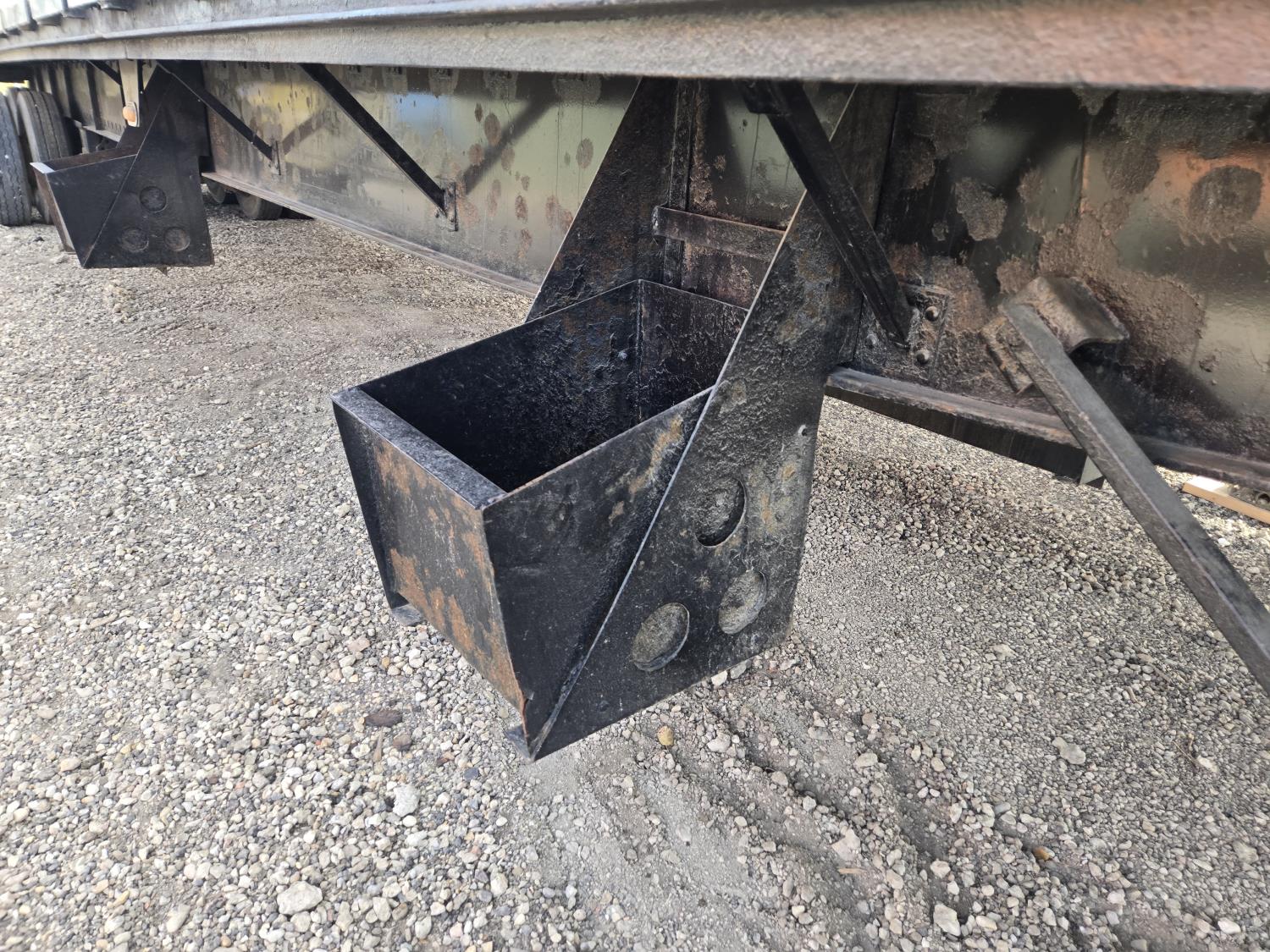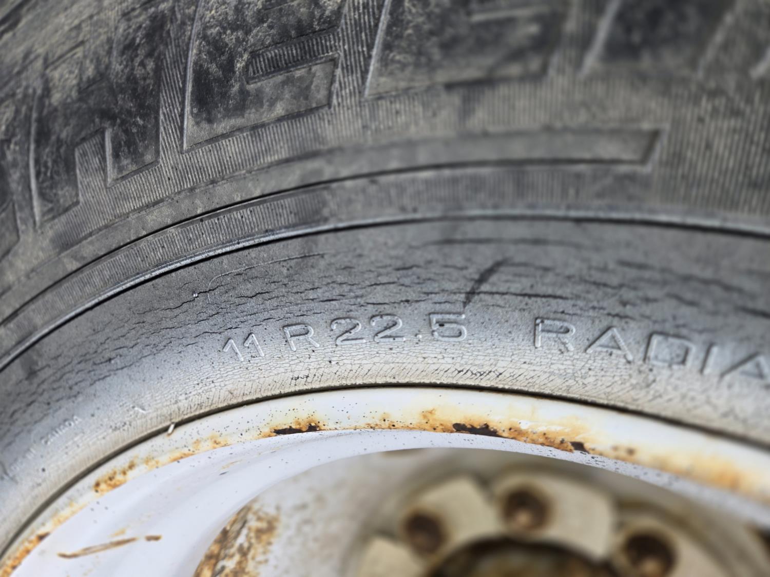 97 inch wide deck, wood deck, stake pockets, cargo winches, tool / storage box, rear pintail hitch, folding wide wide load lights, head rack, air ride suspension, 11R22.5 tires