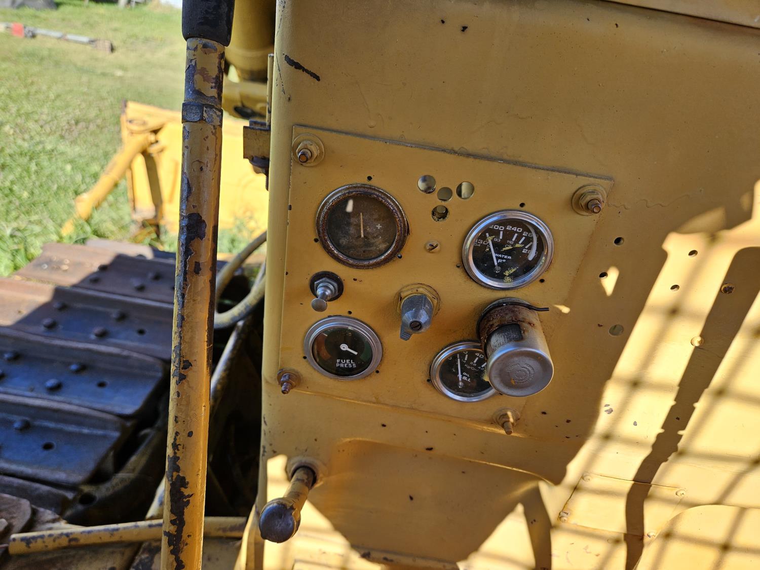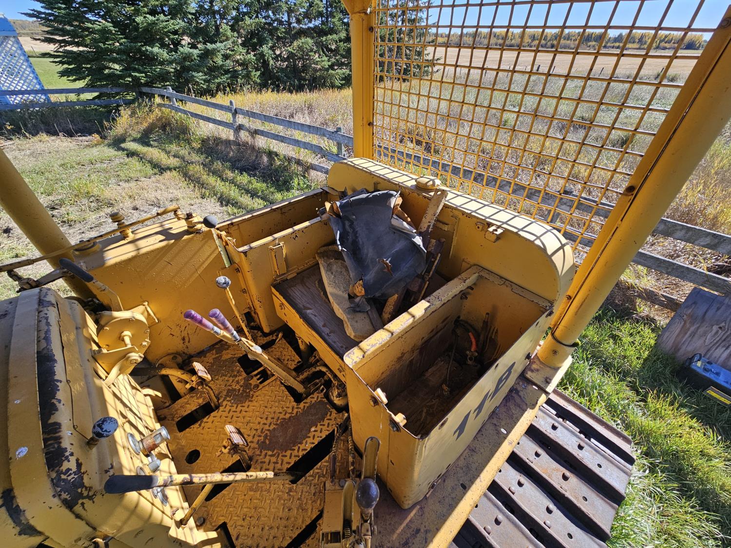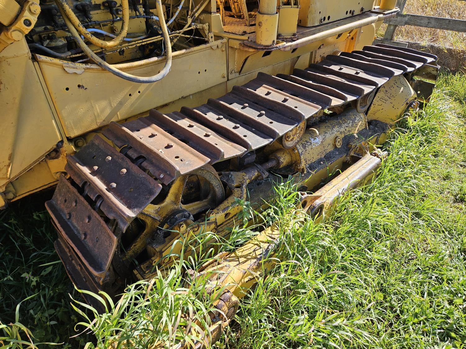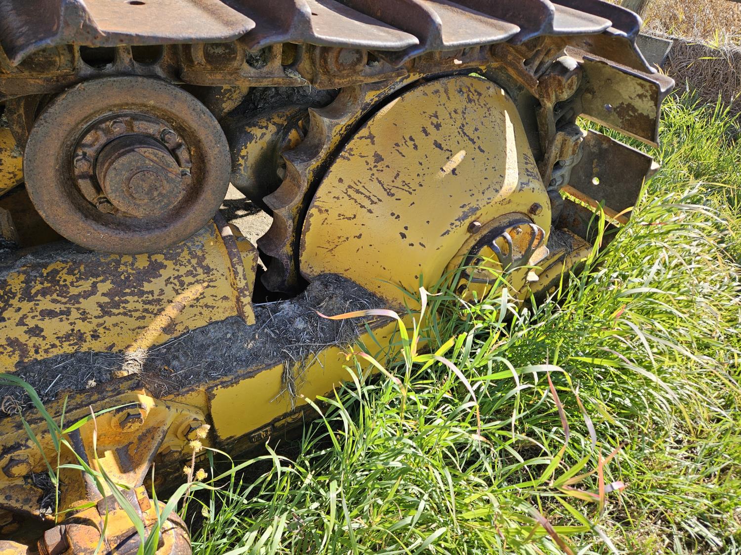 Open station, 6 cylinder diesel engine, 6 speed manual transmission, 12 Ft dozer, winch, was running when parked a few years ago., 20 inch track pads, single grousers